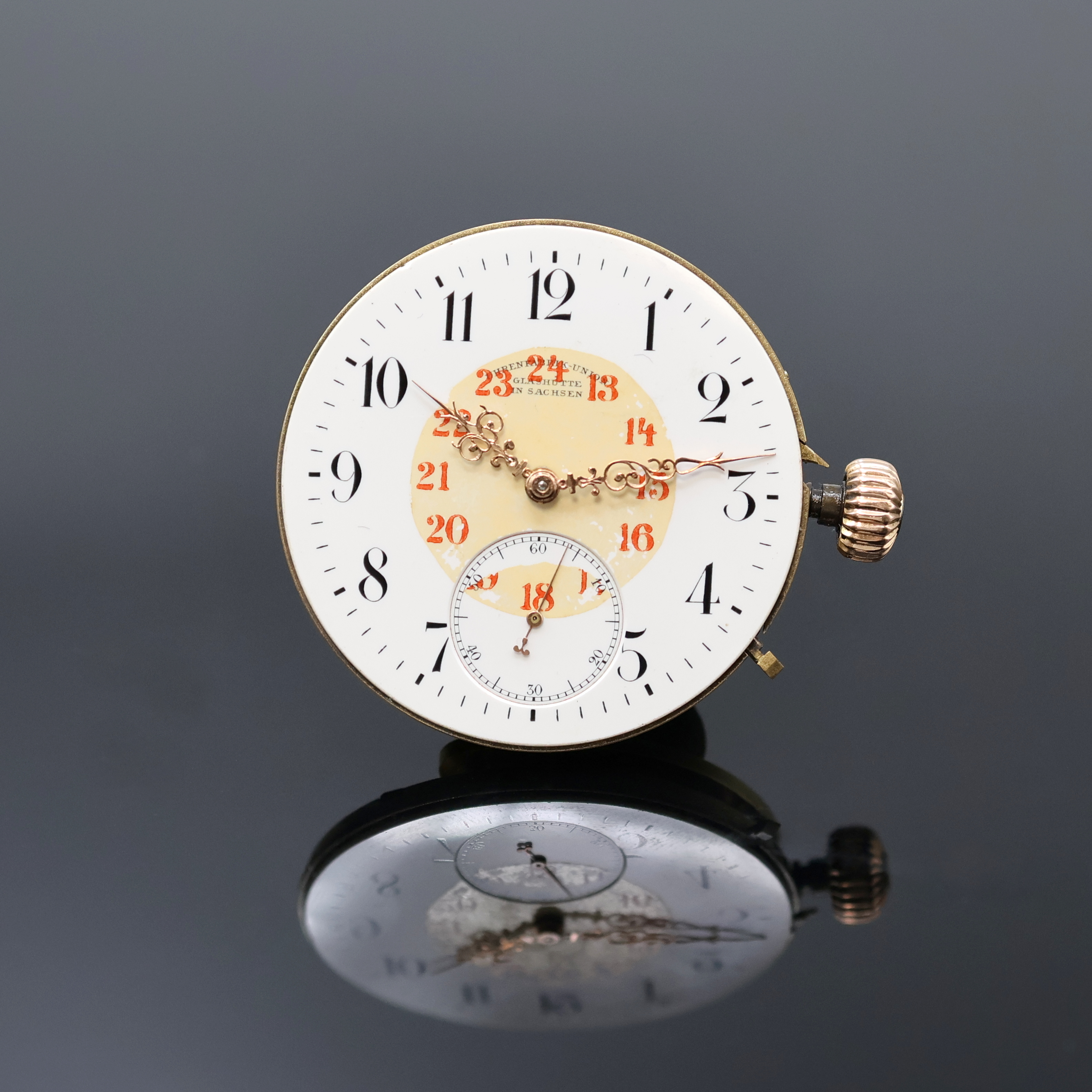 UHRENFABRIKATION UNION GLASHÜTTE in Sachsen Taschenuhrwerk, Deutschland um 1925,