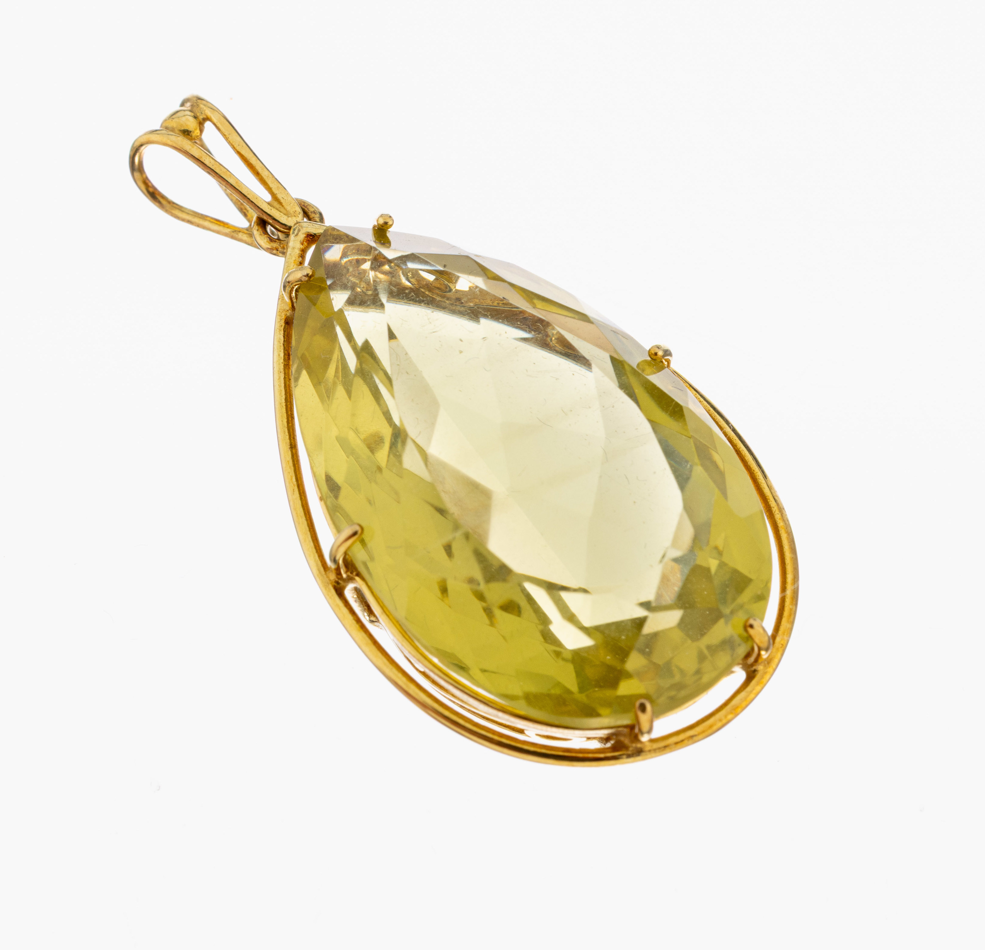 14 kt Gold Lemoncitrin-Anhänger, GG 585/000, facett. Lemoncitrin-Tropfen (beh.)