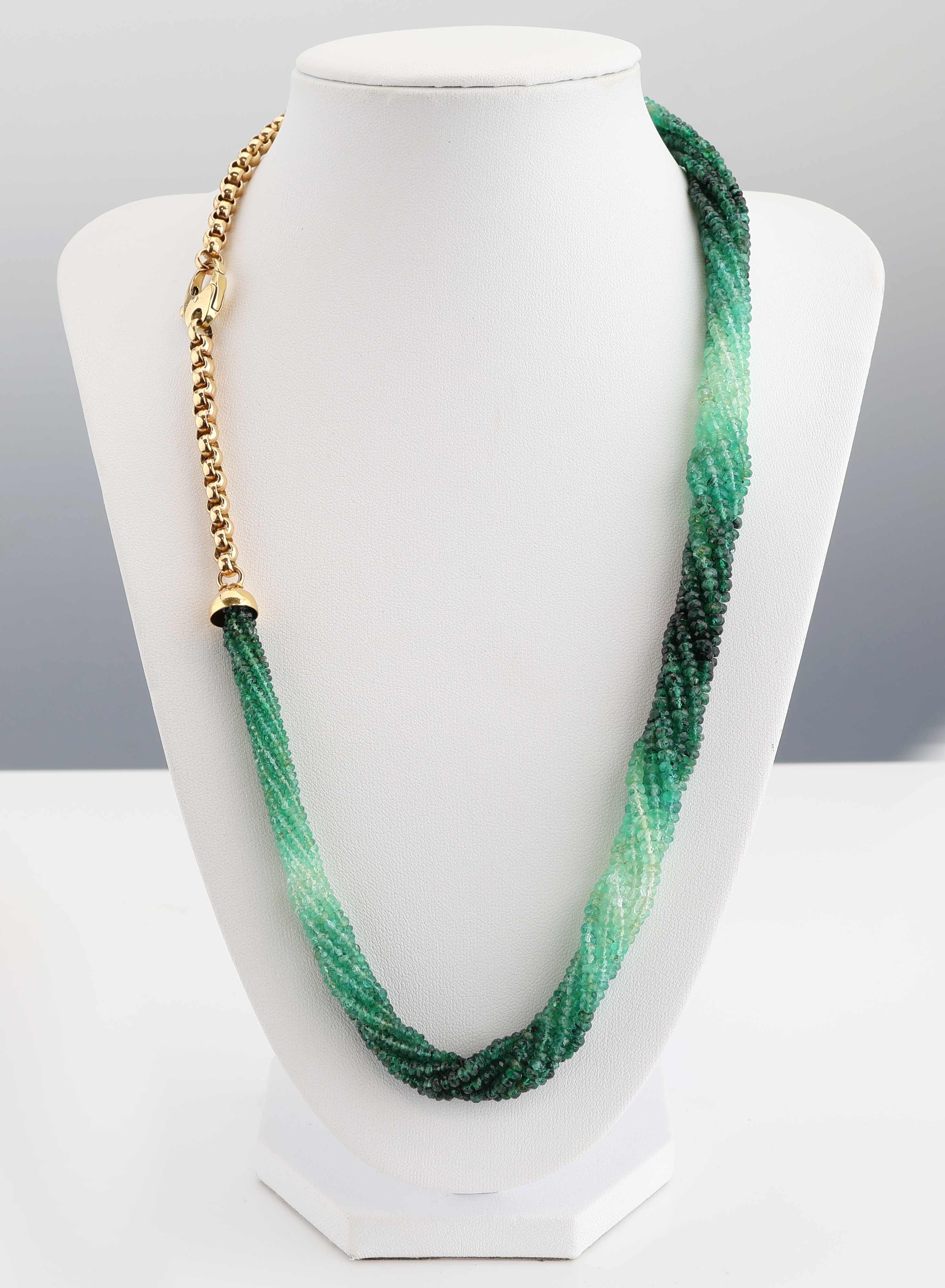 Farbstein-Collier mit 18 kt Gold Schließe, GG 750/000 gepr., 7 rhg. facett. Smaragde
