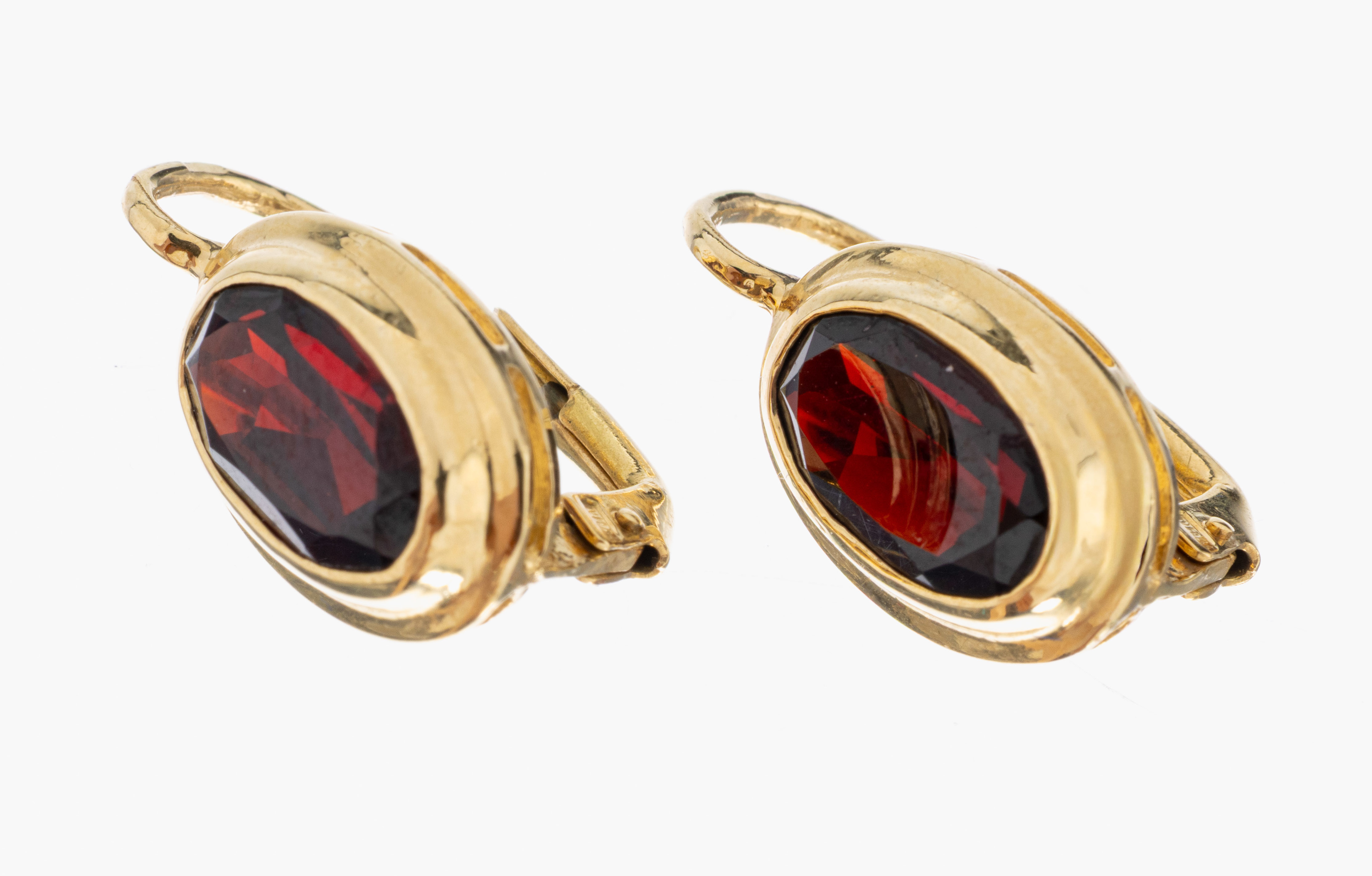 Paar 18 kt Gold Granat-Ohrhänger, GG 750/000, schlichte Gestaltung, 2 ovalfacett. Granate, ca. 4.1 g