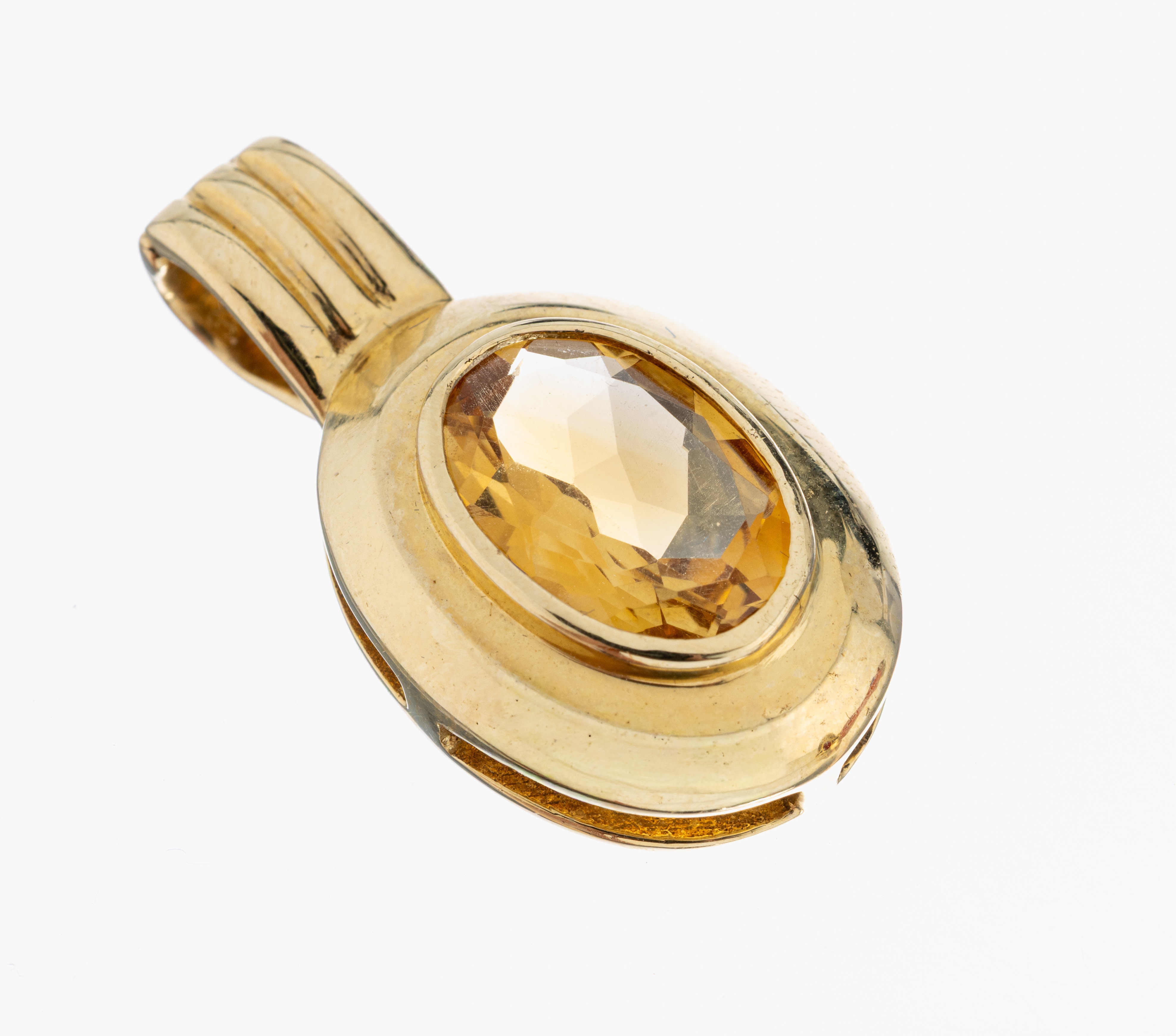14 kt Gold Citrin-Clipanhänger, GG 585/000,schlicht, ovalfacett. Citrin, ca. 6.7 g