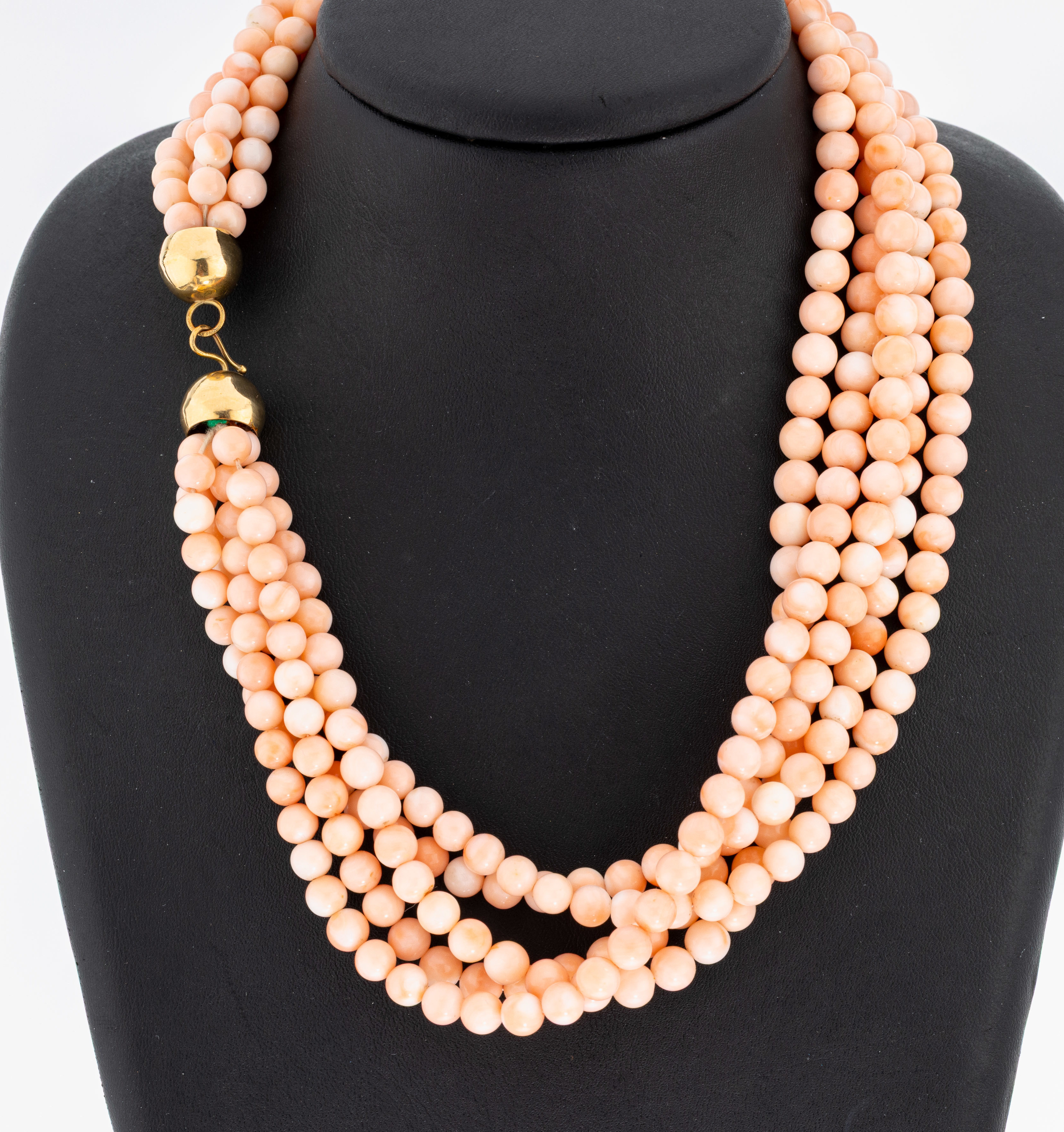 Korallen-Collier mit 18 kt Gold Schließe, GG 750/000, 5-rhg. Engelhautkorallen-Kugeln,