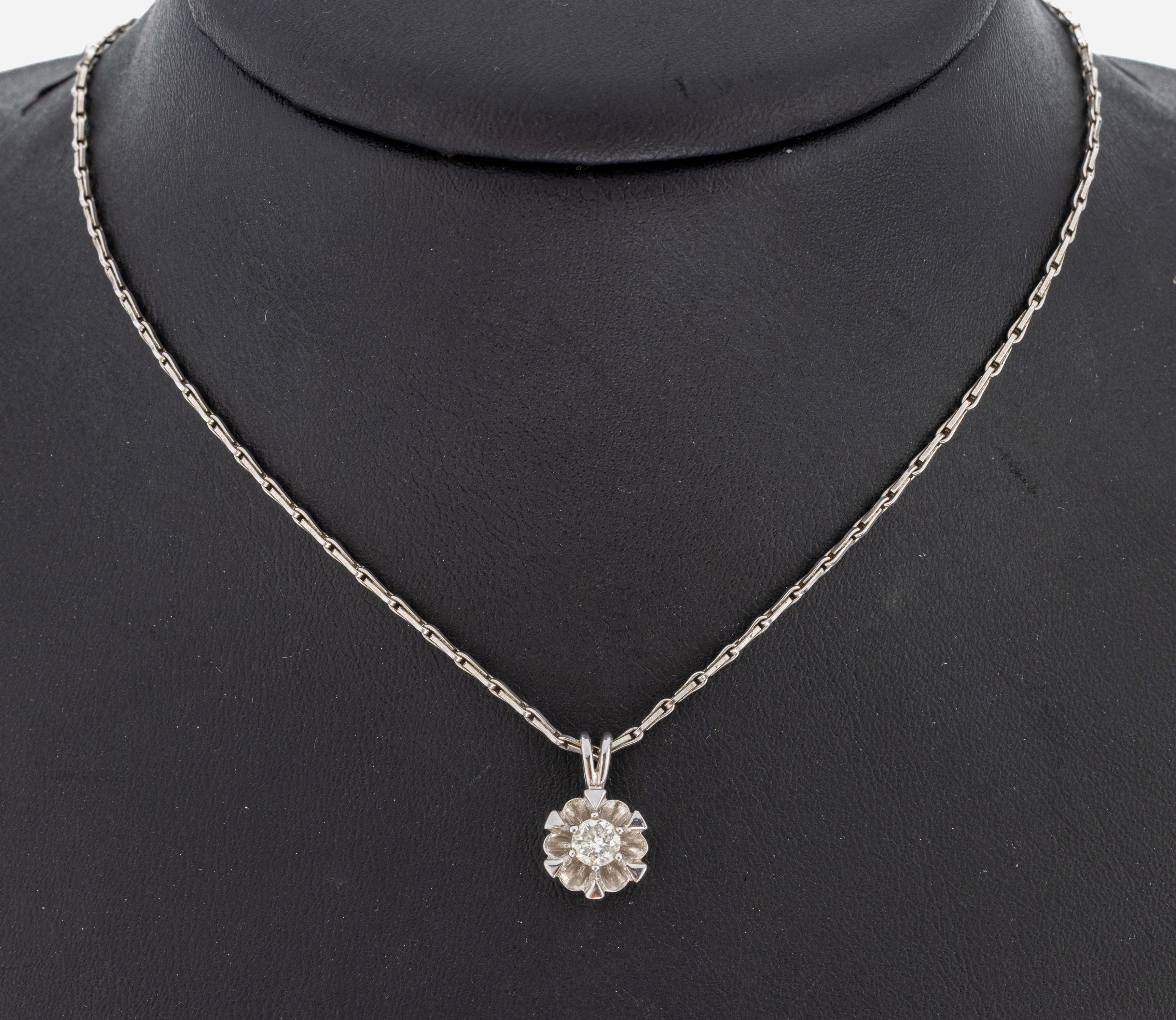 14 kt Gold Brillant-Anhänger, WG 585/000, florale Fassung, Brillant ca. 0.25 ct