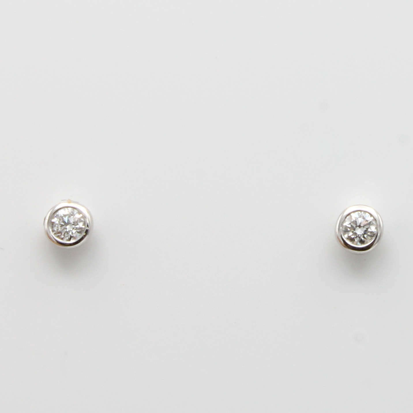 Paar Ohrstecker mit Brillantsolitären, WG 750/000, 2 Brill. in Zargenfassungen zus. ca. 0.10 ct feines Weiß/si Schätzpreis: 600, - EUR