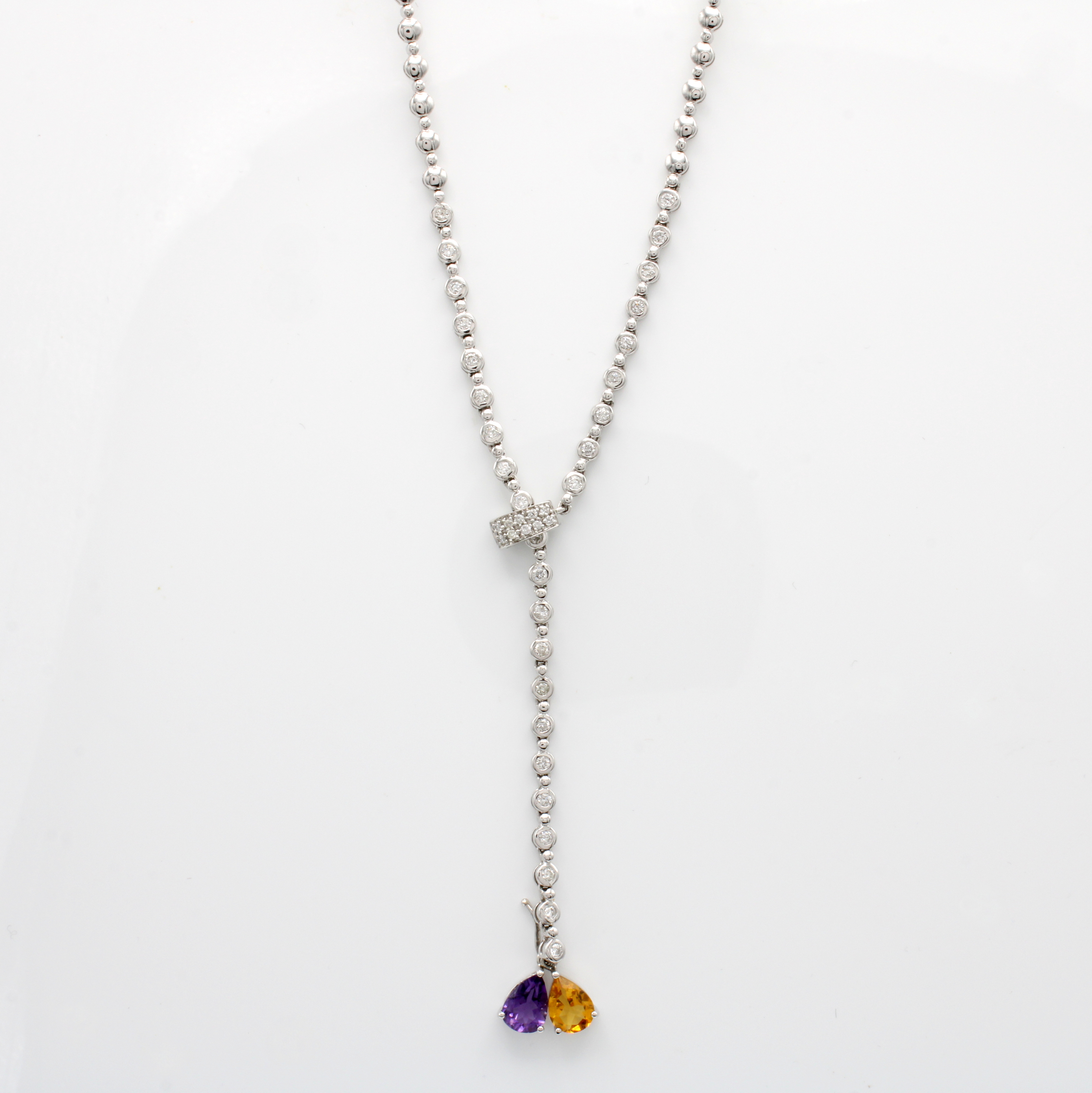 Y-Collier mit Brillanten und Wechsel- Farbsteinabhängungen, WG 750/000, durch Clipverschl.