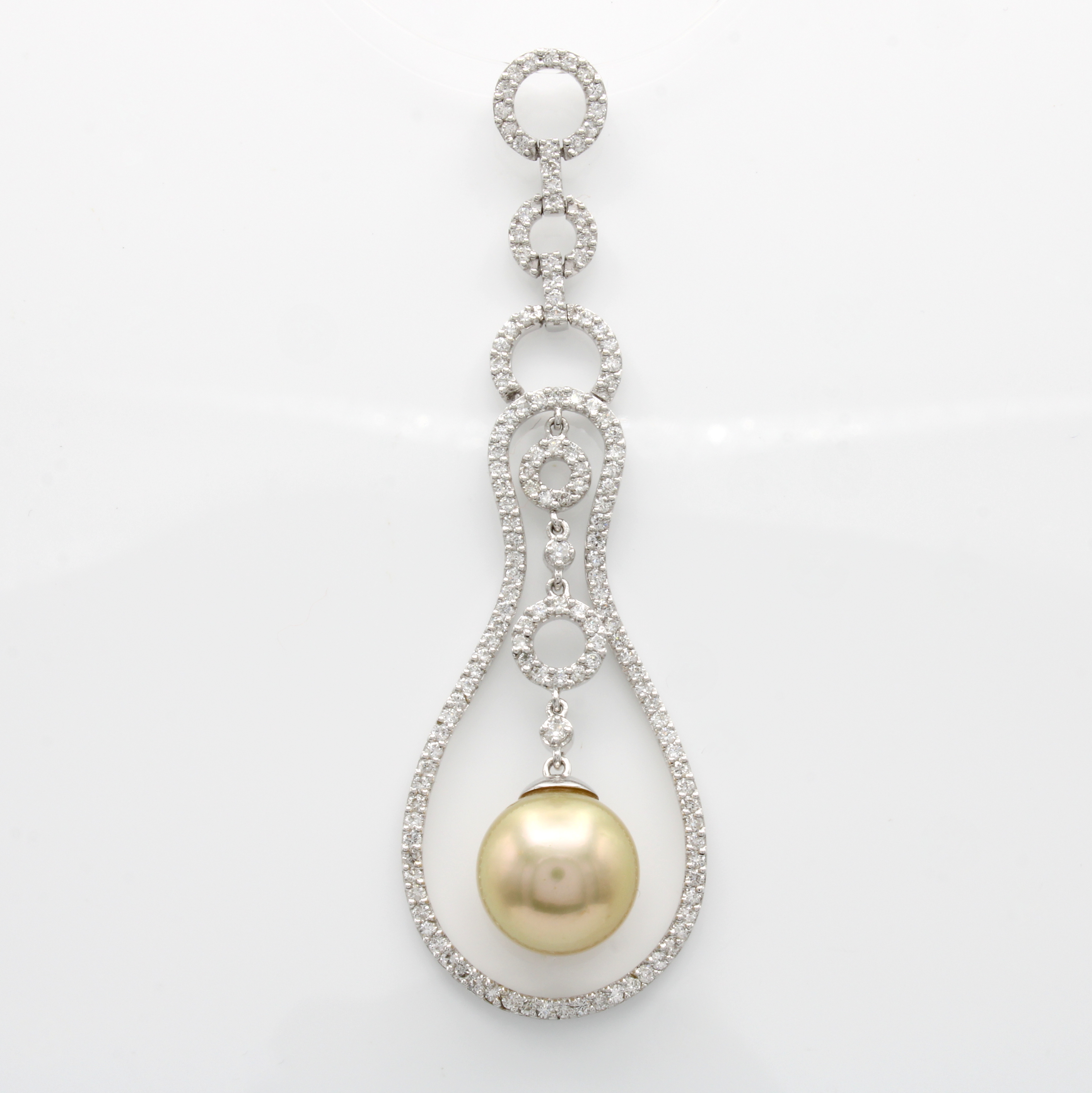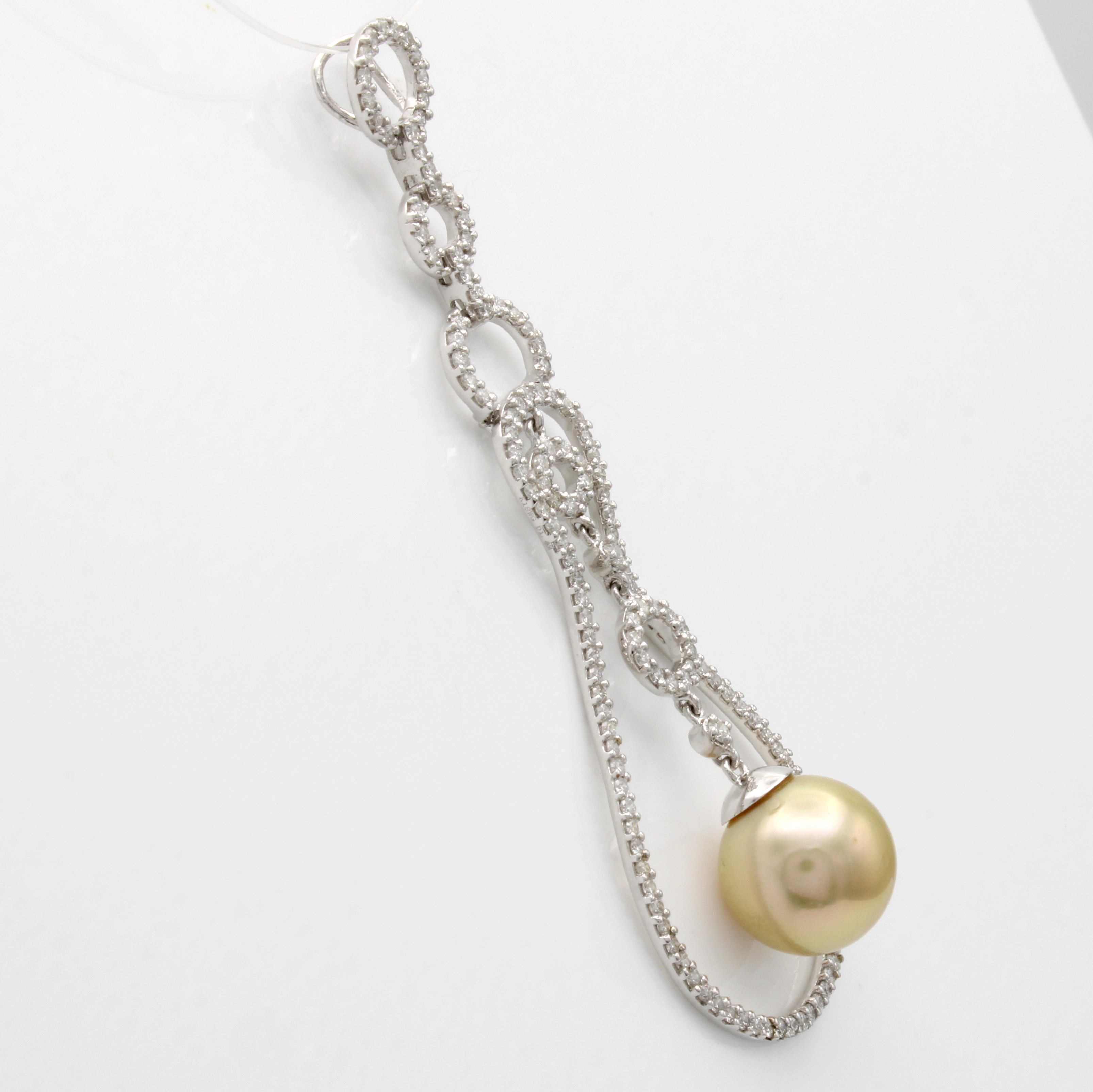 Anhänger mit Südseeperle und Brillanten, WG 750/000, runde u. birnenförm. Elemente bes. m.Brill. zus. ca. 1.42 ct Weiß/si, champagnerf. Perle ca. 12 mm Schätzpreis: 6200, - EUR