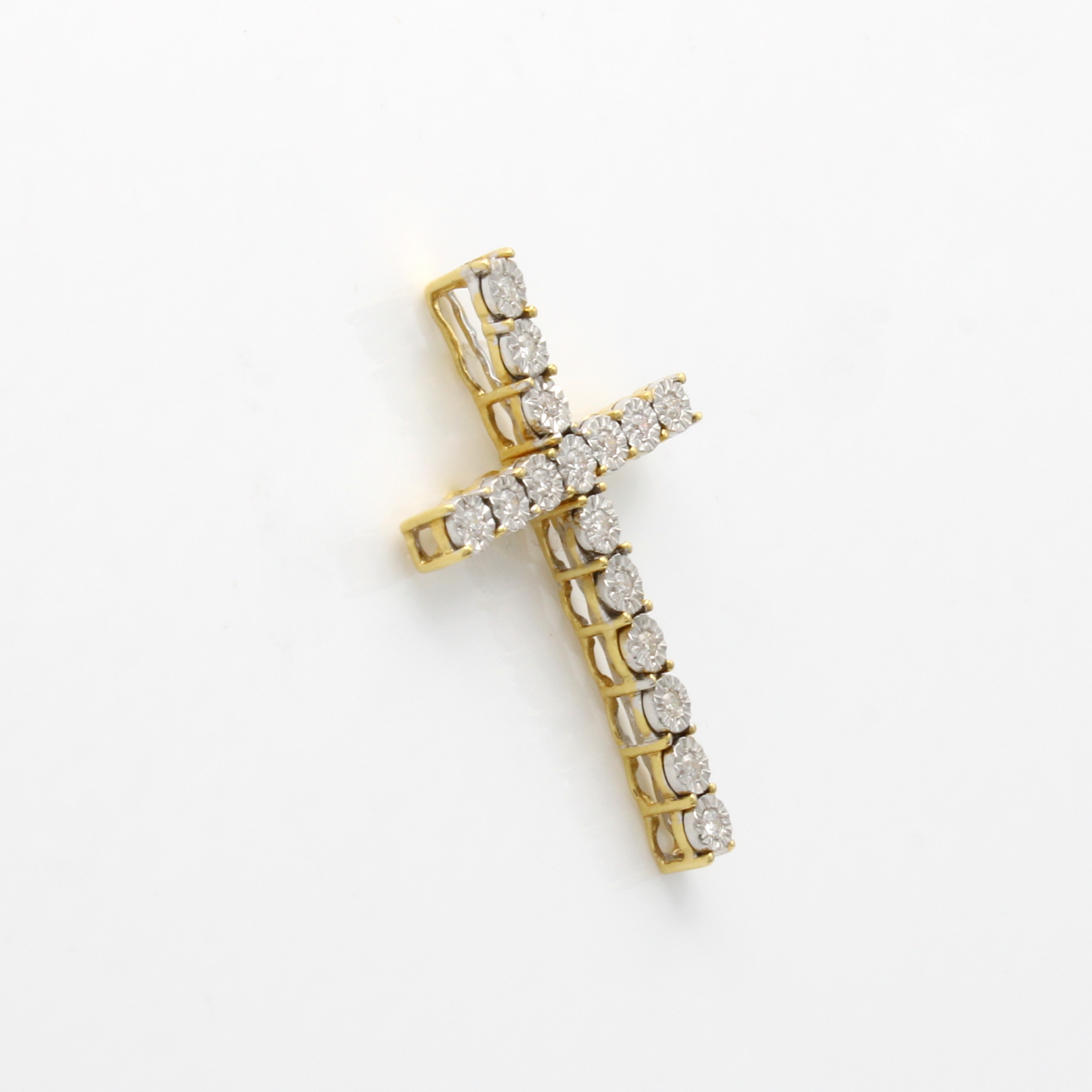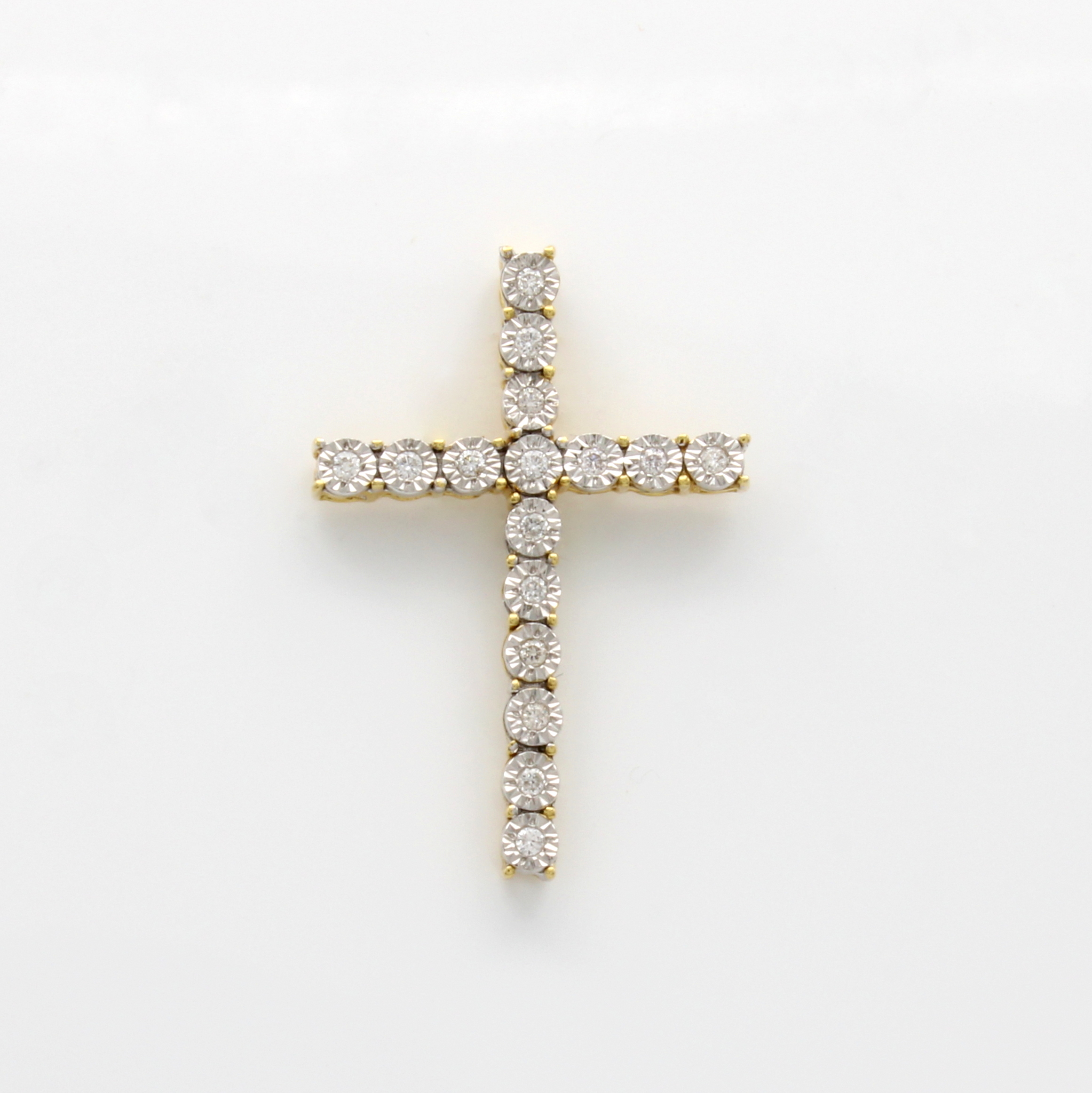 Kreuzanhänger mit Brillanten, GG/WG 750/000, 16 Brill. in geschliffenen Zargenfassungen zus. ca. 0.10 ct Weiß/si Schätzpreis: 1270, - EUR