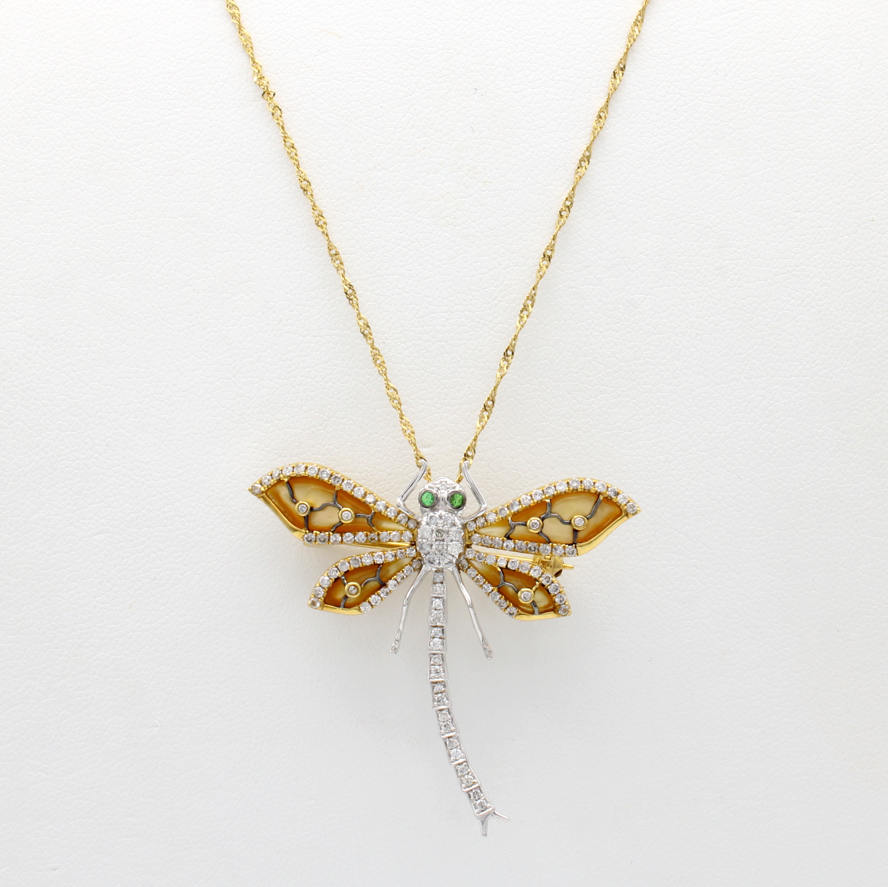 Anhänger "Libelle" mit Tsavoriten, Perlmutt und Brillanten an Kette, GG 750/000,