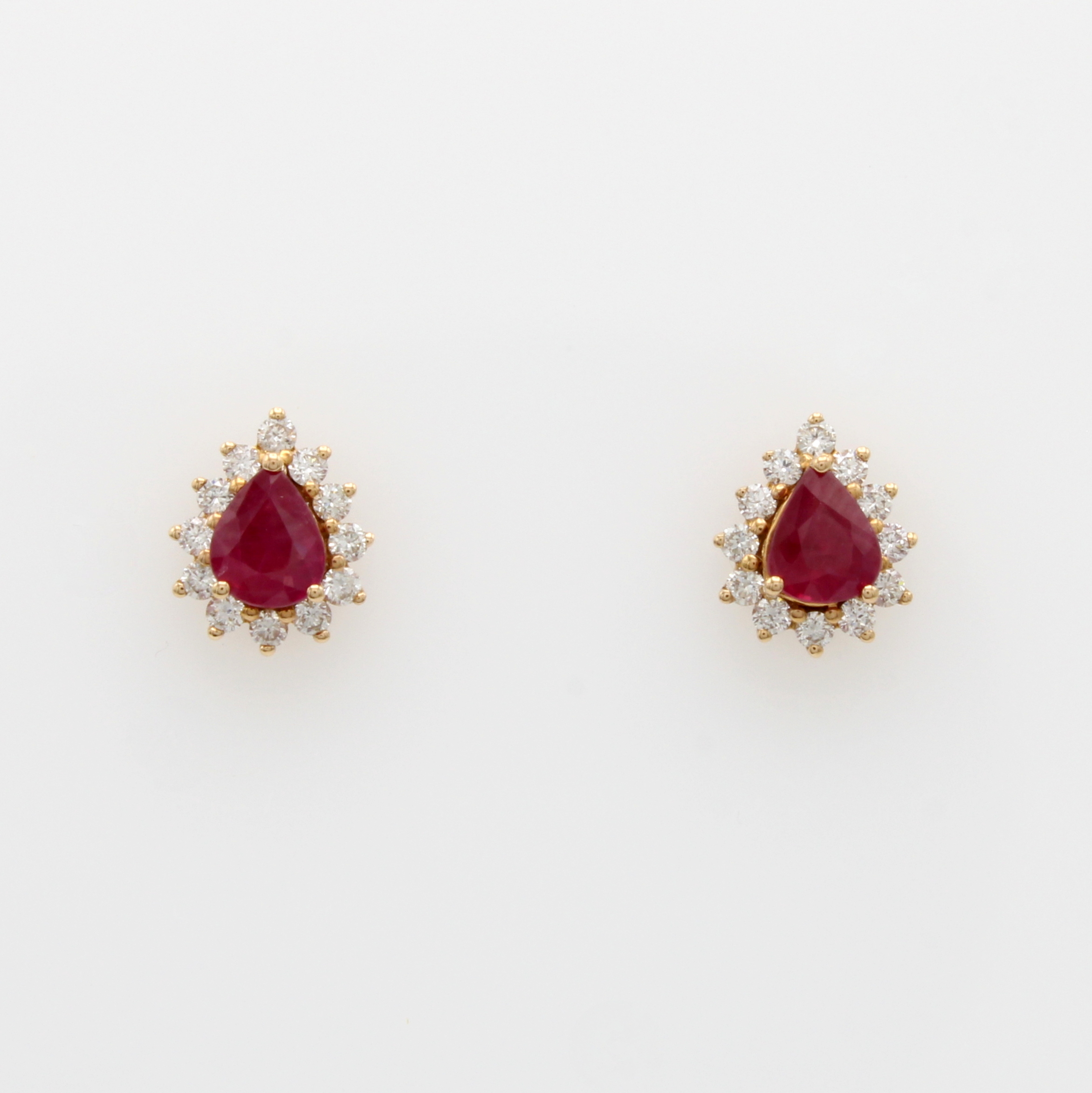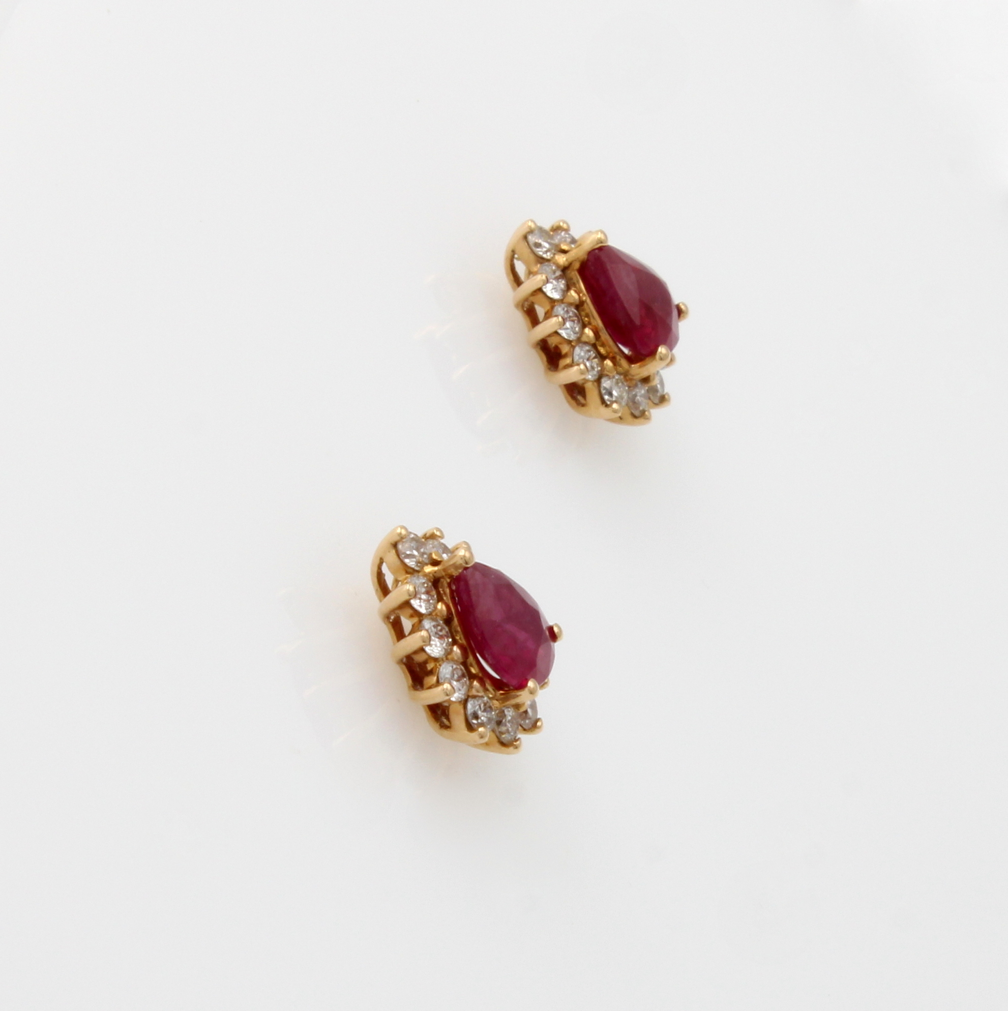 Paar Ohrstecker mit Rubinen und Brillanten, GG 750/000, 24 Brill. zus. ca. 0.30 ct Weiß/si, 2 Rubine zus. ca. 0.70 ct Schätzpreis: 1450, - EUR