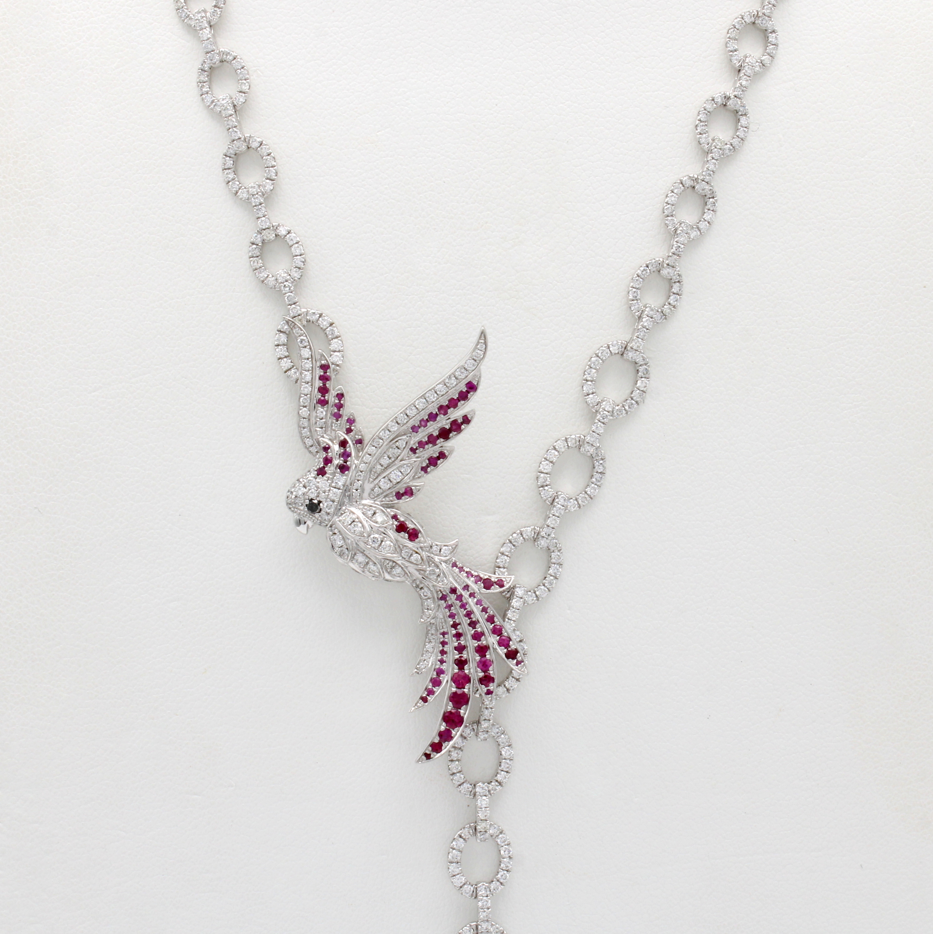 Ausgefallenes Y-Collier mit Farbsteinen und Brillanten, WG 750/000, ovale Glieder