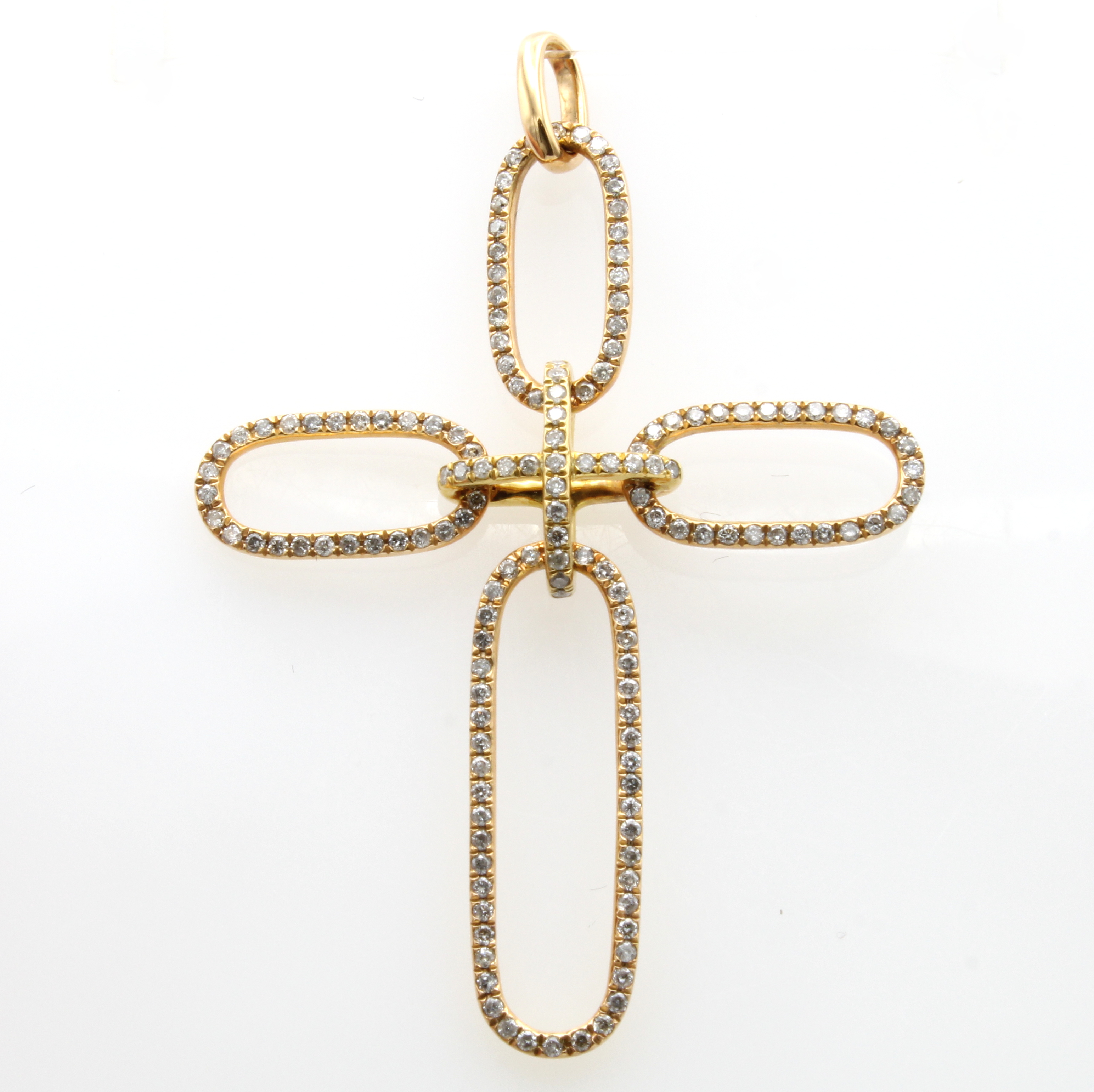 Kreuzanhänger mit Brillanten, GG 750/000, 148 Brill. zus. ca. 1.13 ct Weiß/p, Maße ca. 5.5x4.2 cm Schätzpreis: 5430, - EUR
