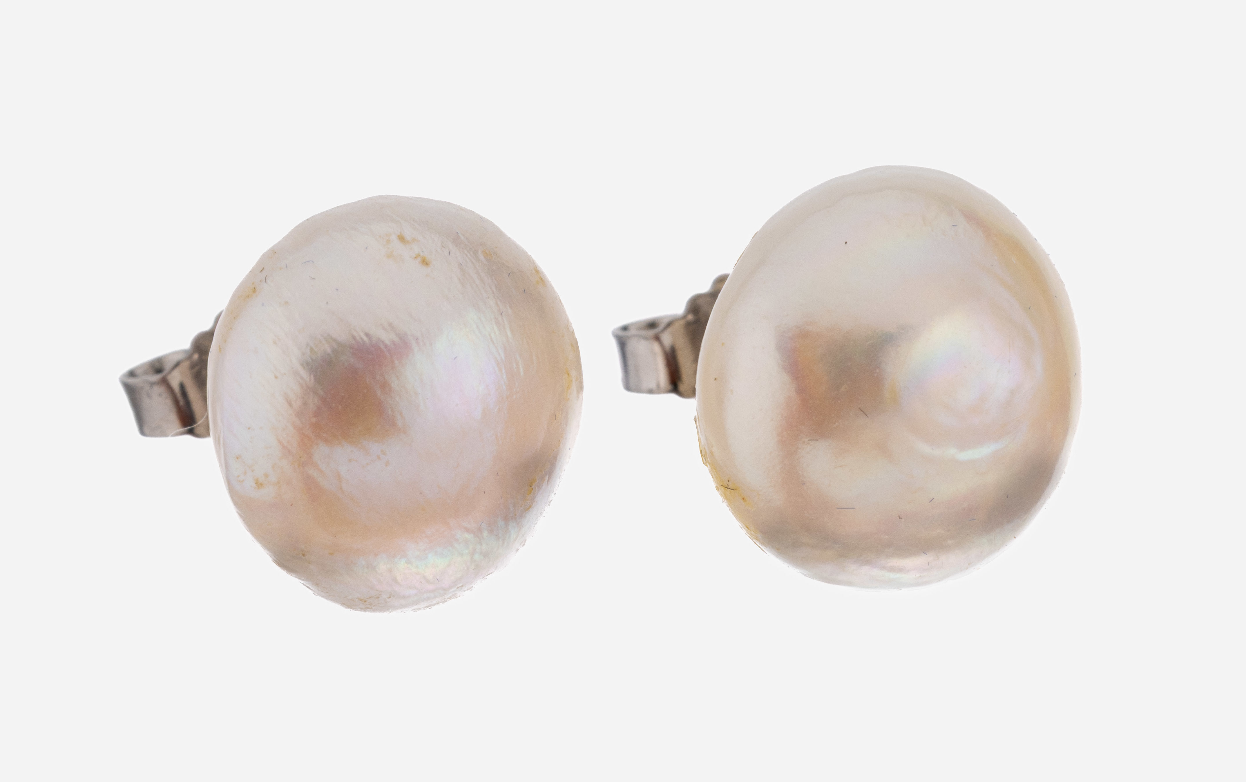 Paar Perl-Ohrstecker, 925er Silber, Süßwasserzuchtperl-Boutons, D. ca. 14 mm