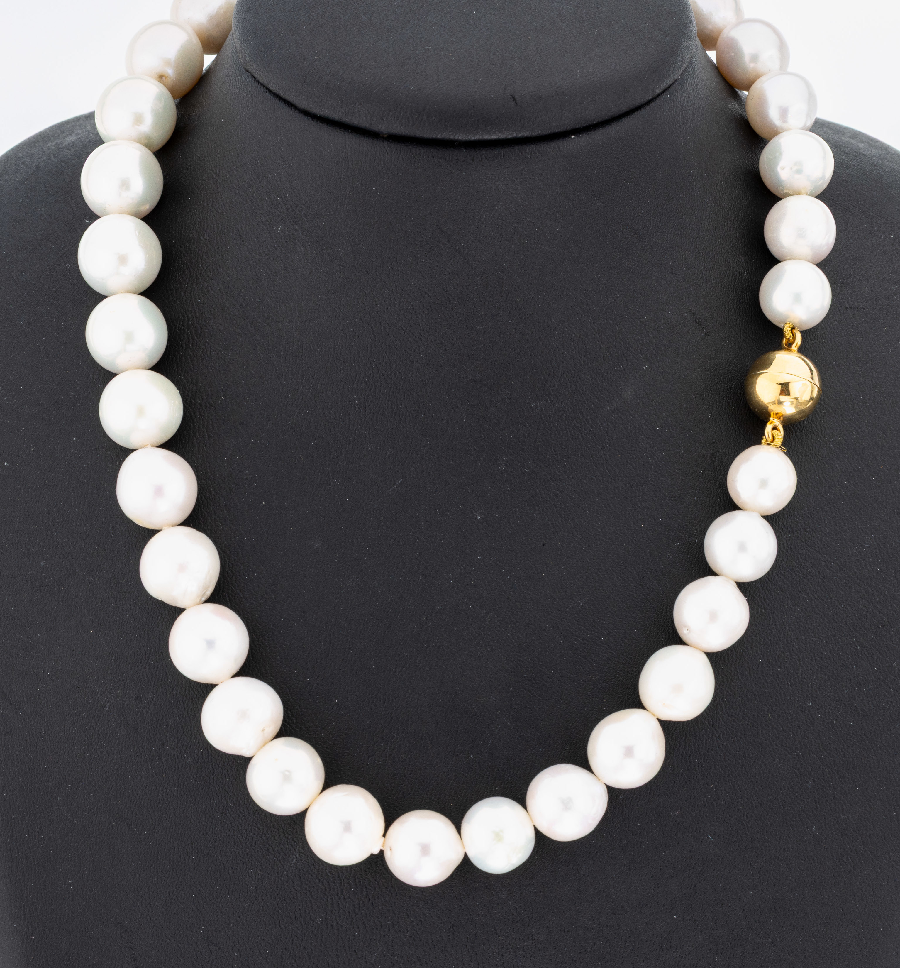 Perl-Collier, Süßwasserzuchtperlen, D. ca. 10.6-13.2 mm, Magnetschließe 925er Silber verg., L. ca. 44 cm