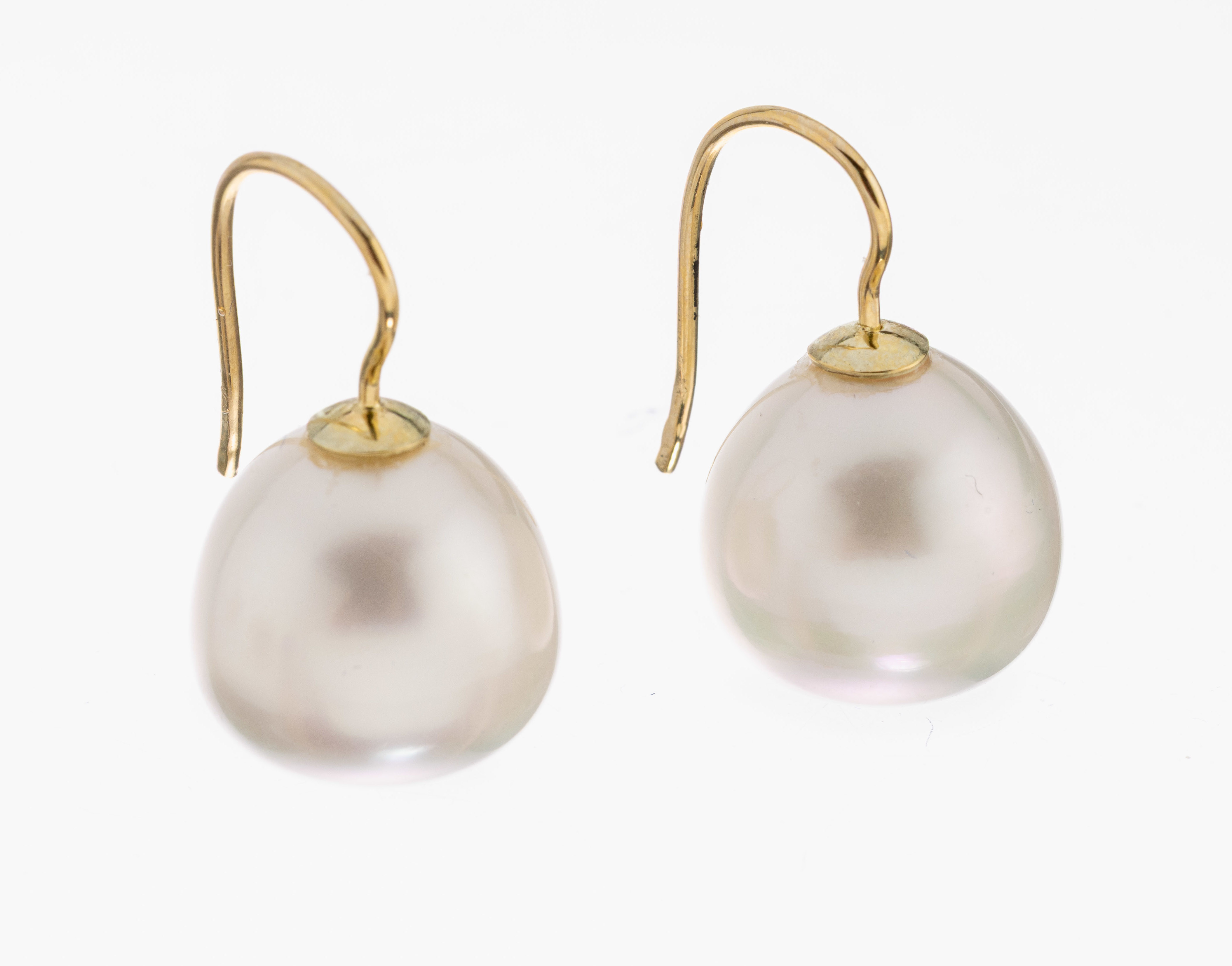 Paar 14 kt Gold Perl-Ohrgehänge, GG 585/000, 2 Südseezuchtperlen, D. ca. 15.31 mm, l. tropfenförm.