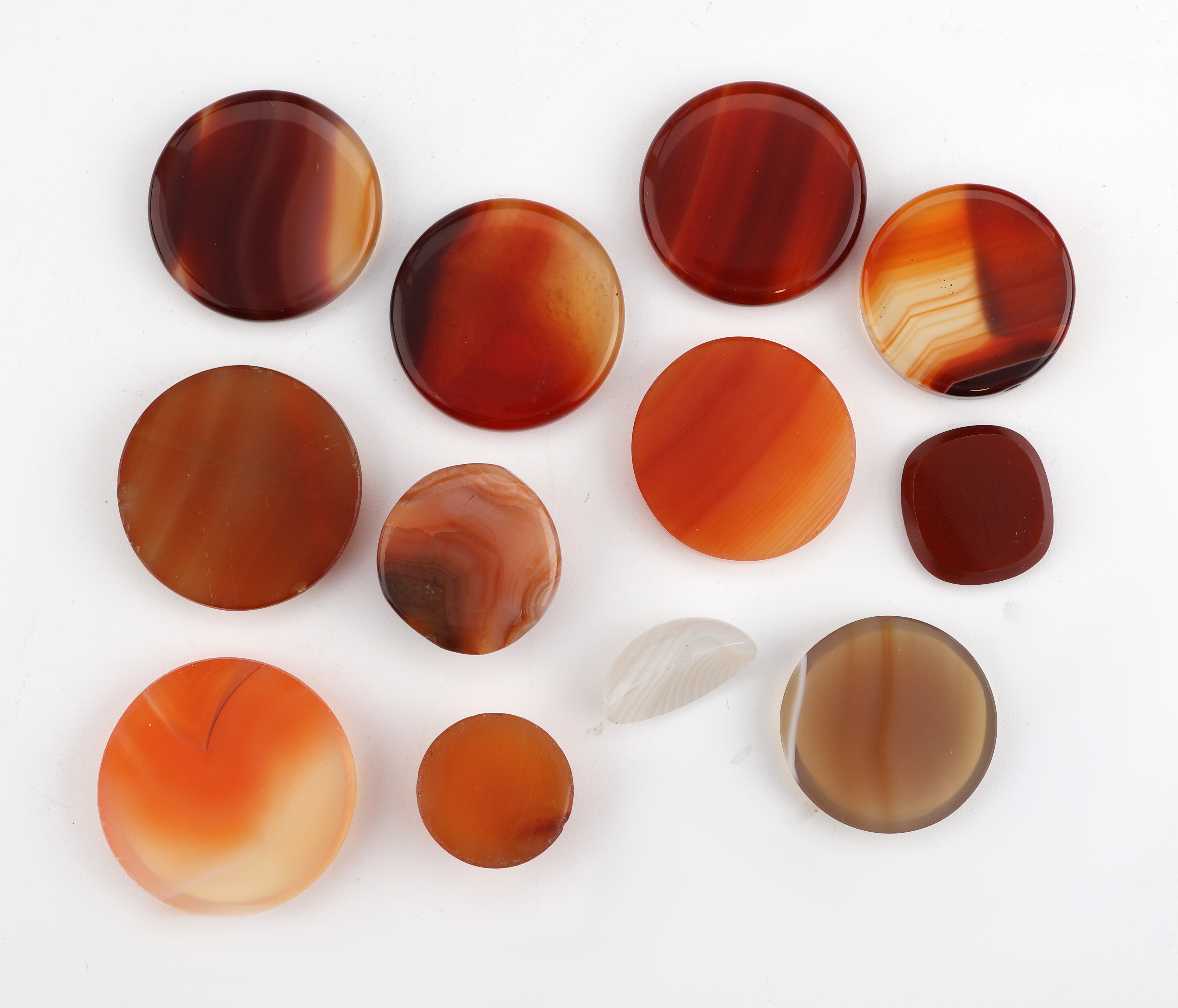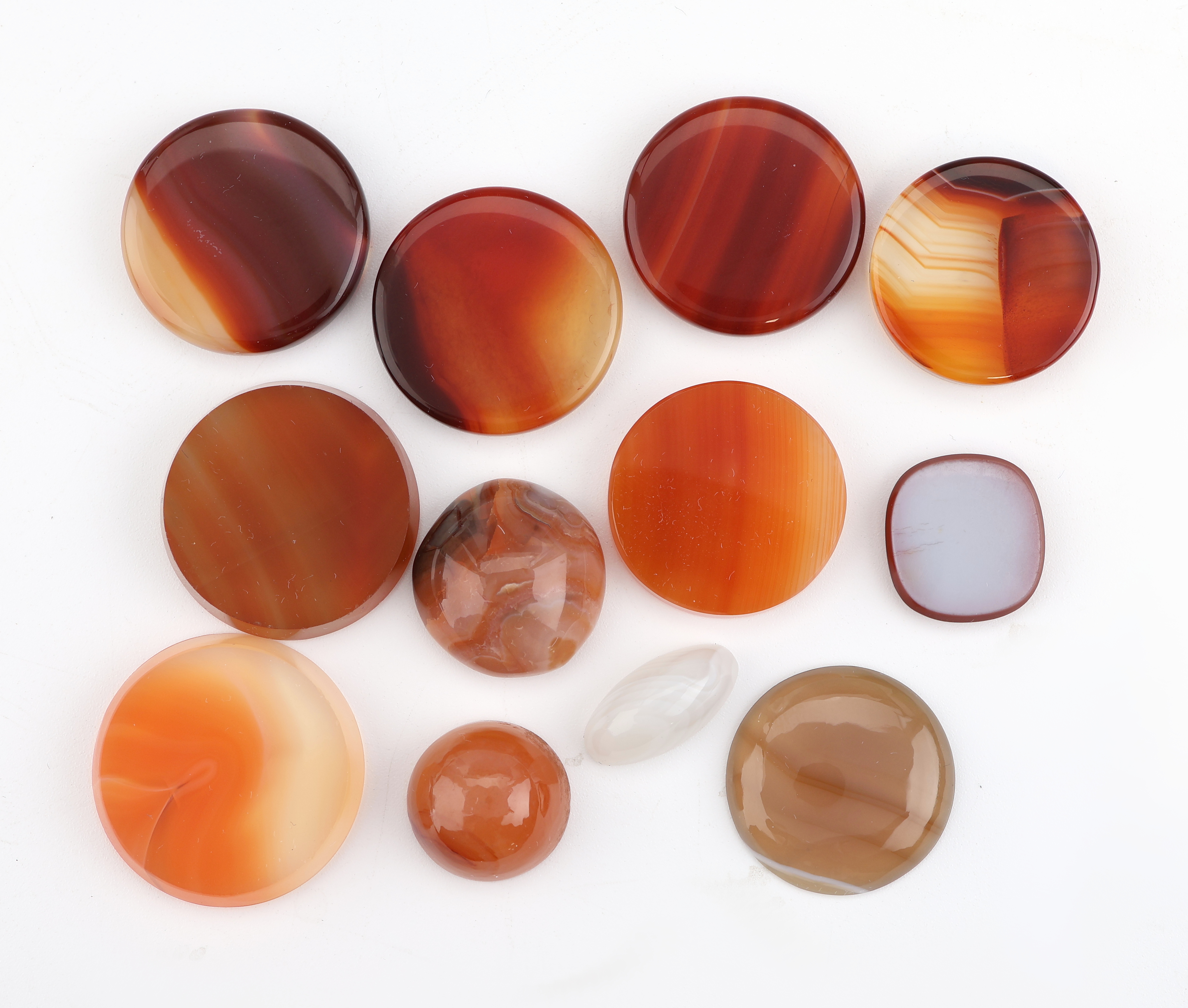 Lot 12 lose Achate zus. ca. 133.30 ct, in versch. Formen und Farben, u.a. Streifenachat und Lagenachat Schätzpreis: 250, - EUR