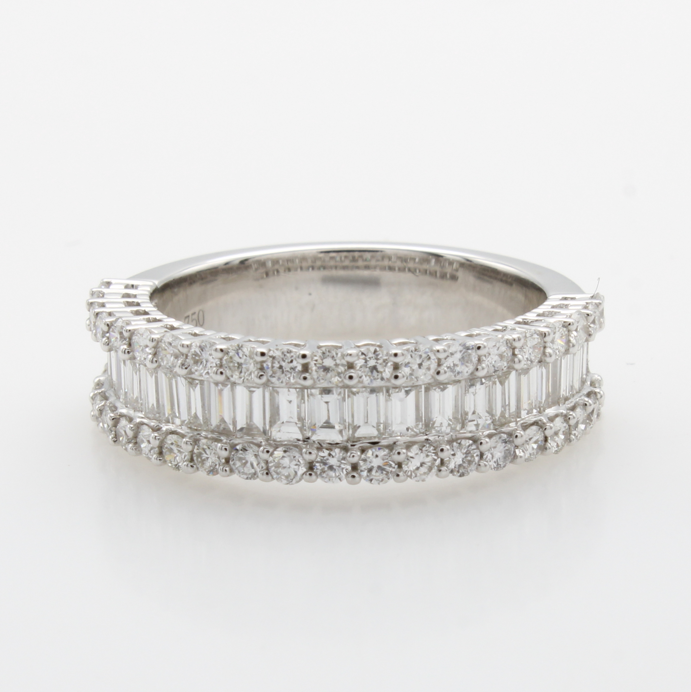 Ring mit Diamanten und Brillanten, WG 750/ 000, Diamantbaguettes mittig gef. zus. ca. 0.77 ct u. Brill. zus. ca. 0.70 ct feines Weiß-Weiß/si, RW ca. 53 Schätzpreis: 6550, - EUR