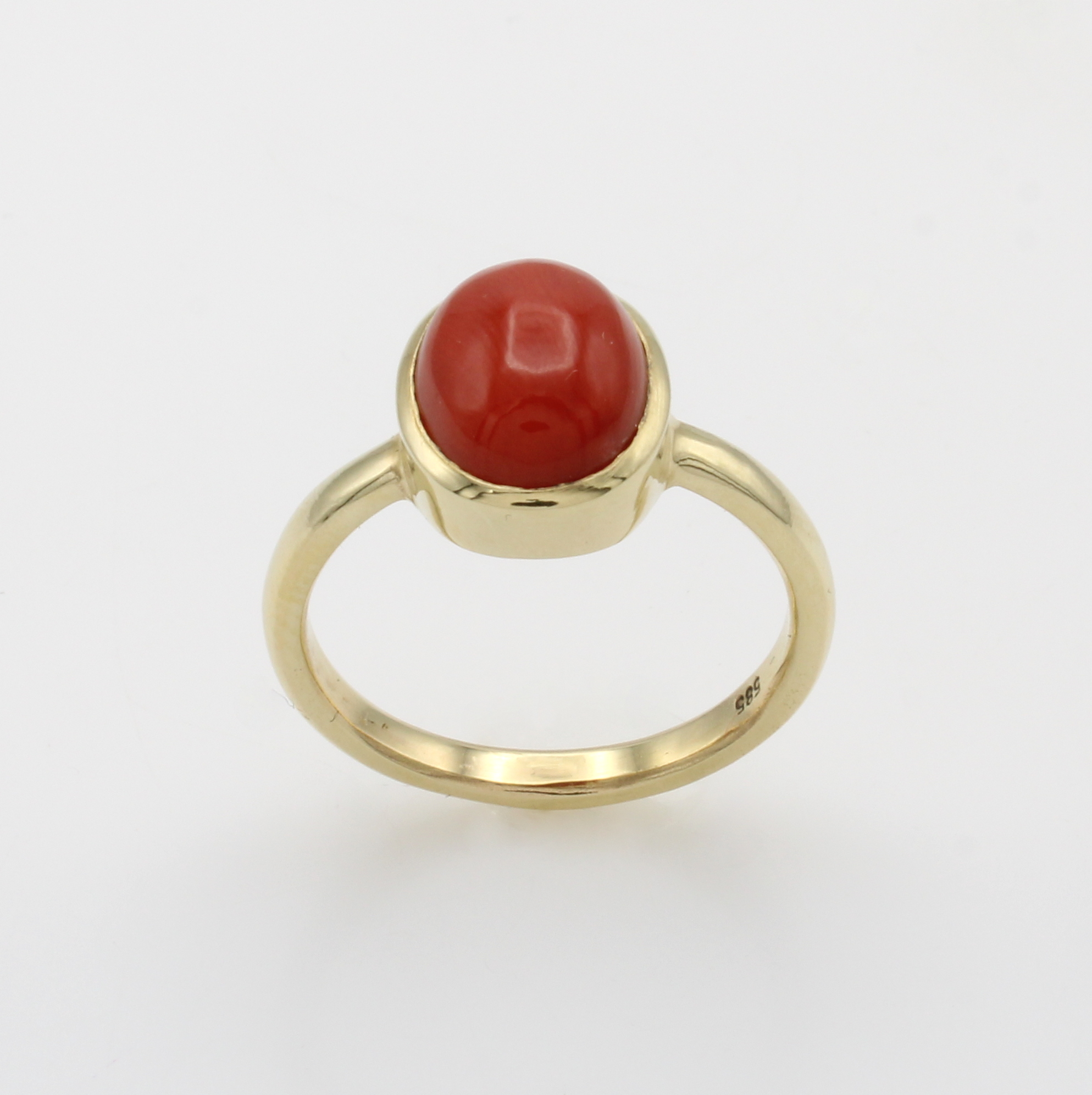 Ring mit Koralle, GG 585/000, ovale Koralle in glatter Fassung, M. ca. 11 x 9 mm, RW ca. 58, Versand nur innerhalb der EU Schätzpreis: 1250, - EUR