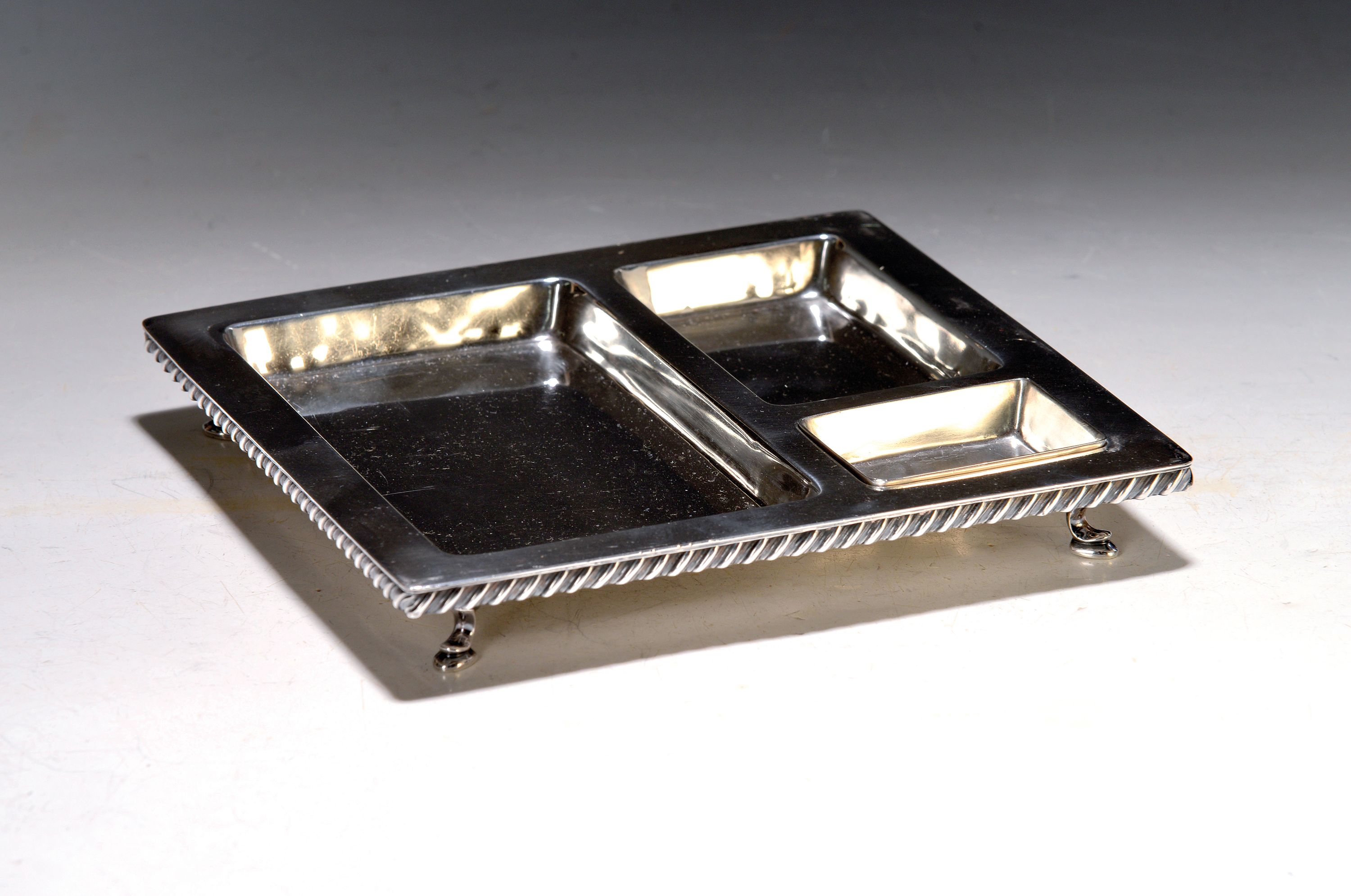 drei Feldereinteilungen, kleine Schale mit zusätzlichem Einsatz, auf vier Füssen