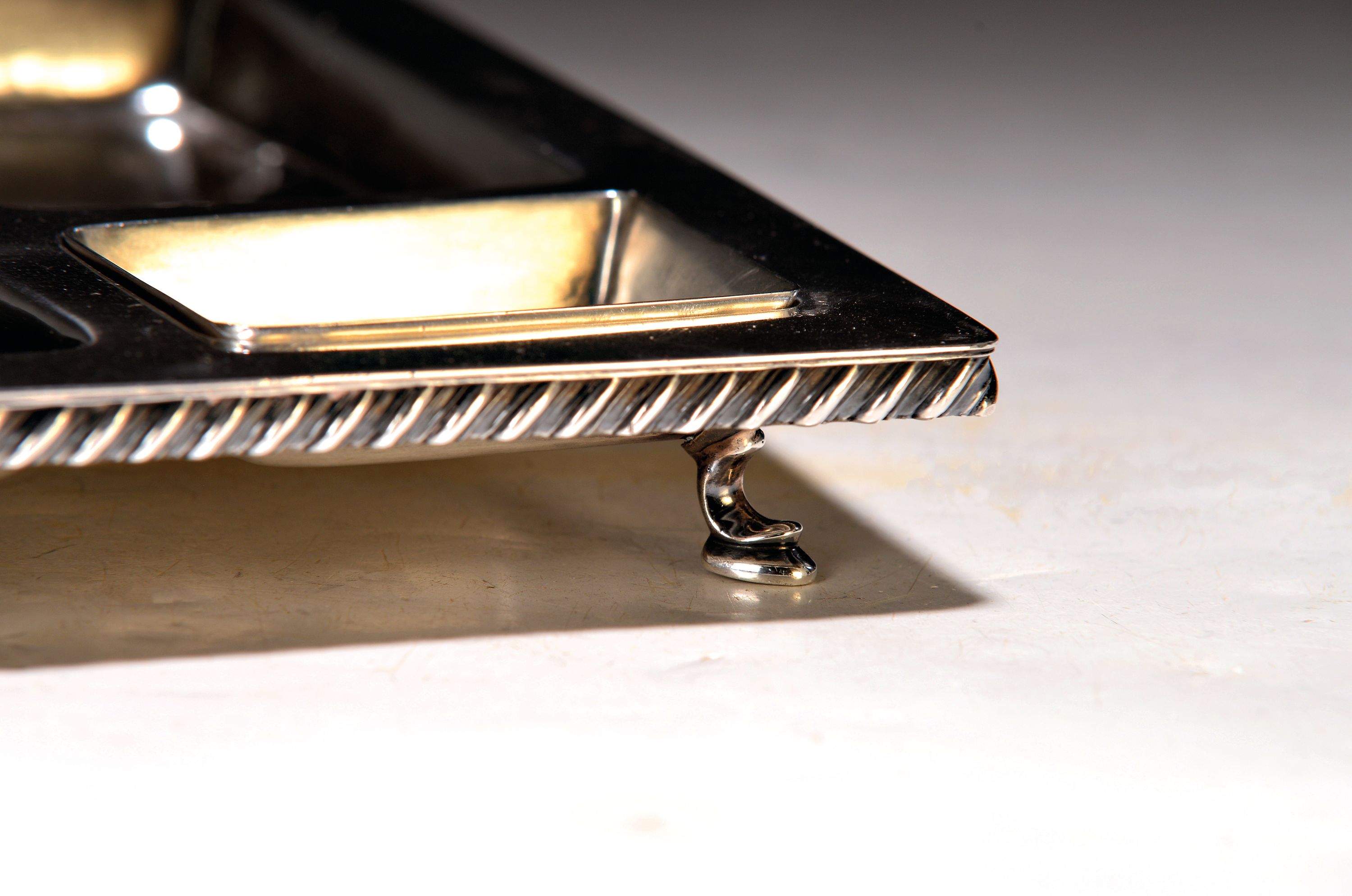 Schreibtischaufsatz/Schale, Sterlingsilber, wohl um 1900, umlaufende Kordelbandeinlage,