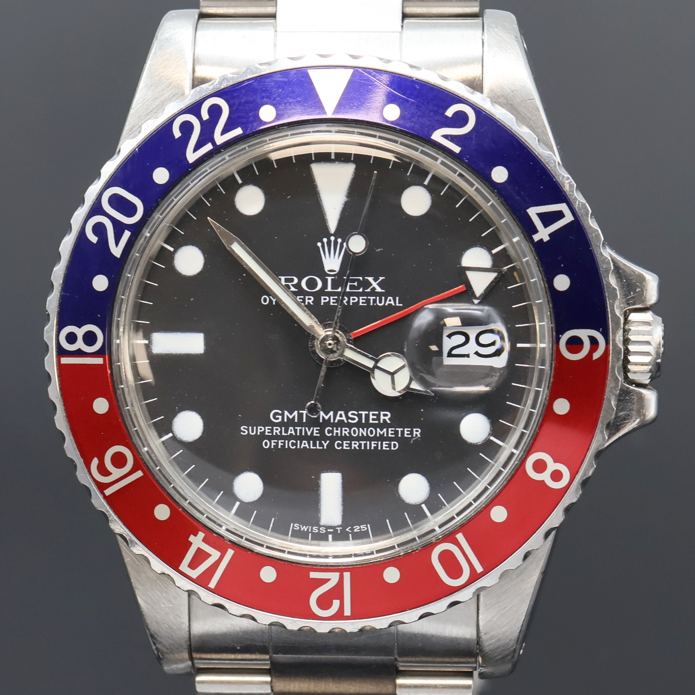 ROLEX Oyster Perpetual GMT-Master Herrenarmbanduhr Referenz 1675, Schweiz um 1977,
