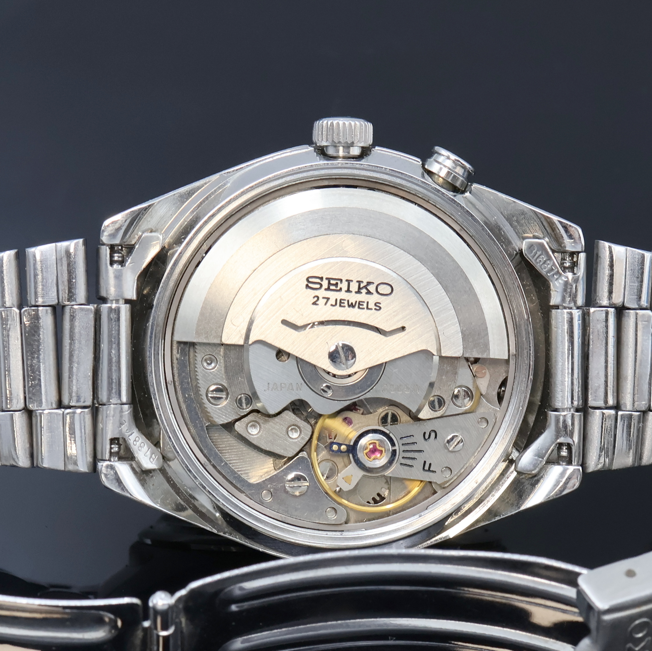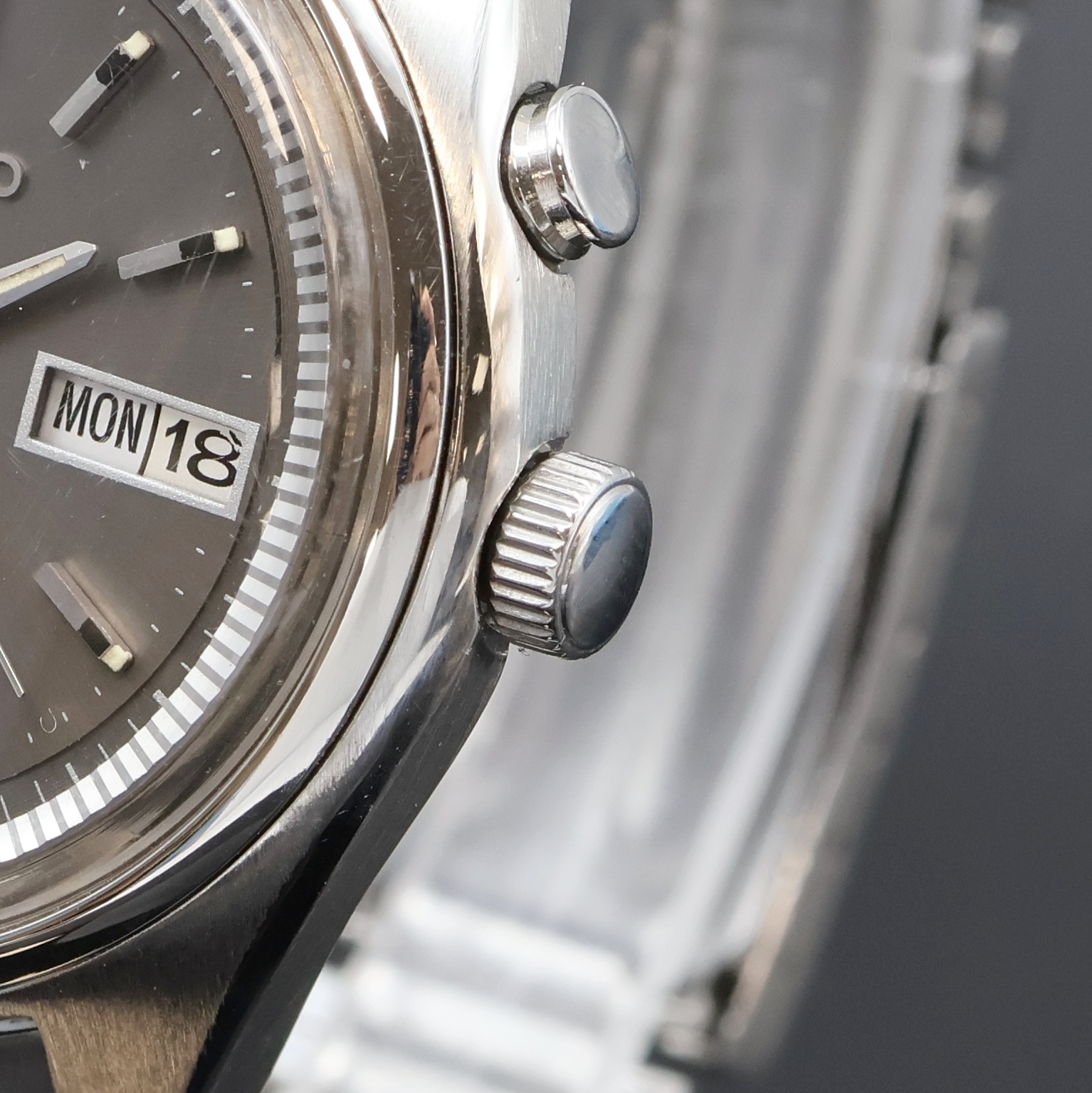 1970, Automatik, orig. Gliederband m. Faltschl., Boden verschr., graues Zifferbl.