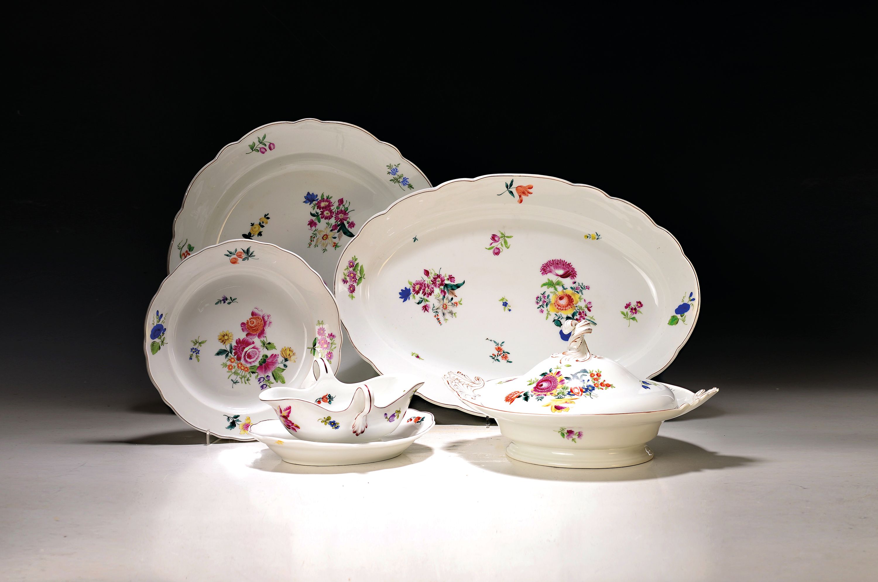Deckelschüssel, 2 runde Schalen, große runde Platte, große ovale Platte, 2 Saucieren,