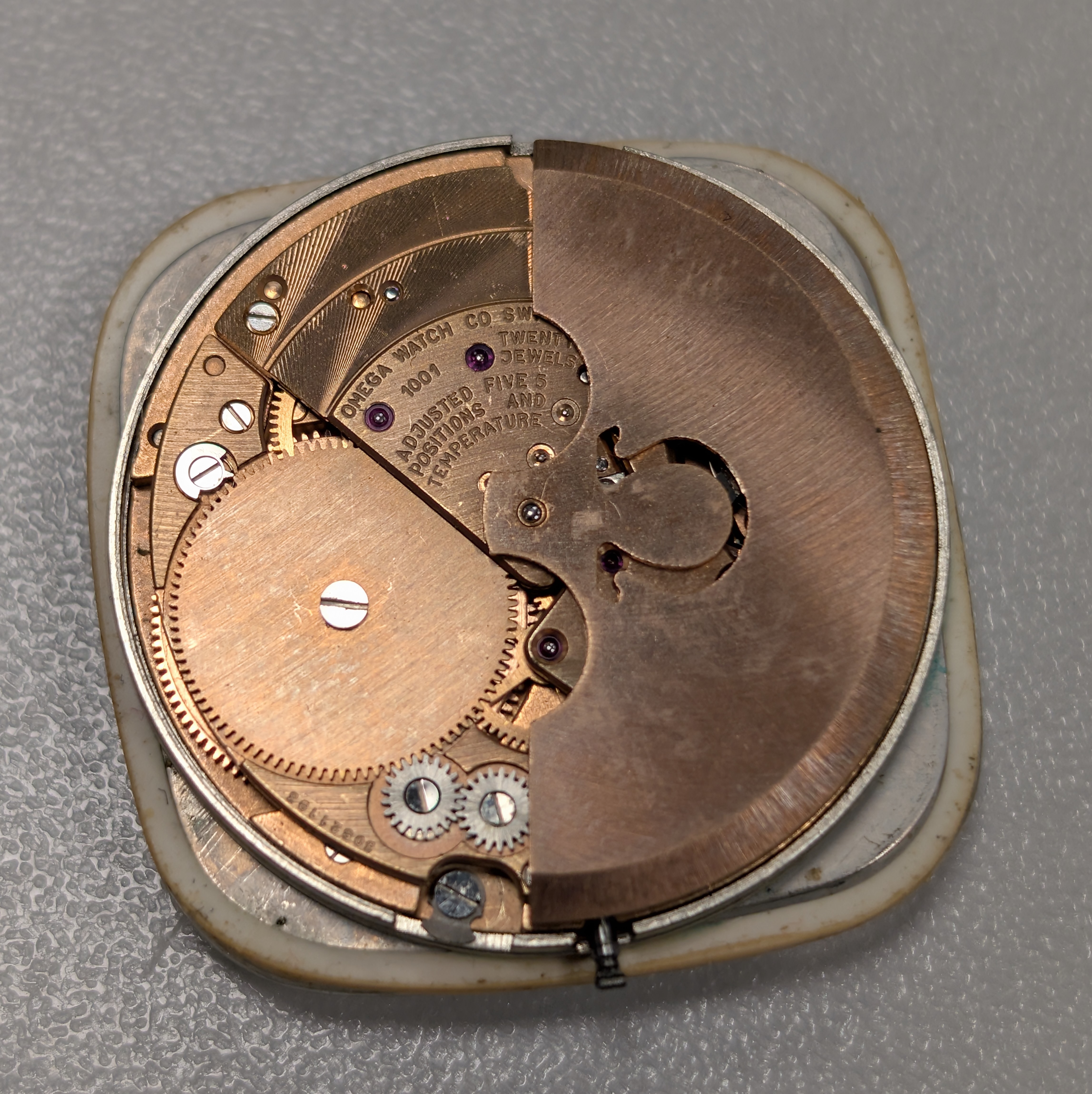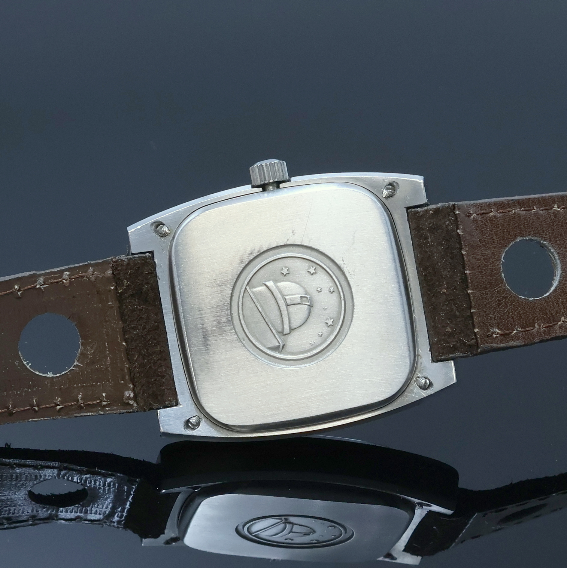 1969, Automatik, rechteck., 3-teil. Geh. inkl. Lederband m. orig. Dornschl., orig.