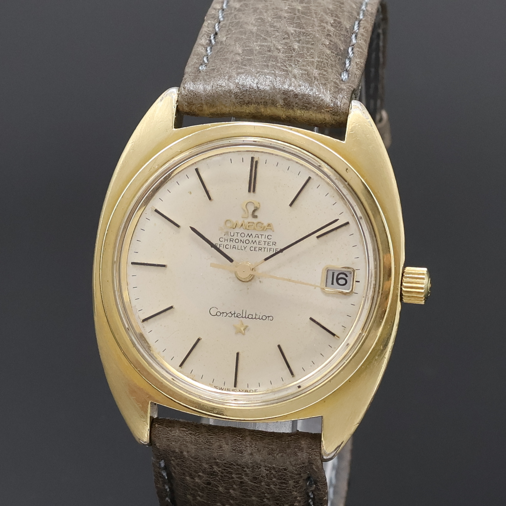 OMEGA Constellation Chronometer Herrenarmbanduhr mit Goldhaube Referenz 168.017,