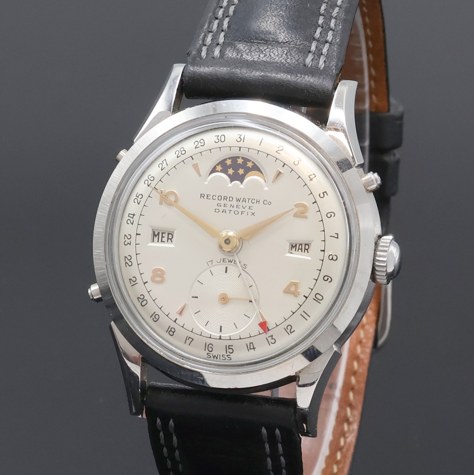 RECORD WATCH Datofix Herrenarmbanduhr mit Vollkalender und Mondphase, Schweiz 1940er