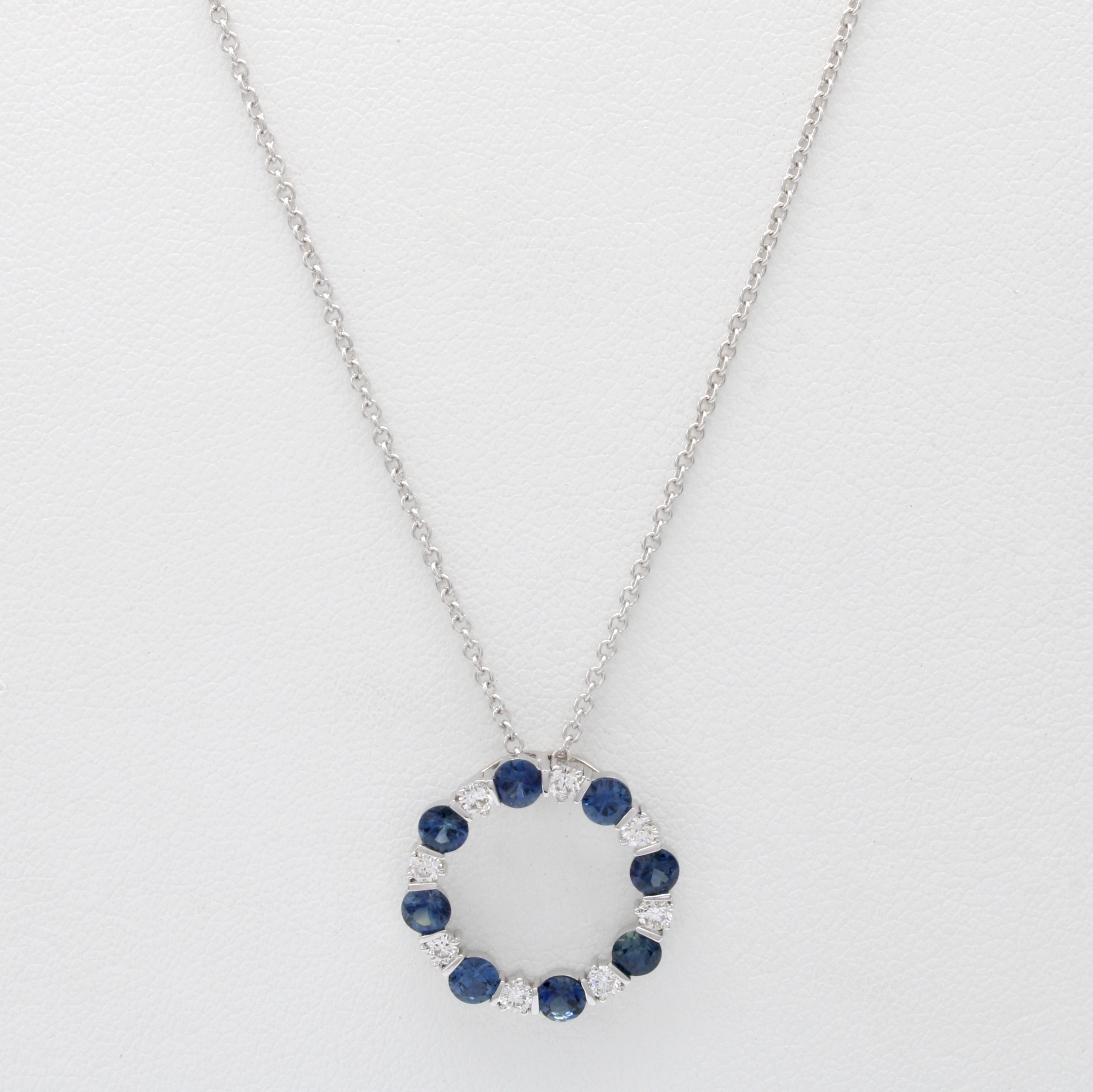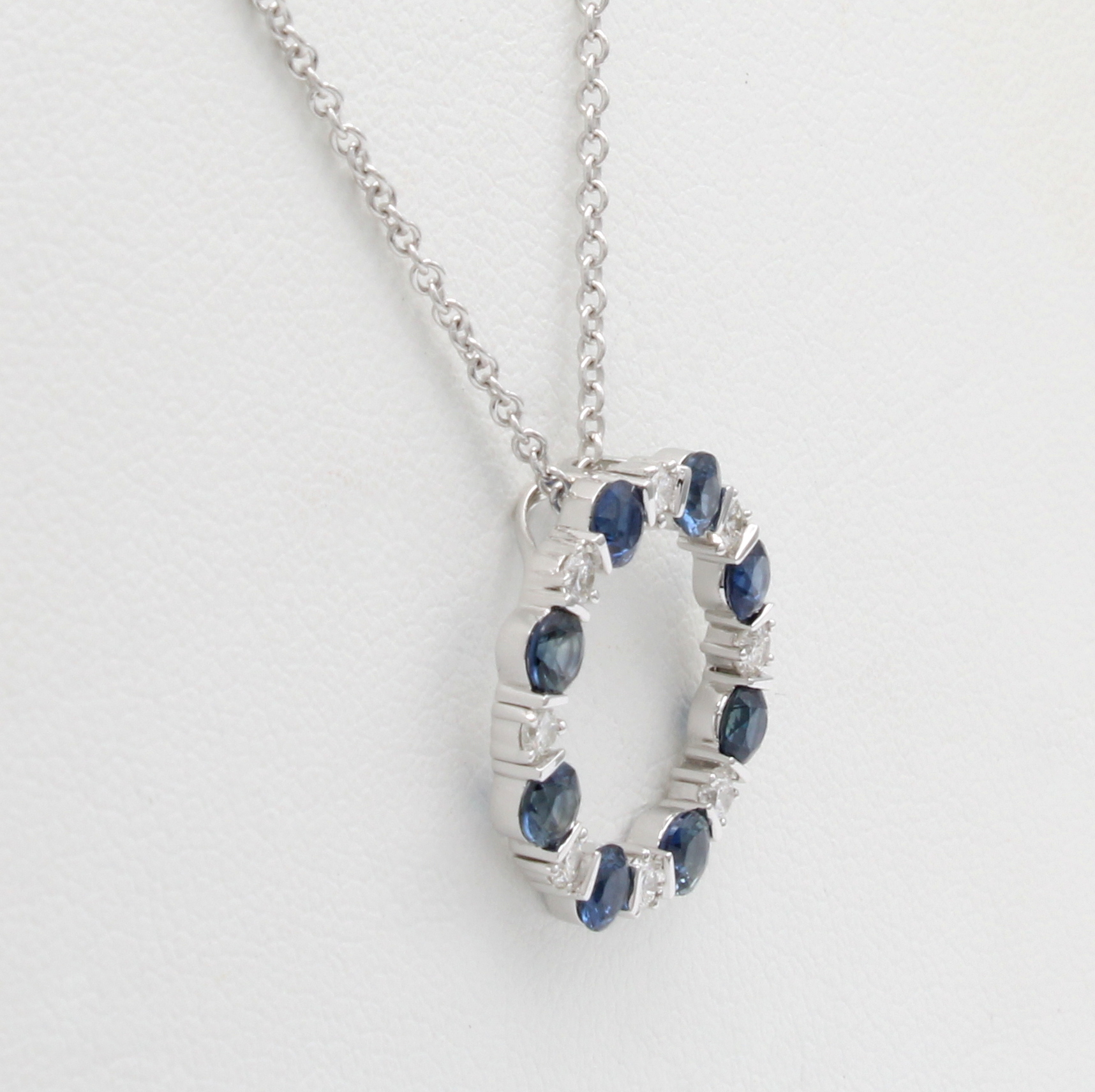 Anhänger mit Brillanten und Saphiren an Kette , WG 750/000, 8 Brill. zus. ca. 0.26 ct Weiß/si, 8 Saphire zus. ca. 1.06 ct, in L. ca. 41, 43 u. 45 cm tragbar Schätzpreis: 3120, - EUR