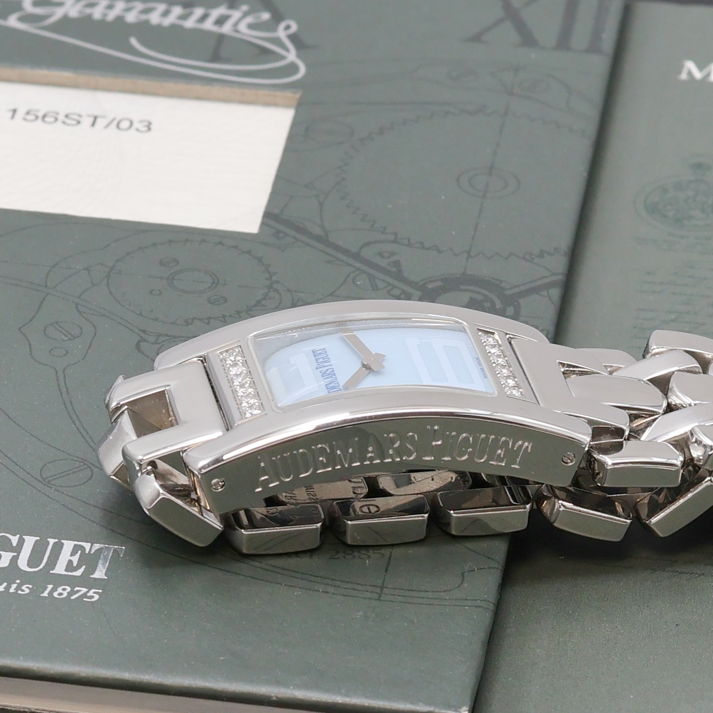 inkl. Gliederband m. dopp. Faltschl., Boden 4-fach verschr., Geh. m. 12 Brillanten