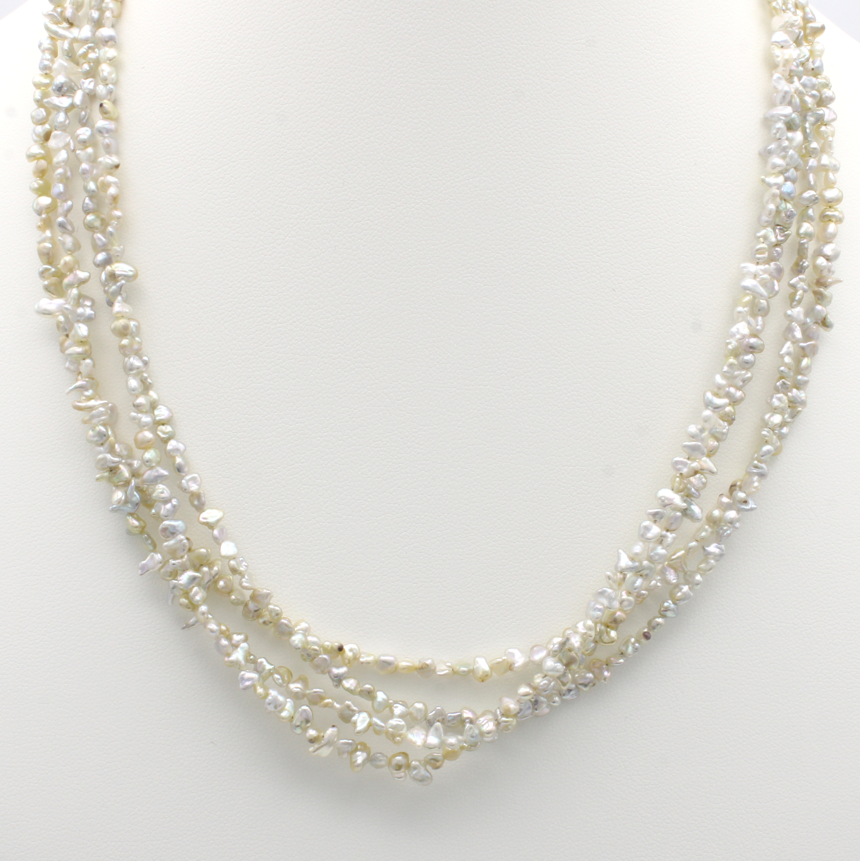 4-reihige Kette mit Keshiperlen, Silber 925/000, Magnetschl., hellgraue Keshiperlen, L. ca. 48 cm Schätzpreis: 1020, - EUR