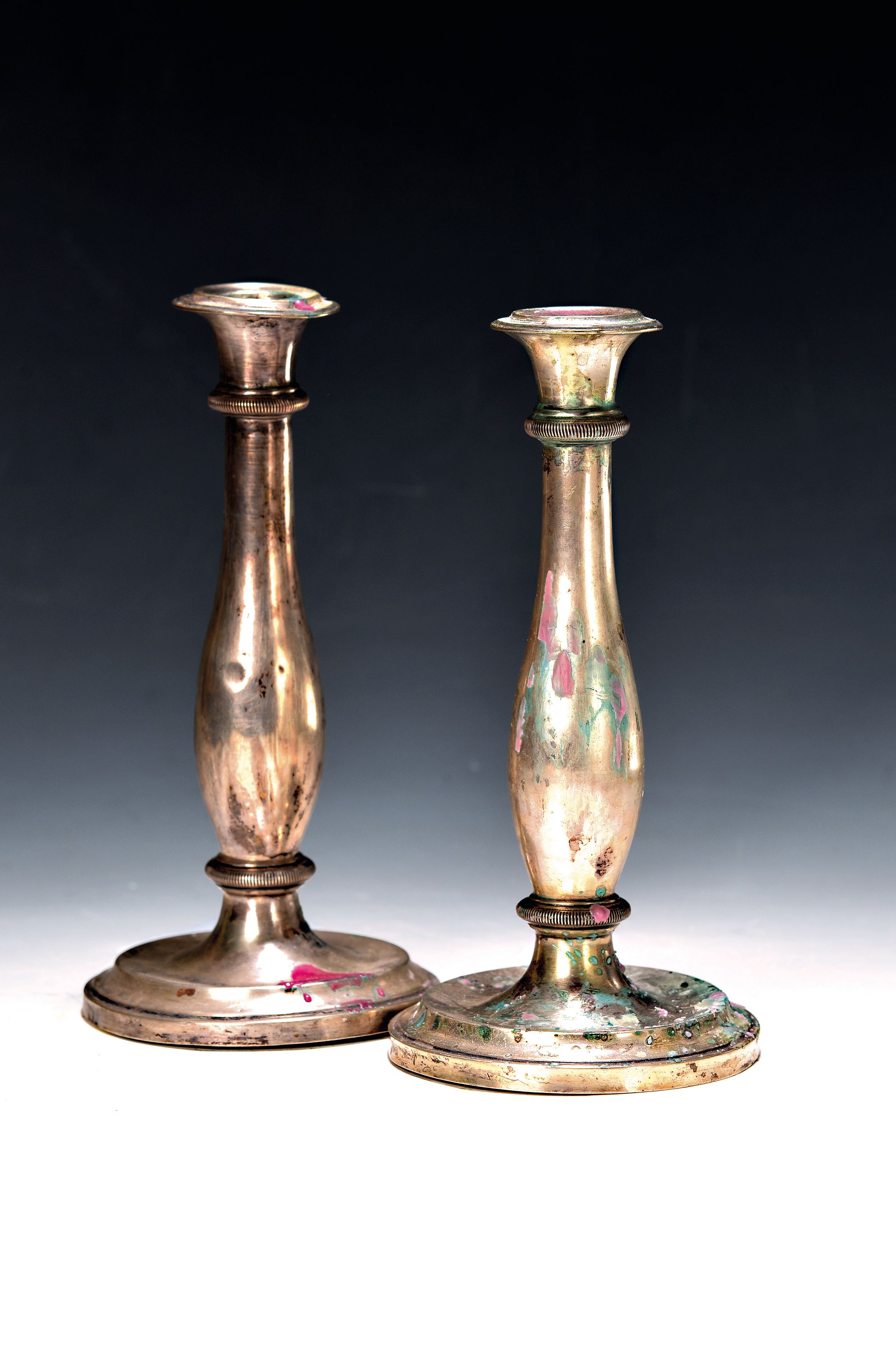 Paar Wiener Biedermeier-Leuchter, wohl Österreich, um 1820, Silber geprüft, 502g,