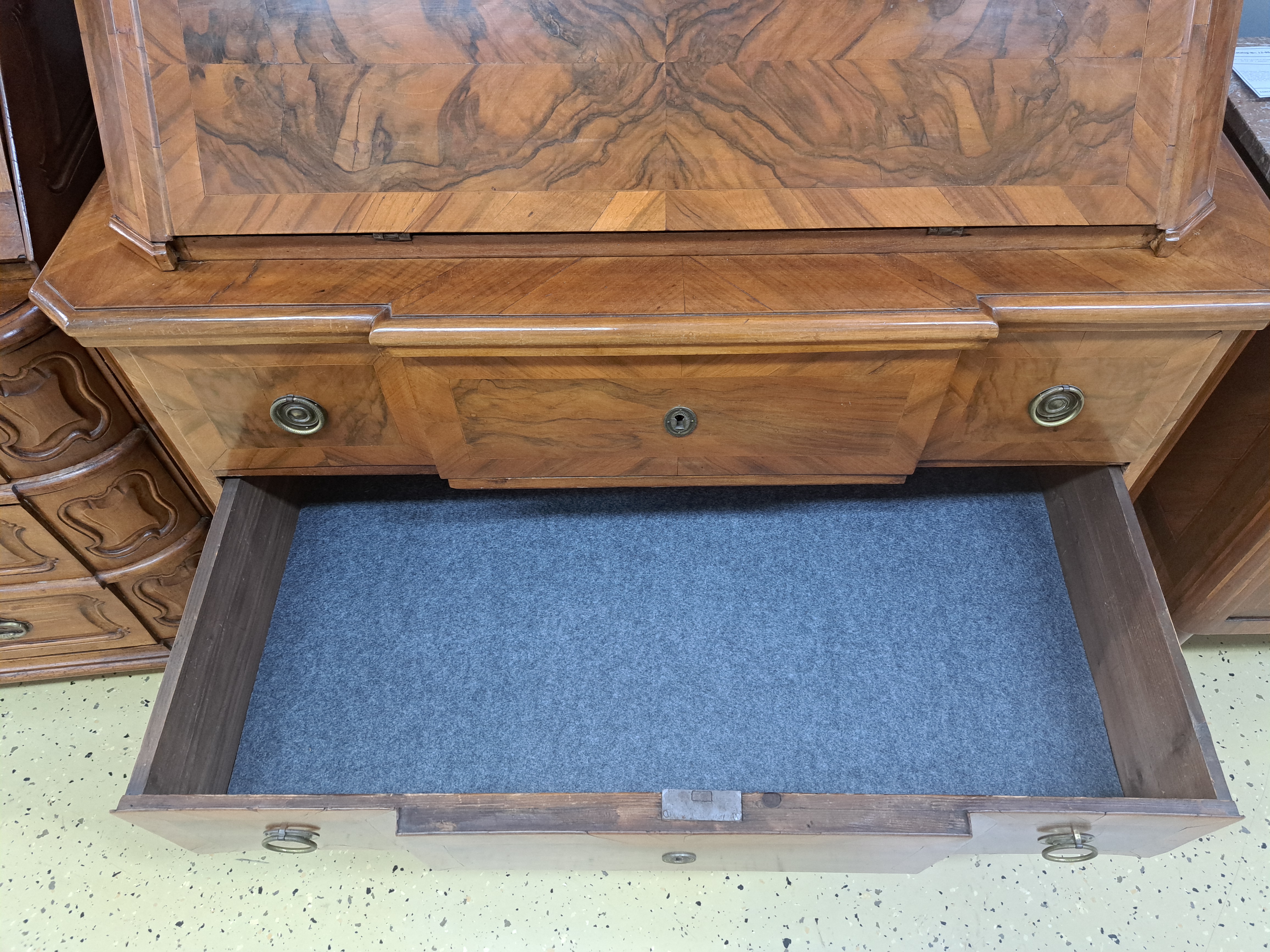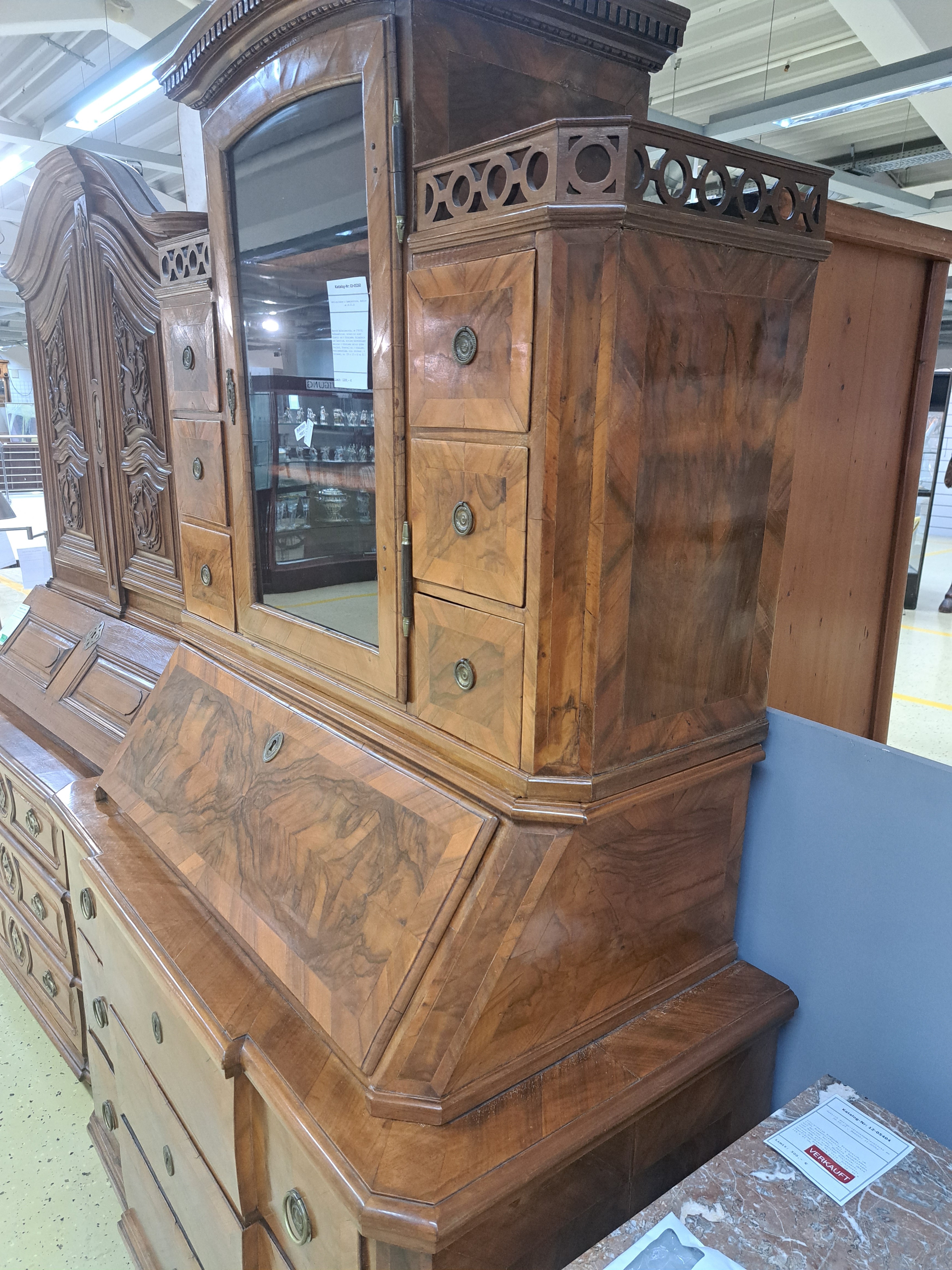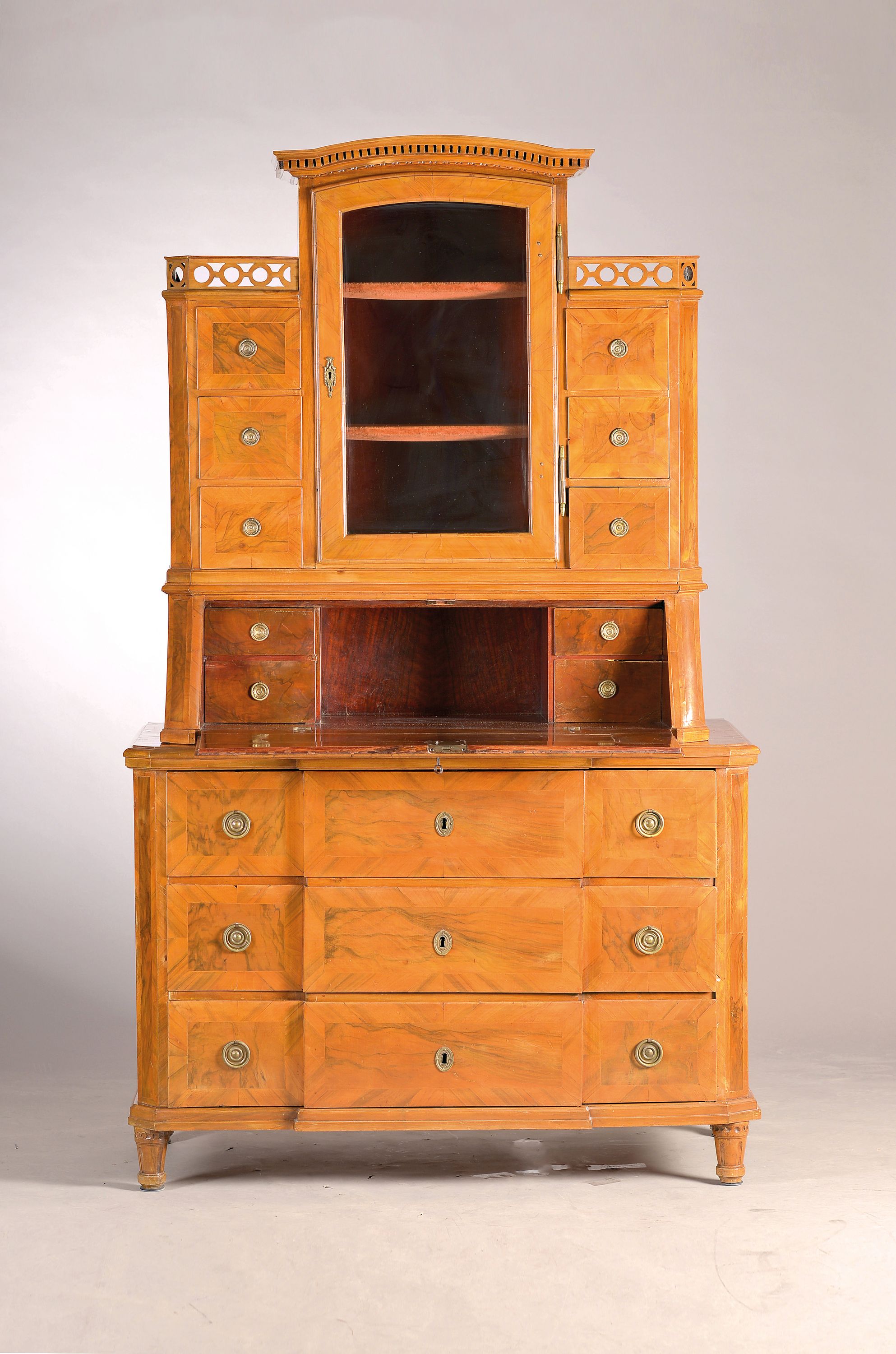 und 6 Schubladen, Holzgalerie und Zahnfrieß, mittlere Sekretärklappe dahinter 4