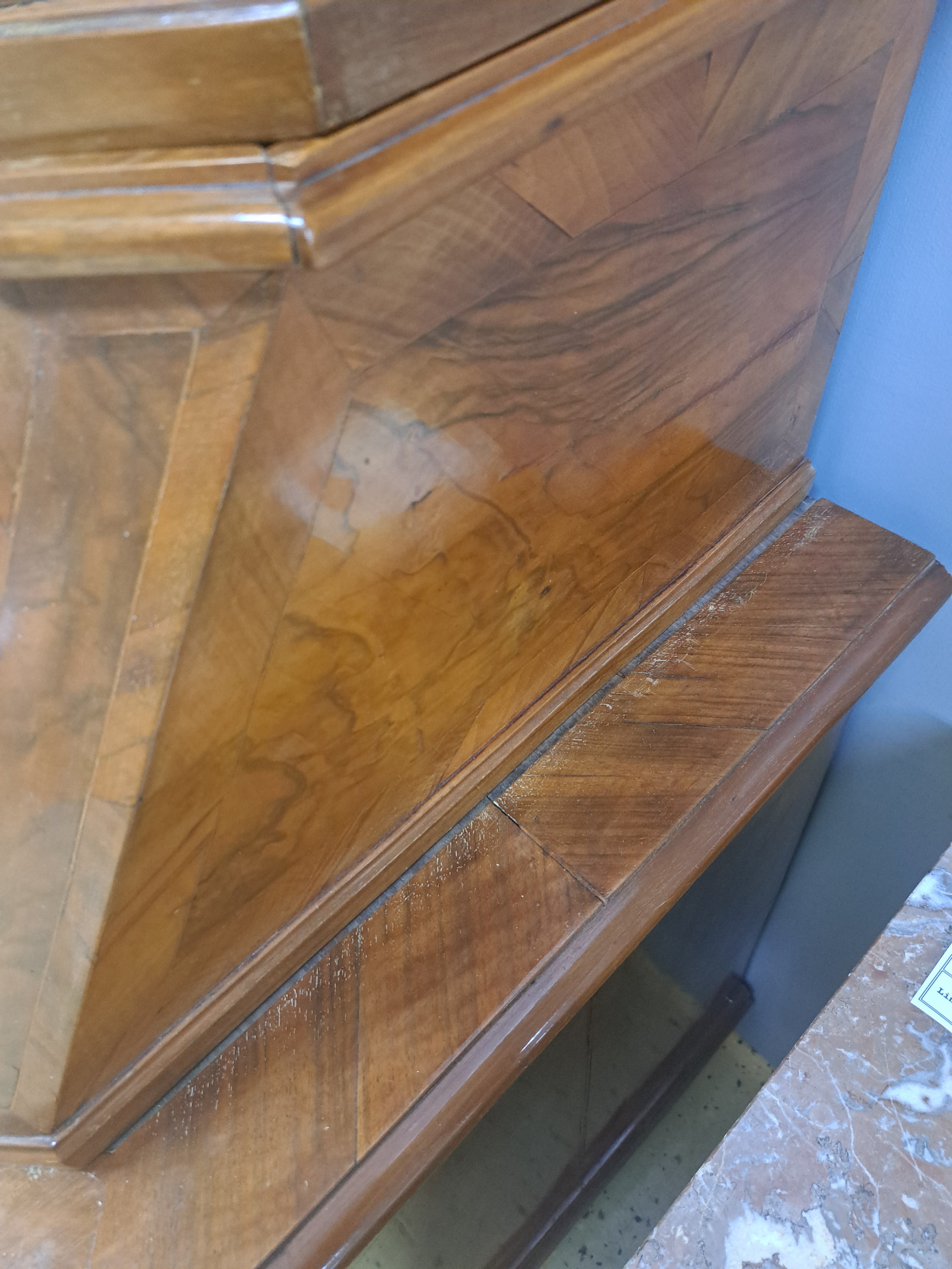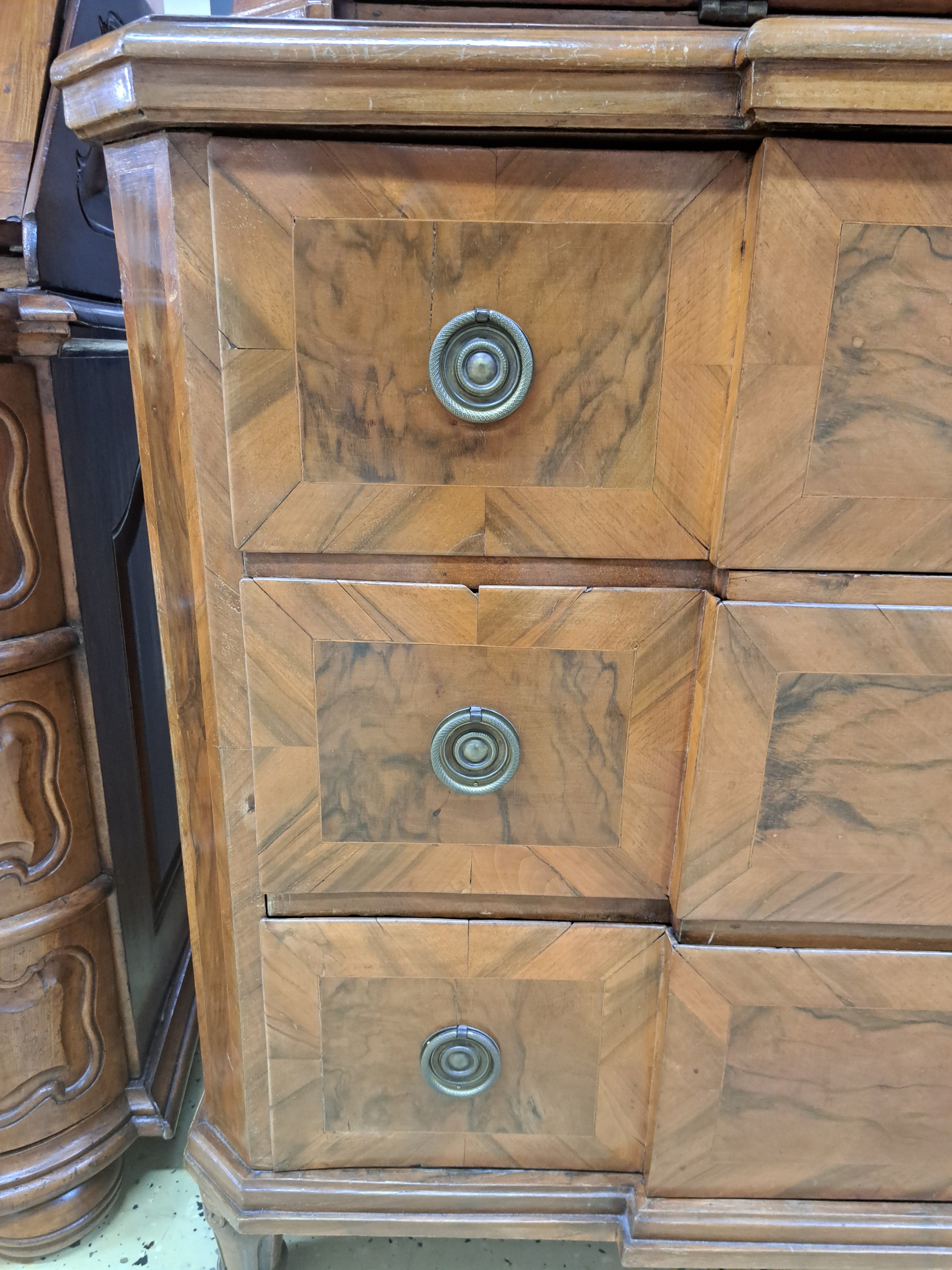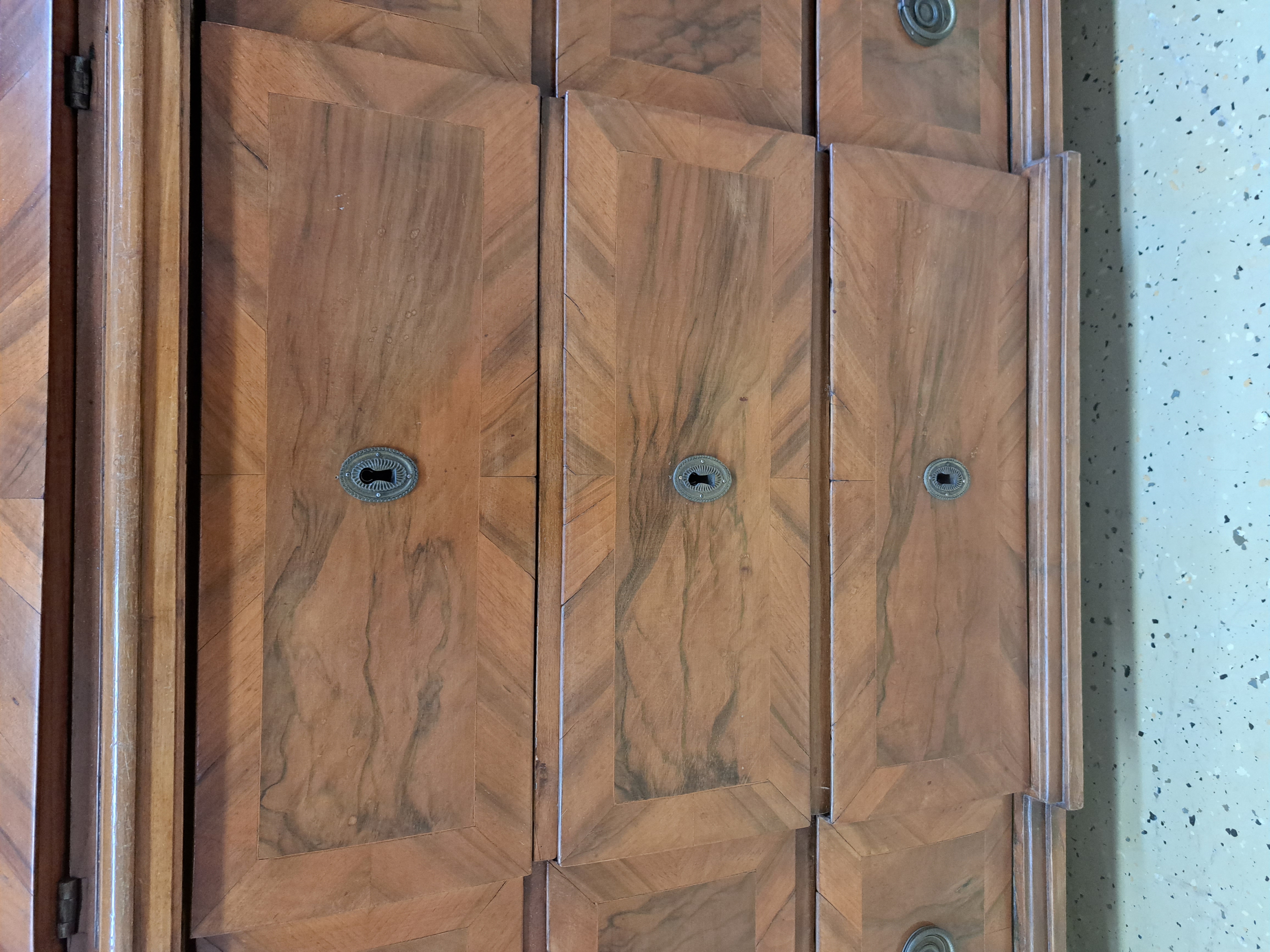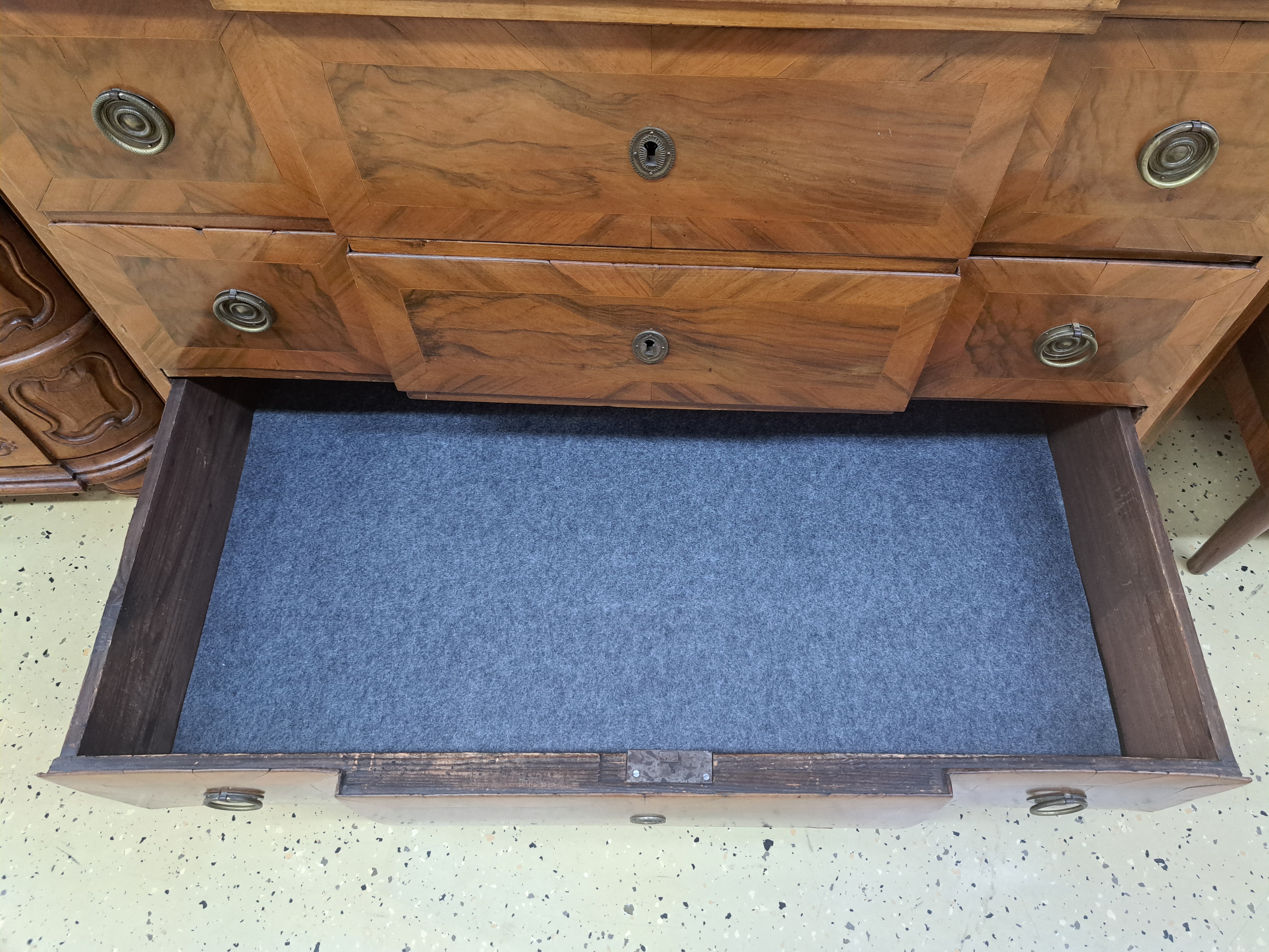 und 6 Schubladen, Holzgalerie und Zahnfrieß, mittlere Sekretärklappe dahinter 4
