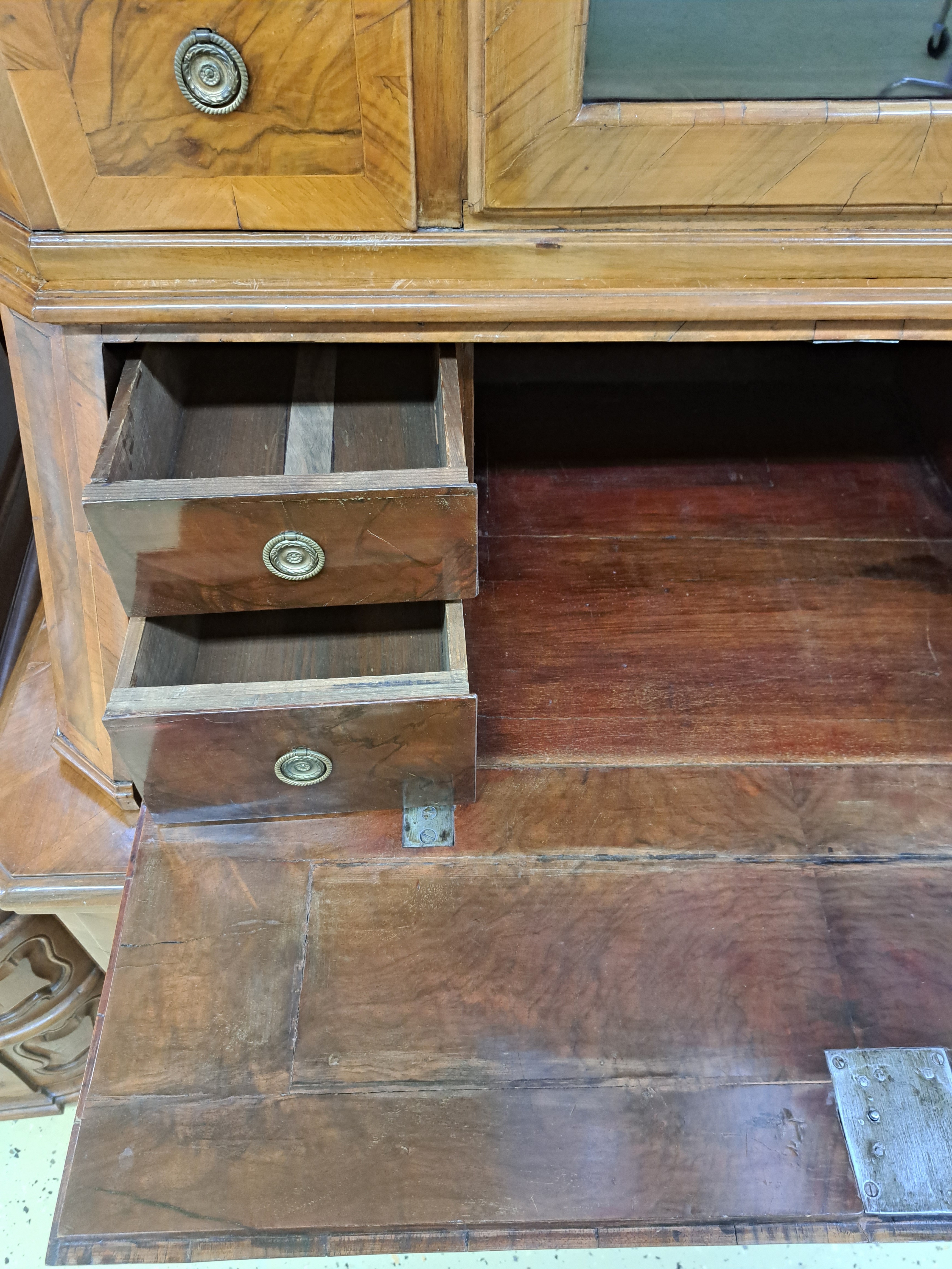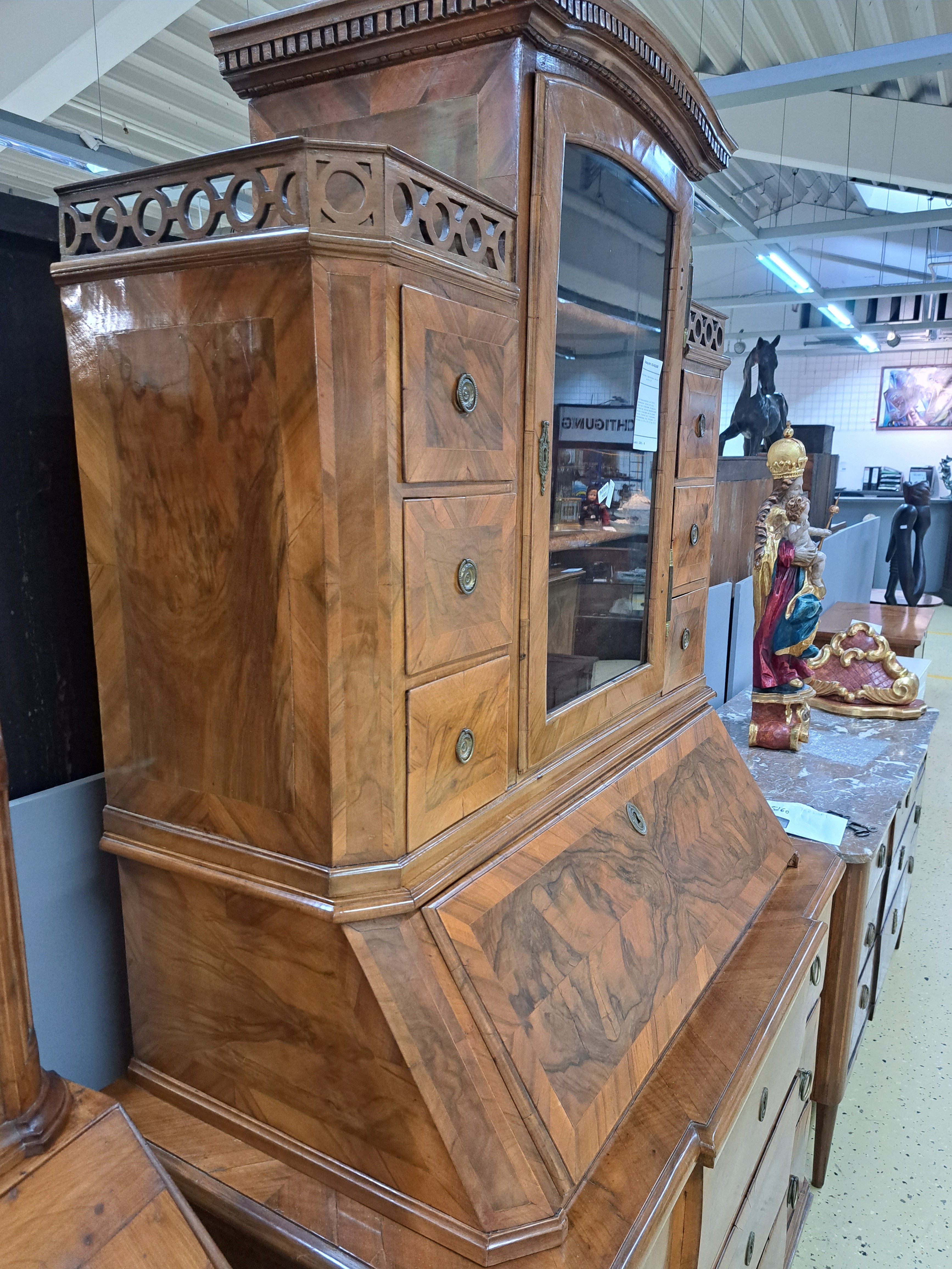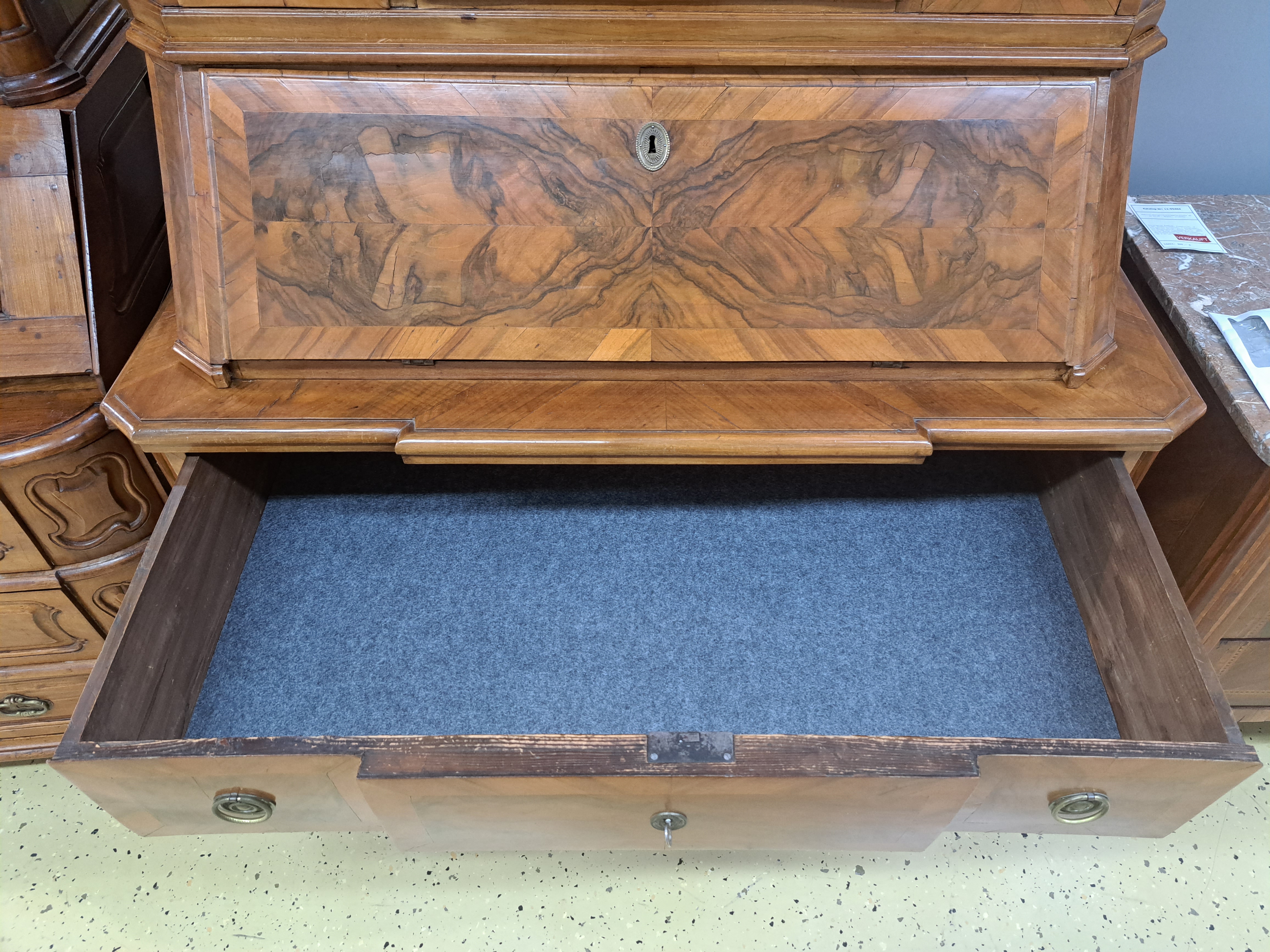Barock Aufsatzsekretär, um 1740/50, Nußbaumfurnier, Aufsatz mit einer Glastür