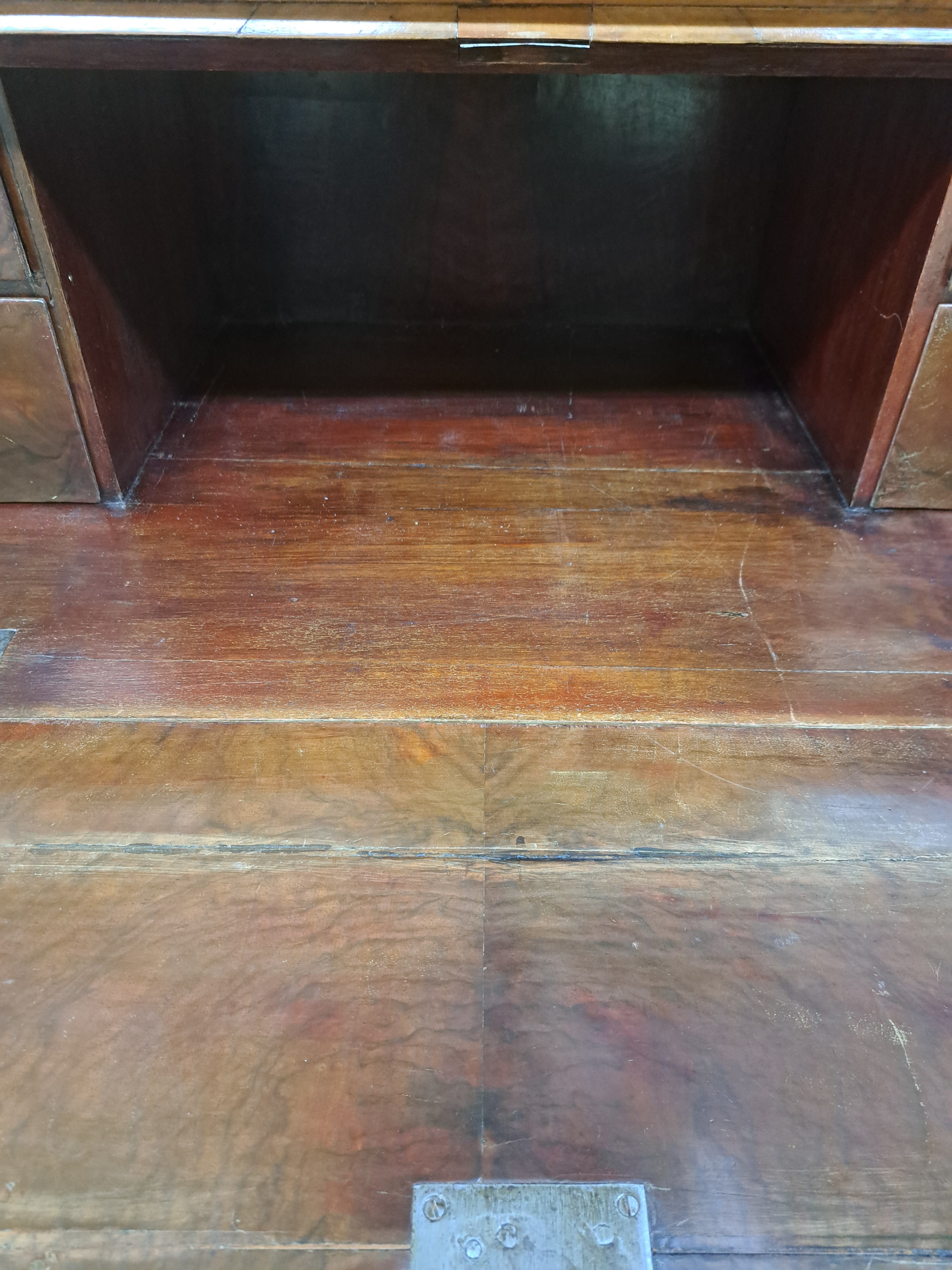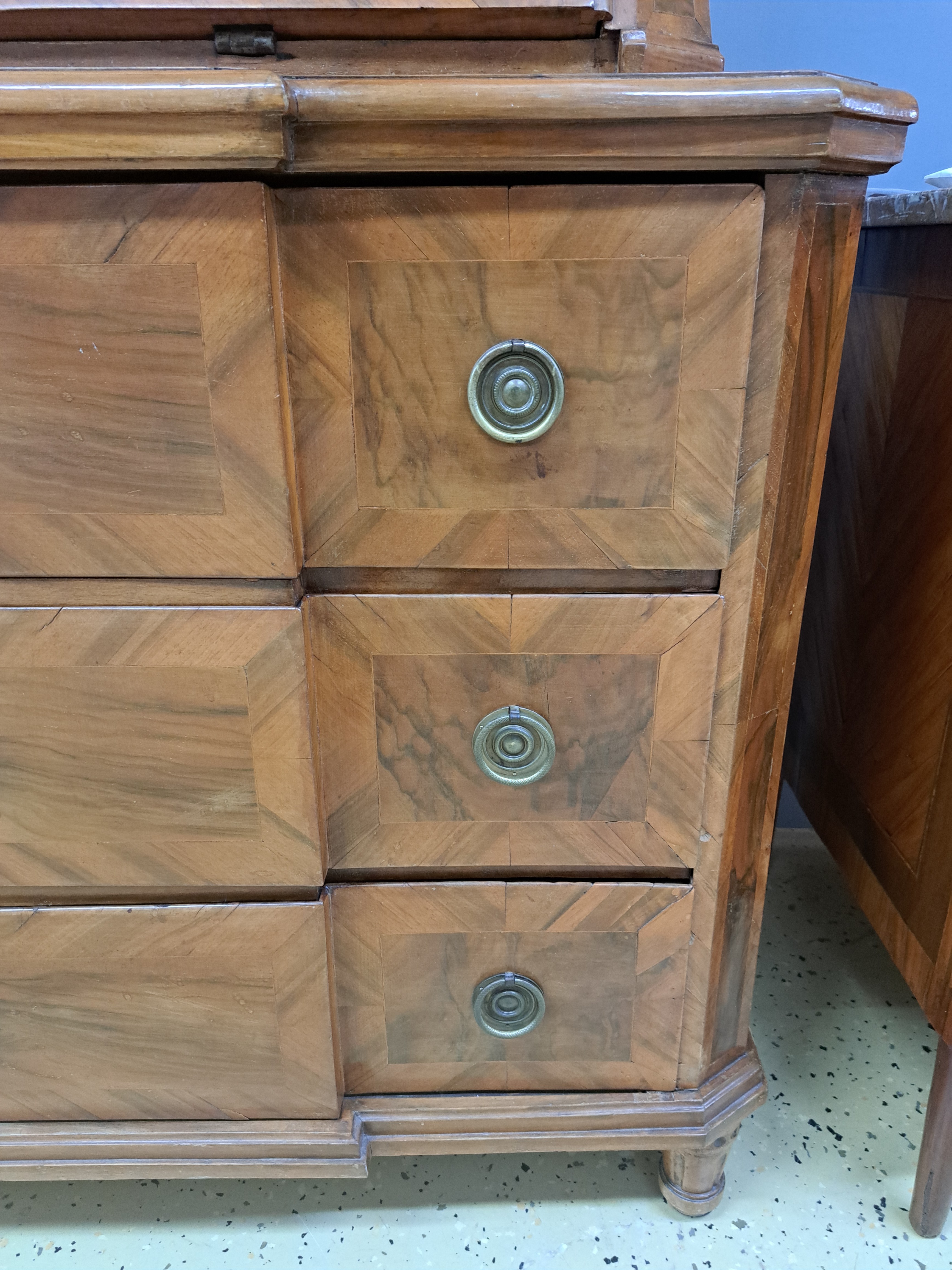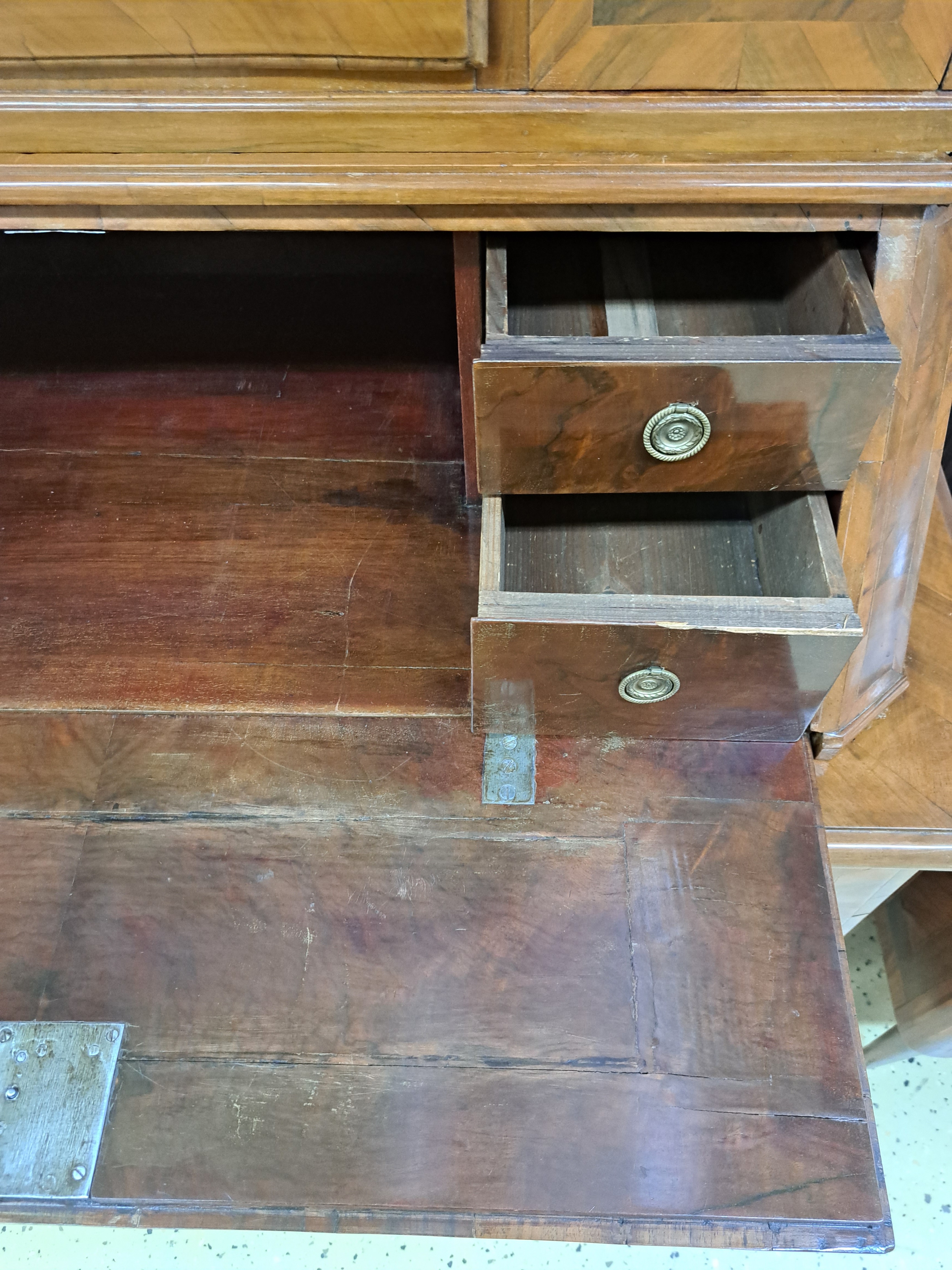 Barock Aufsatzsekretär, um 1740/50, Nußbaumfurnier, Aufsatz mit einer Glastür