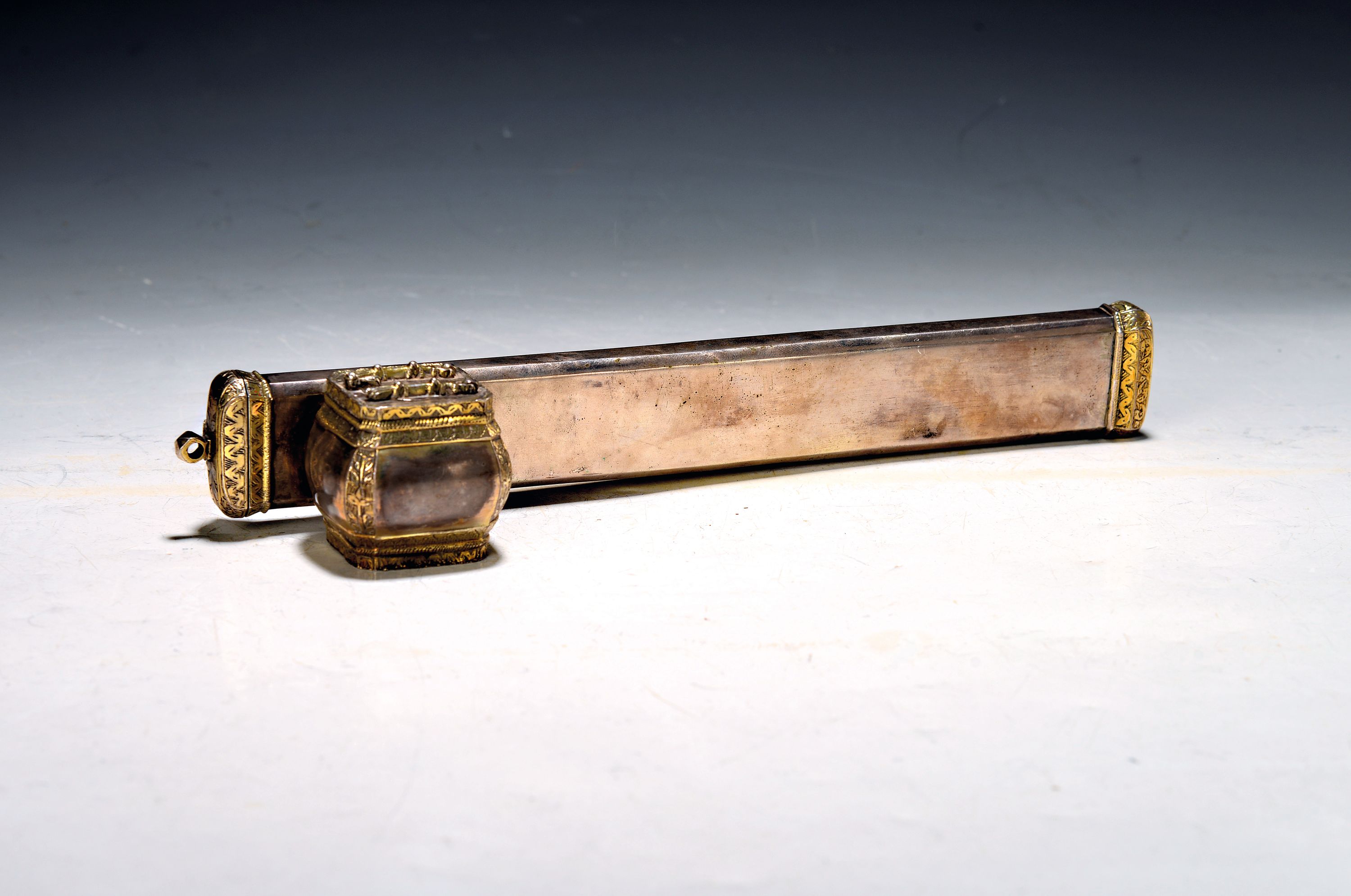 Qalamdan, osmanisch, um 1900, Silber geprüft, teilweise vergoldet, 310g, 26,5cm,