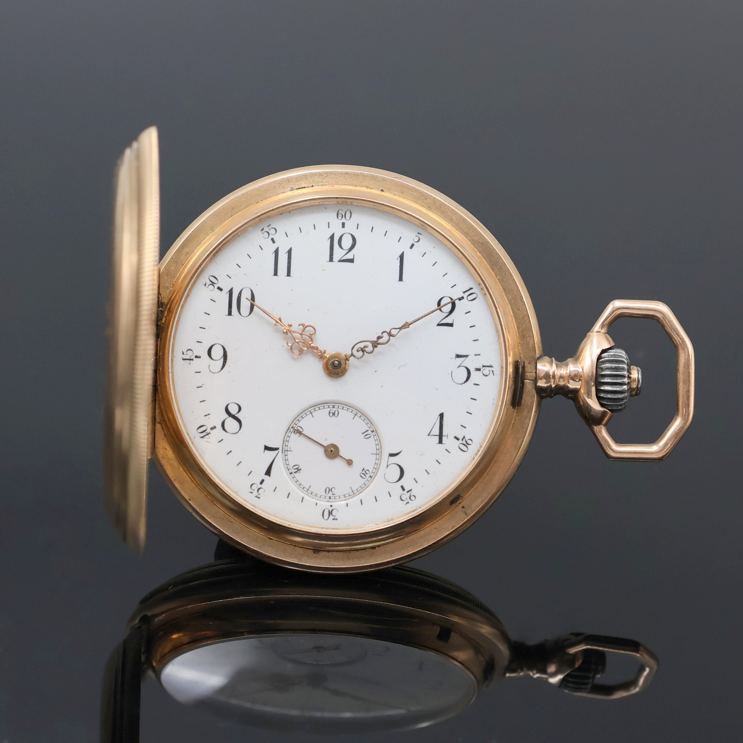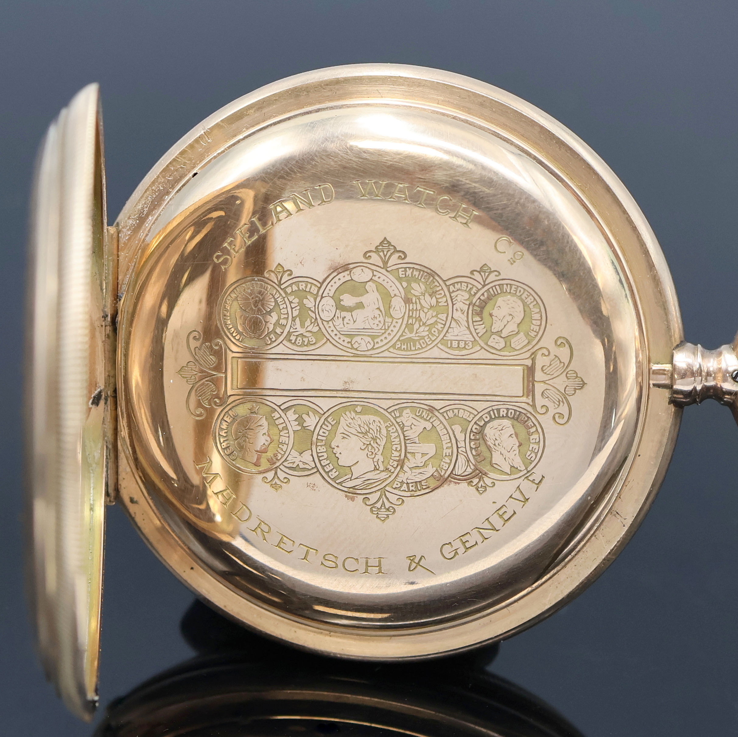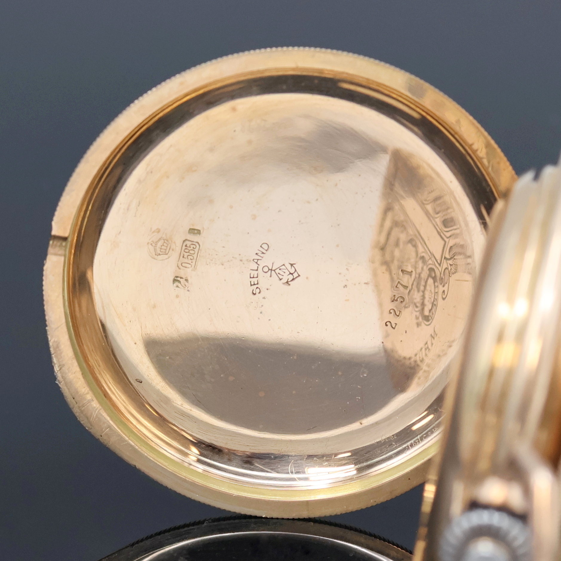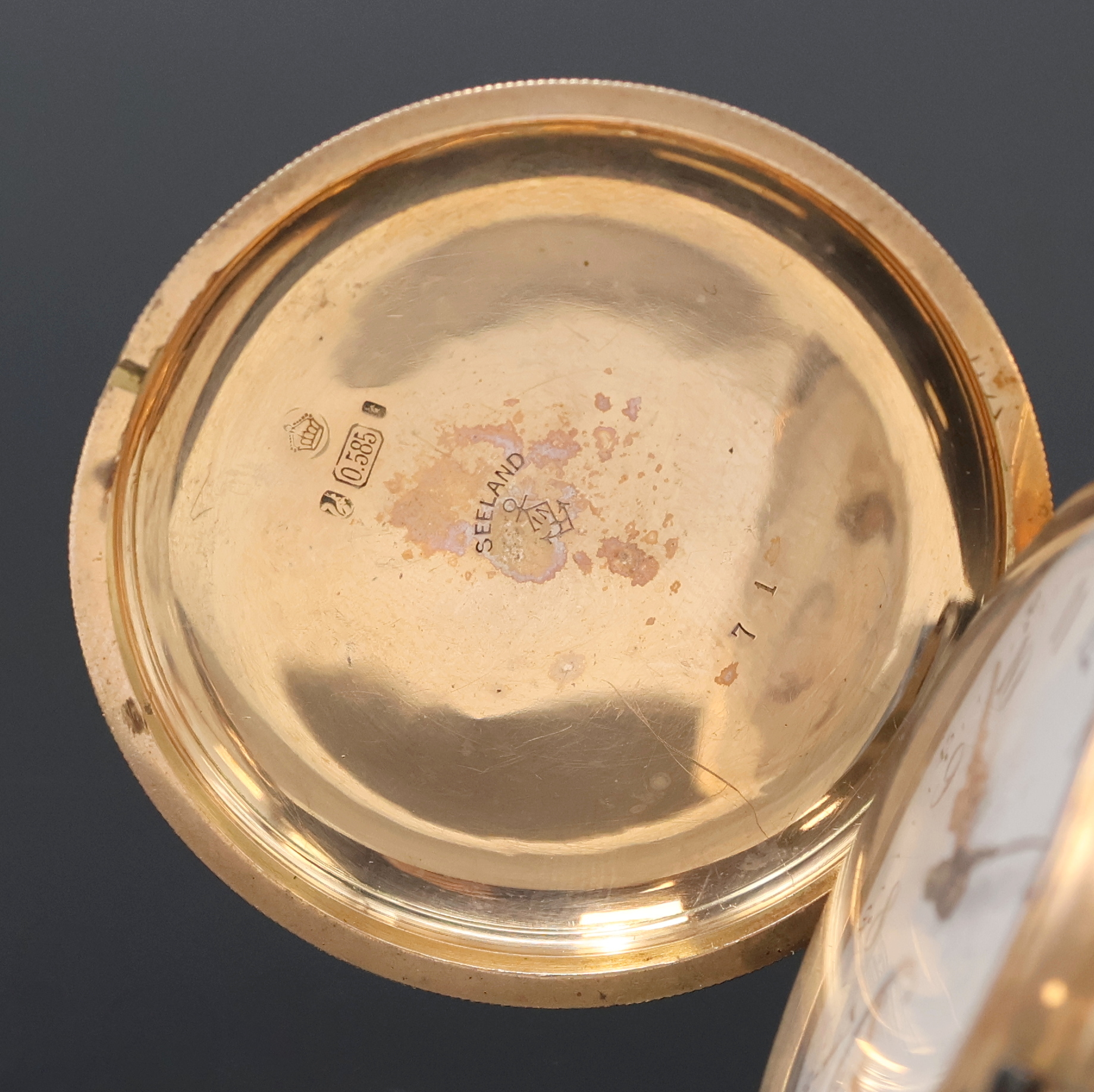 SEELAND Herrensavonette in RG 585/000, Schweiz um 1900, guill. 2-Deckel Goldgeh.