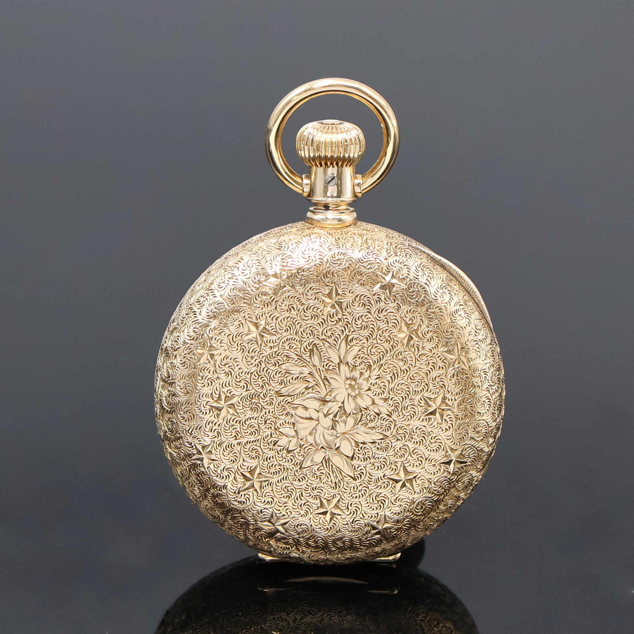 ELGIN Savonette Taschenuhr in GG 585/000, USA um 1890, fein grav. 3-Deckel Goldgeh.,