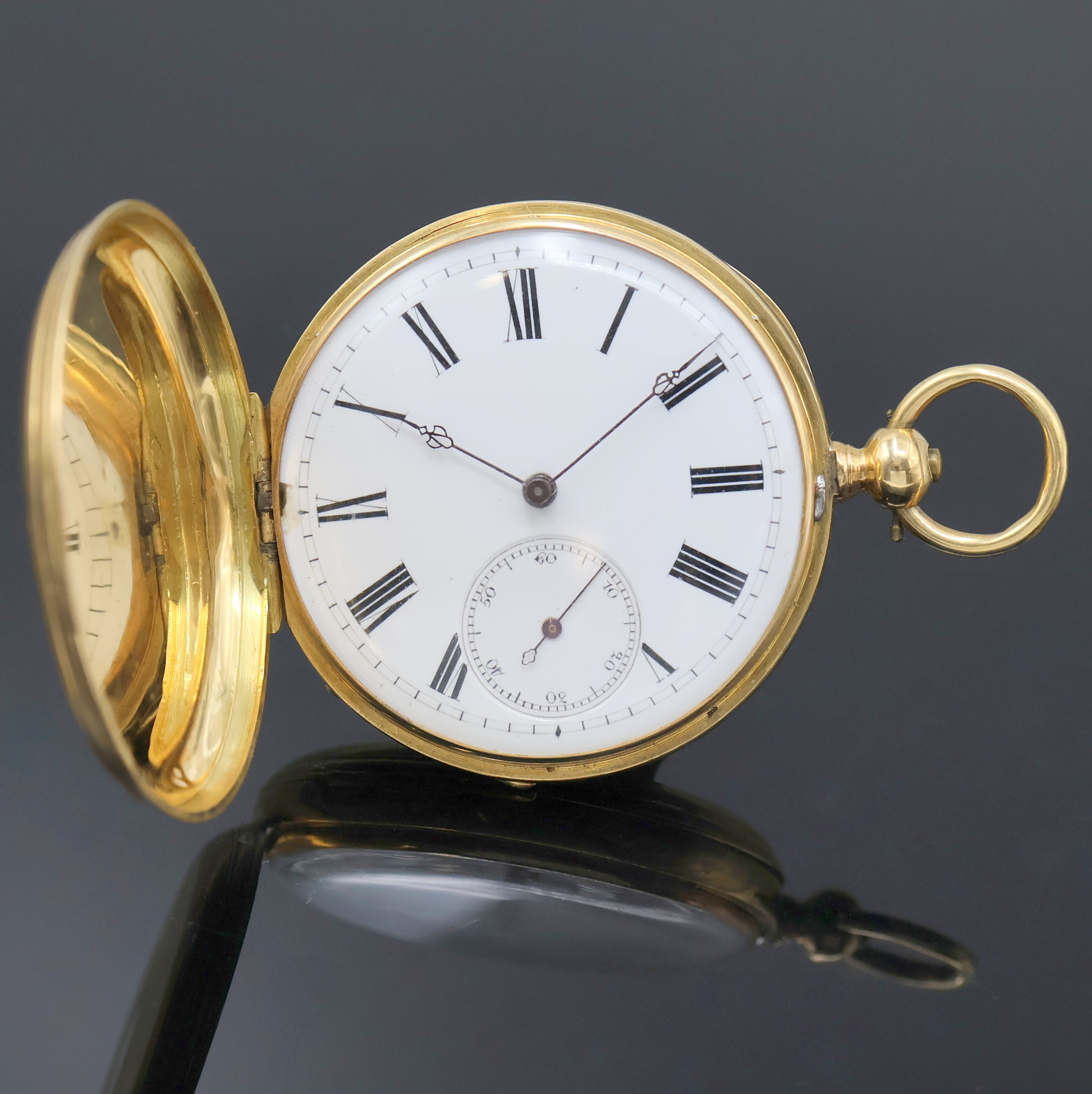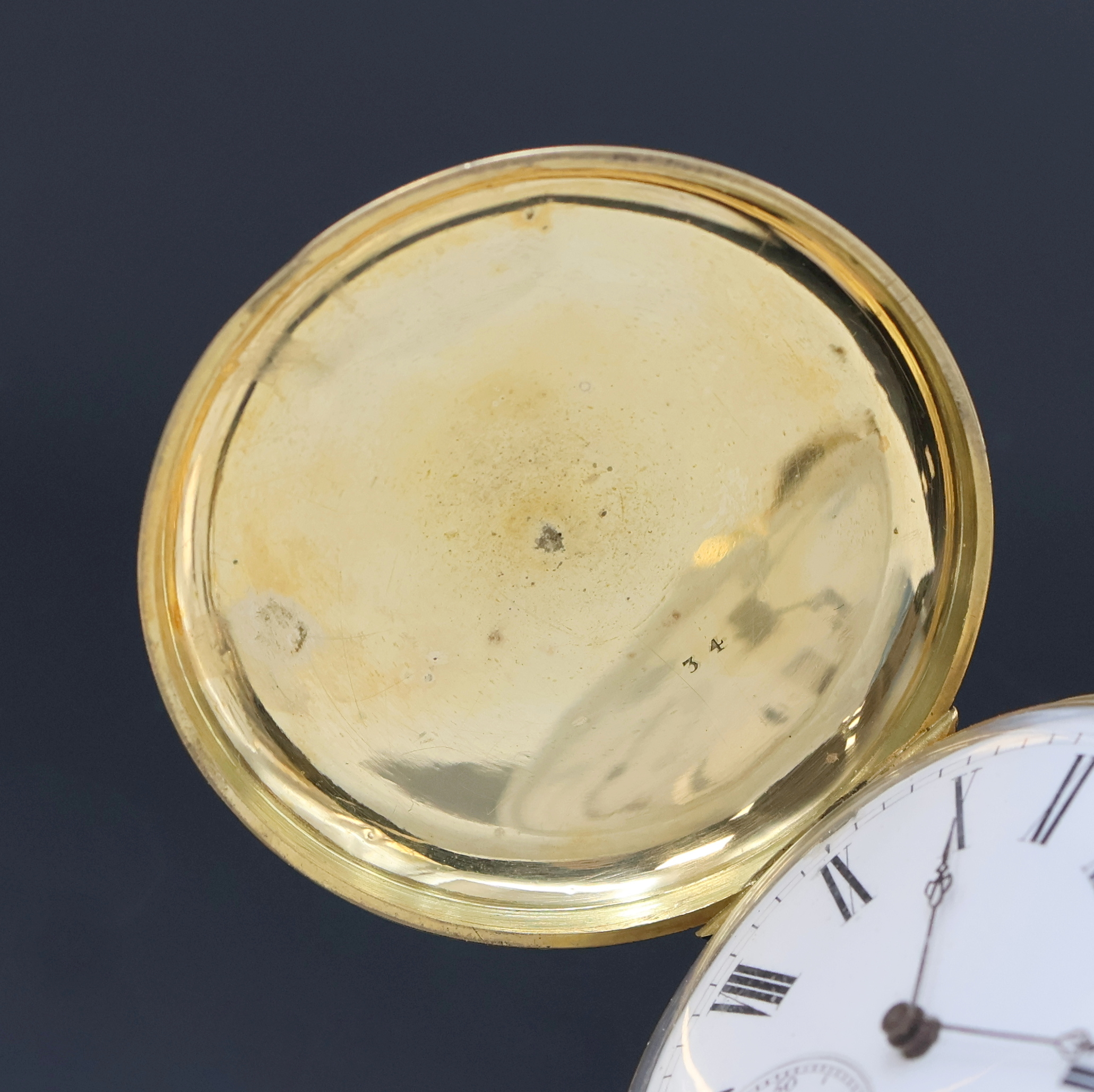 2- Deckel Goldgeh. dell., sign. Metallcuvette, Emailzifferbl., röm. Zahlen, kl.