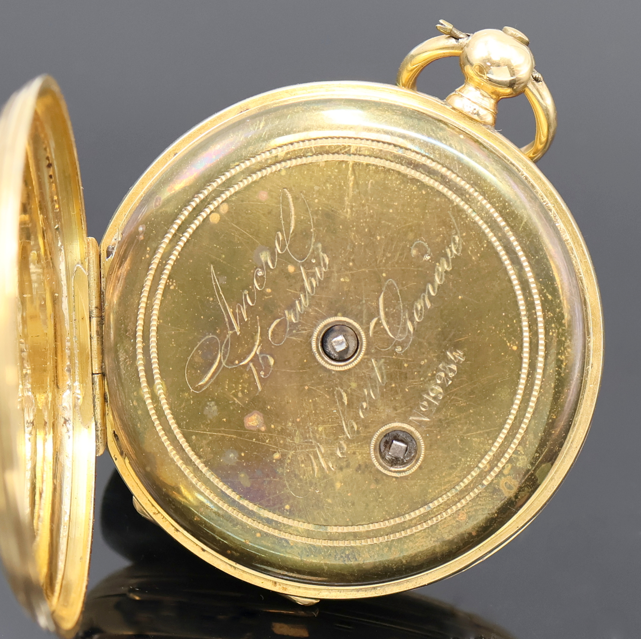 ROBERT Geneve Herrensavonette in GG 750/000, Schweiz um 1860, Schlüsselaufzug, guill.