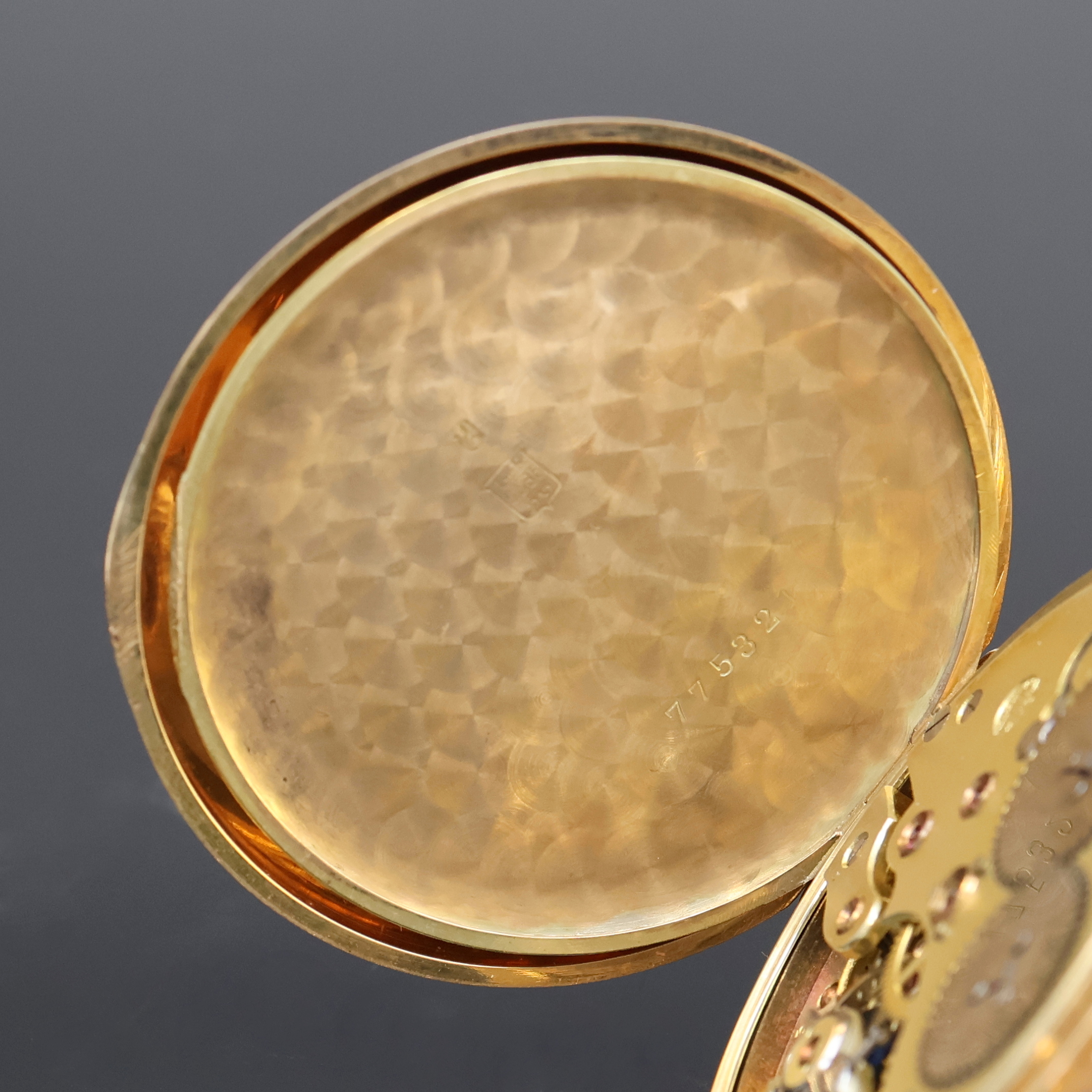 IWC Herrentaschenuhr in GG 585/000, Schweiz um 1919, guill. 2-Deckel Goldgeh. dell./