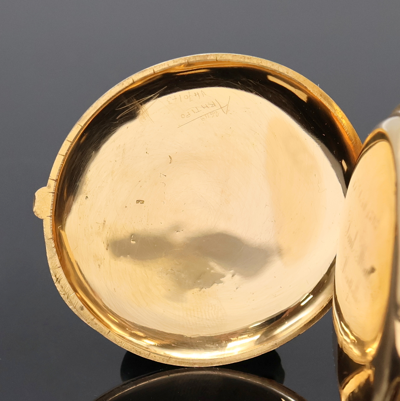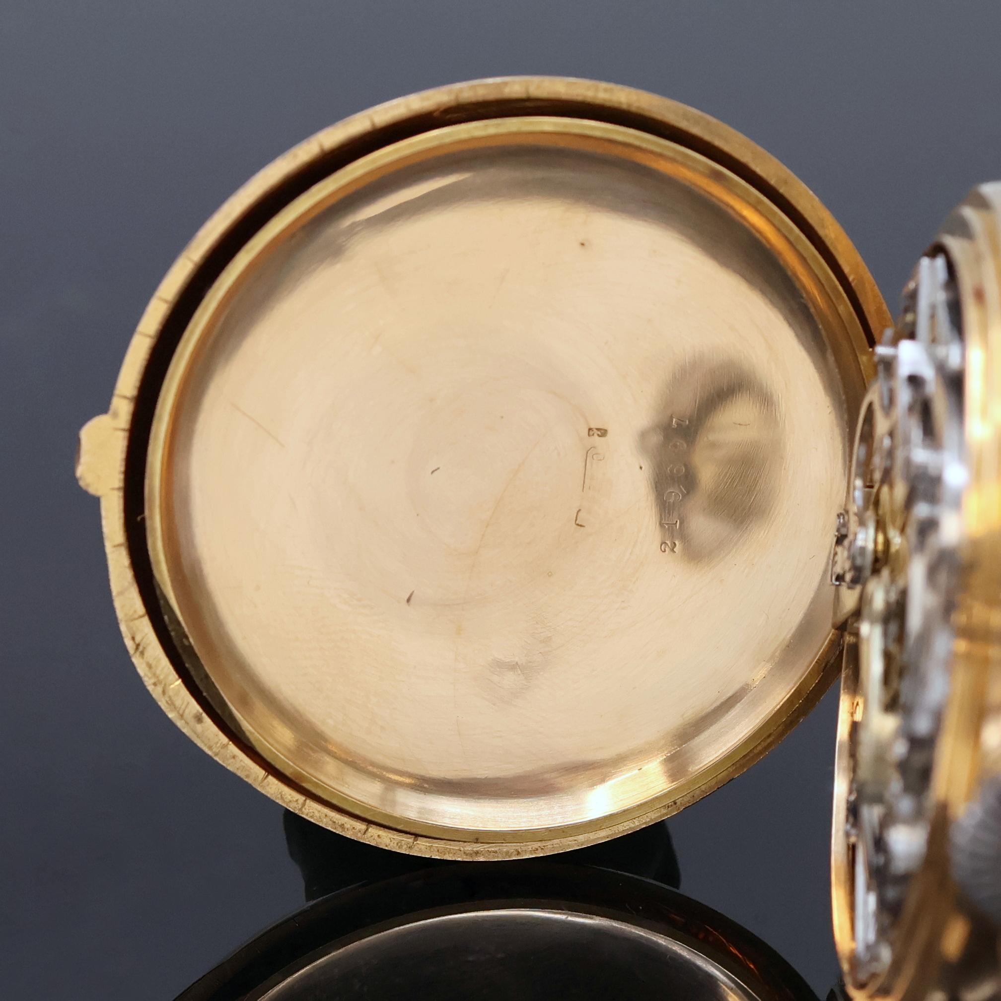 glattes Geh. m. à-Goutte Schlüssen, Rückdeckel u. Cuvette m. Eigentümer-Grav.,
