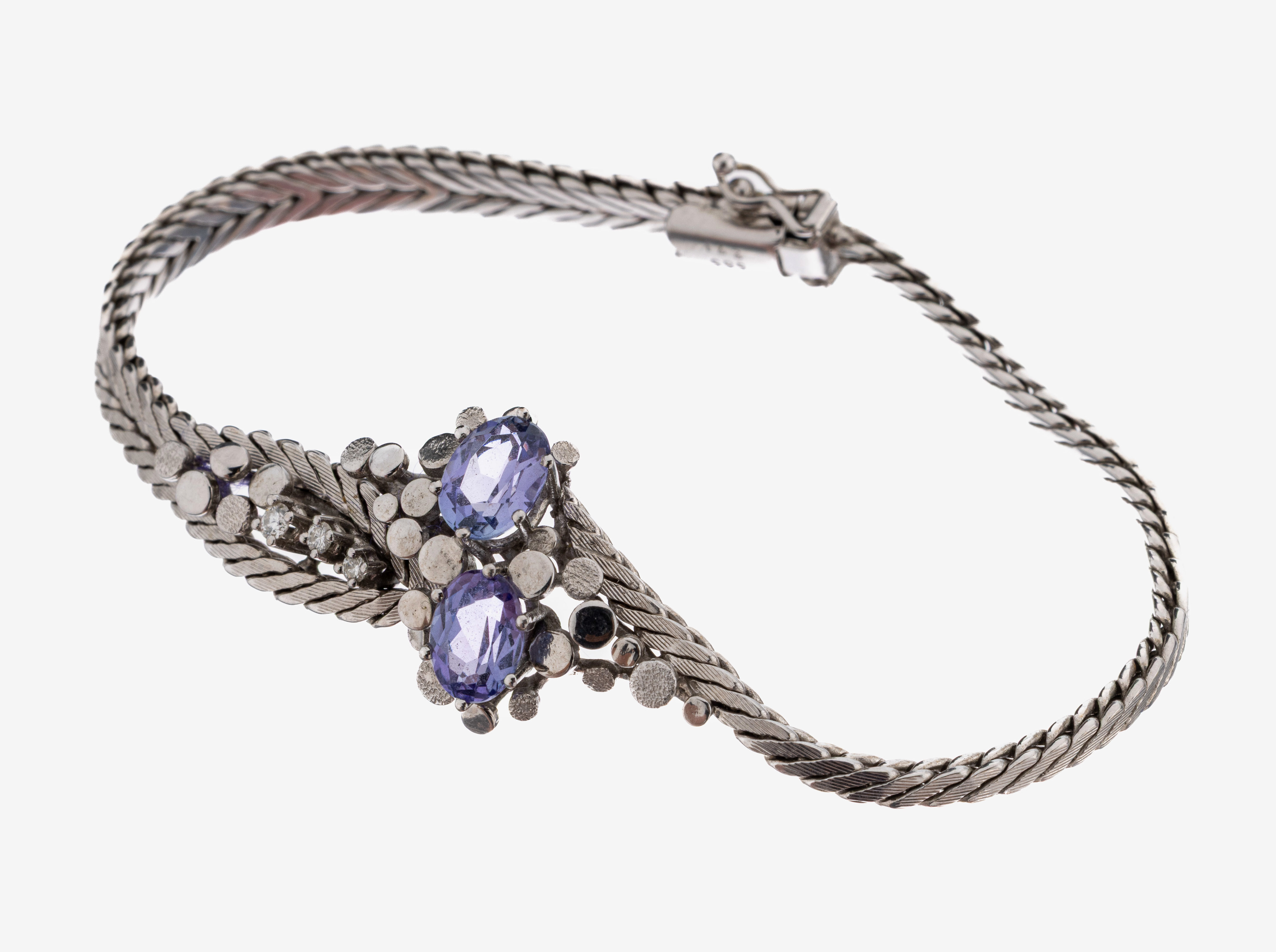 14 kt Gold Tansanit-Brillant-Armband, 1970er Jahre, WG 585/000, abstraktes Design,
