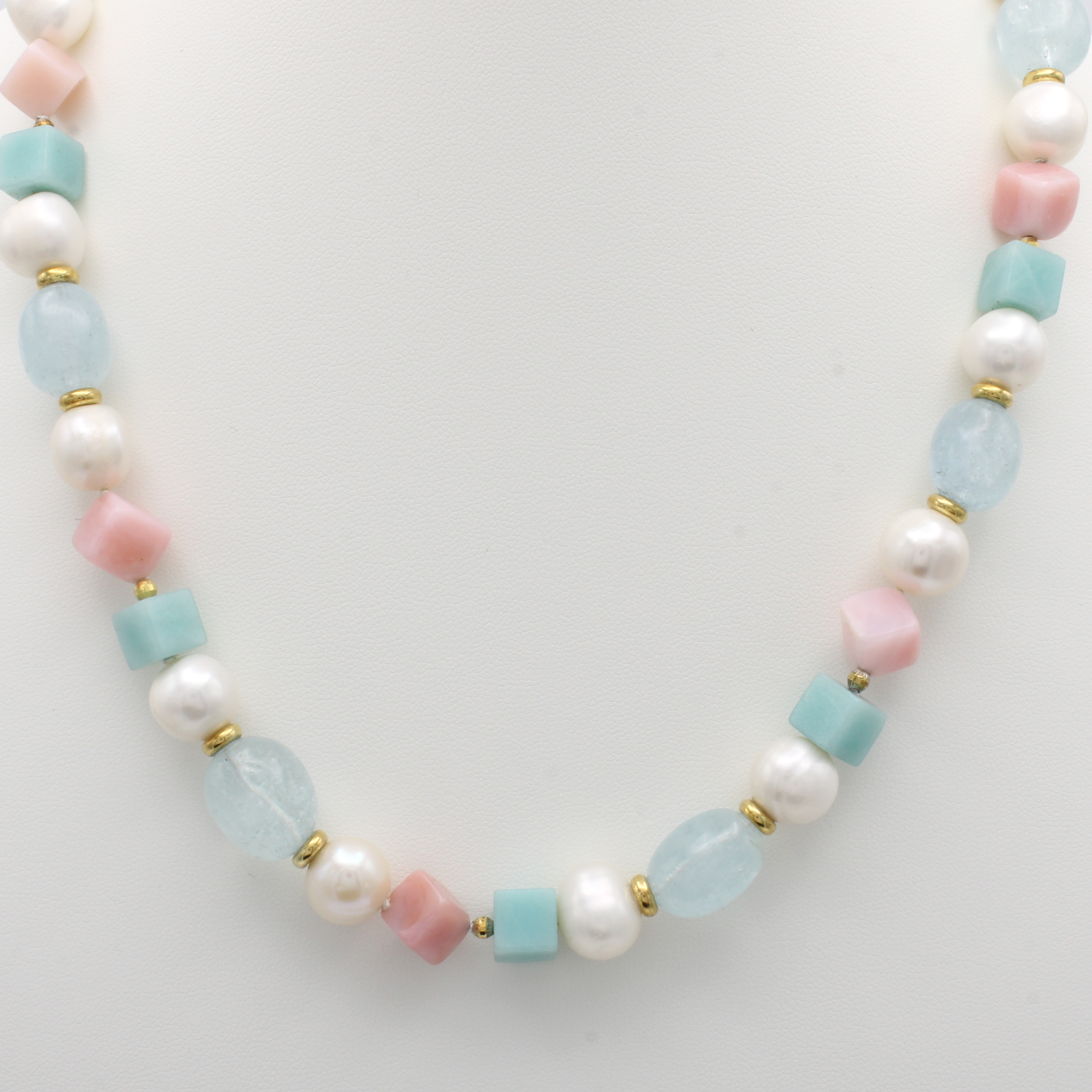 Aquamarine, Amazonite, und Andenopale in verschiedenen Formen, L. ca. 50 cm Schätzpreis: