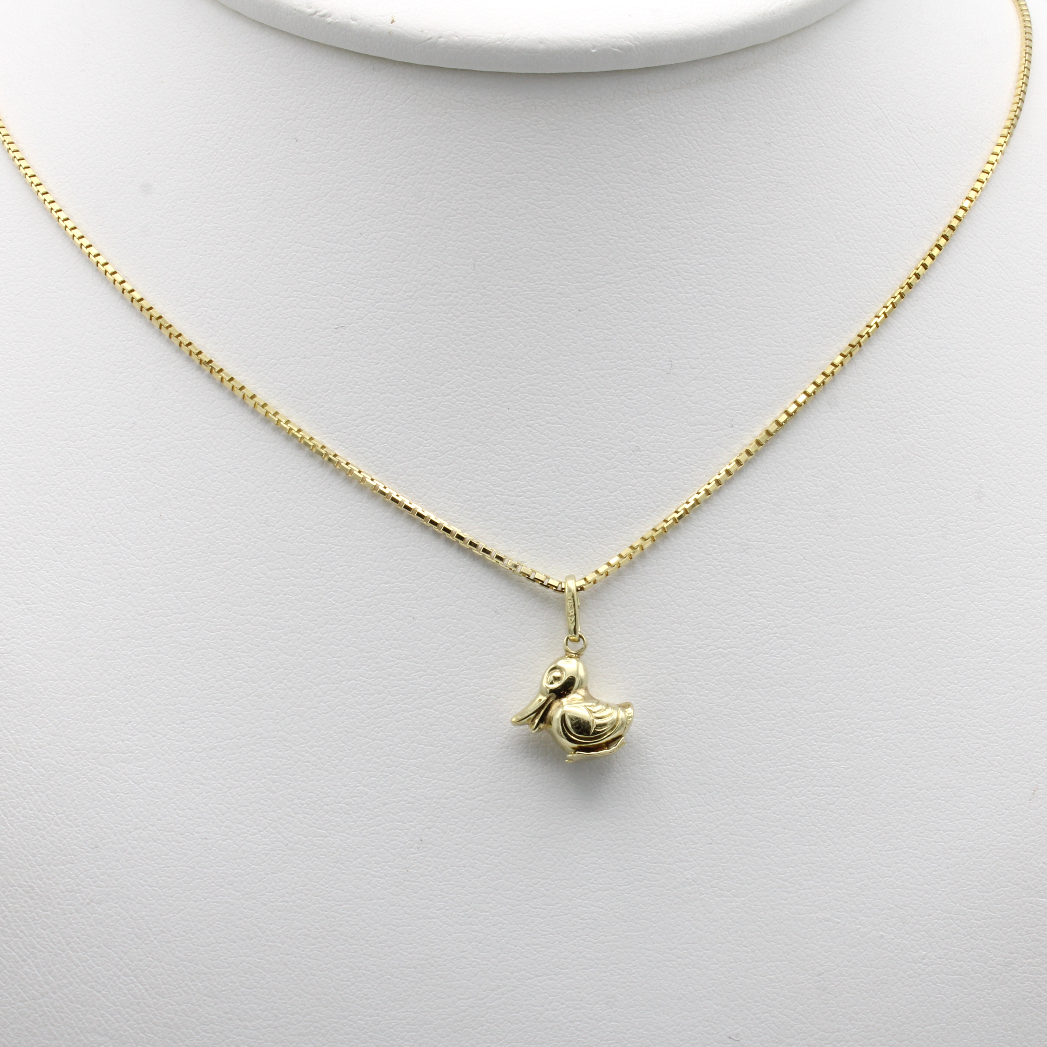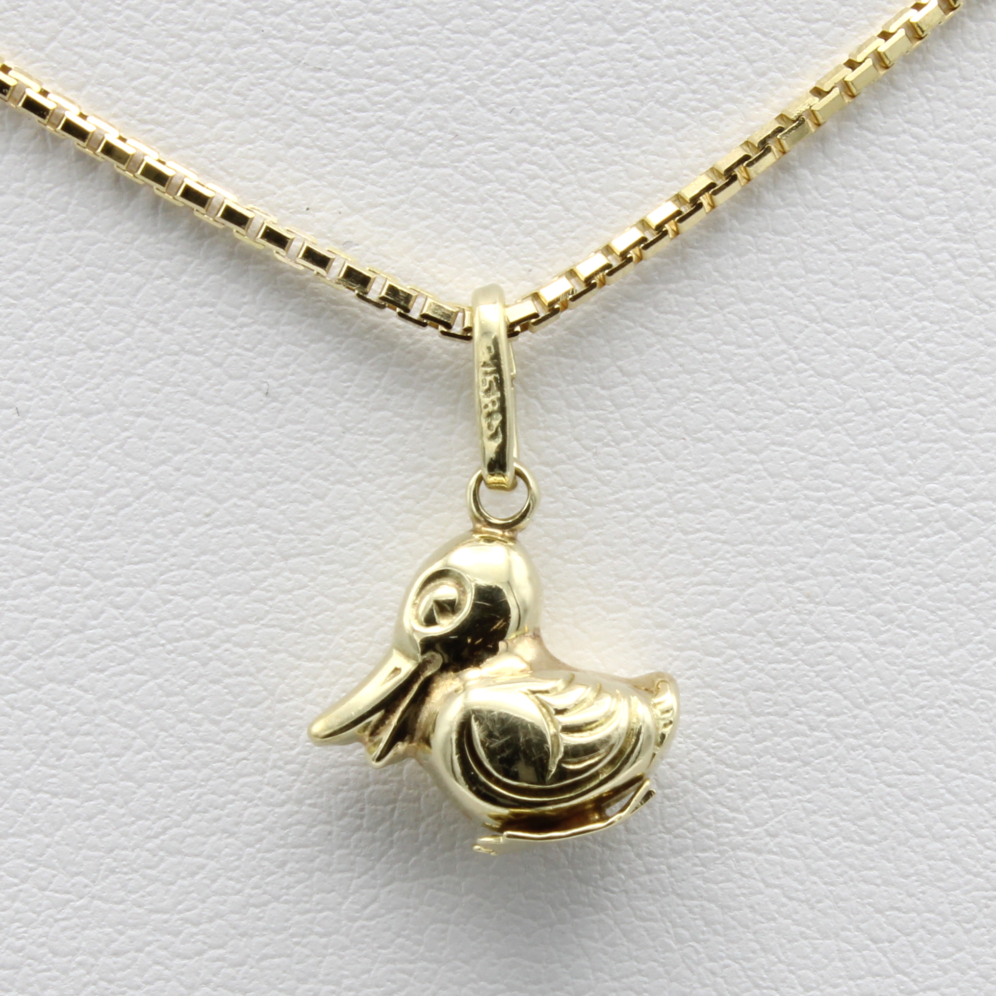 Anhänger "Ente" an Kette, GG 585/000, Feder-ringschl., L. ca. 40 cm