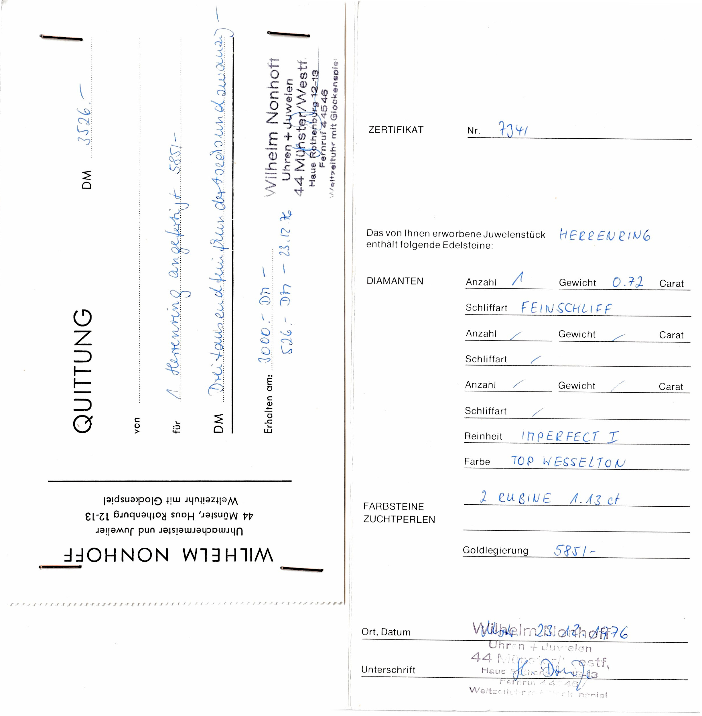 g, Zertifikat anbei Schätzpreis: 4500, - EUR