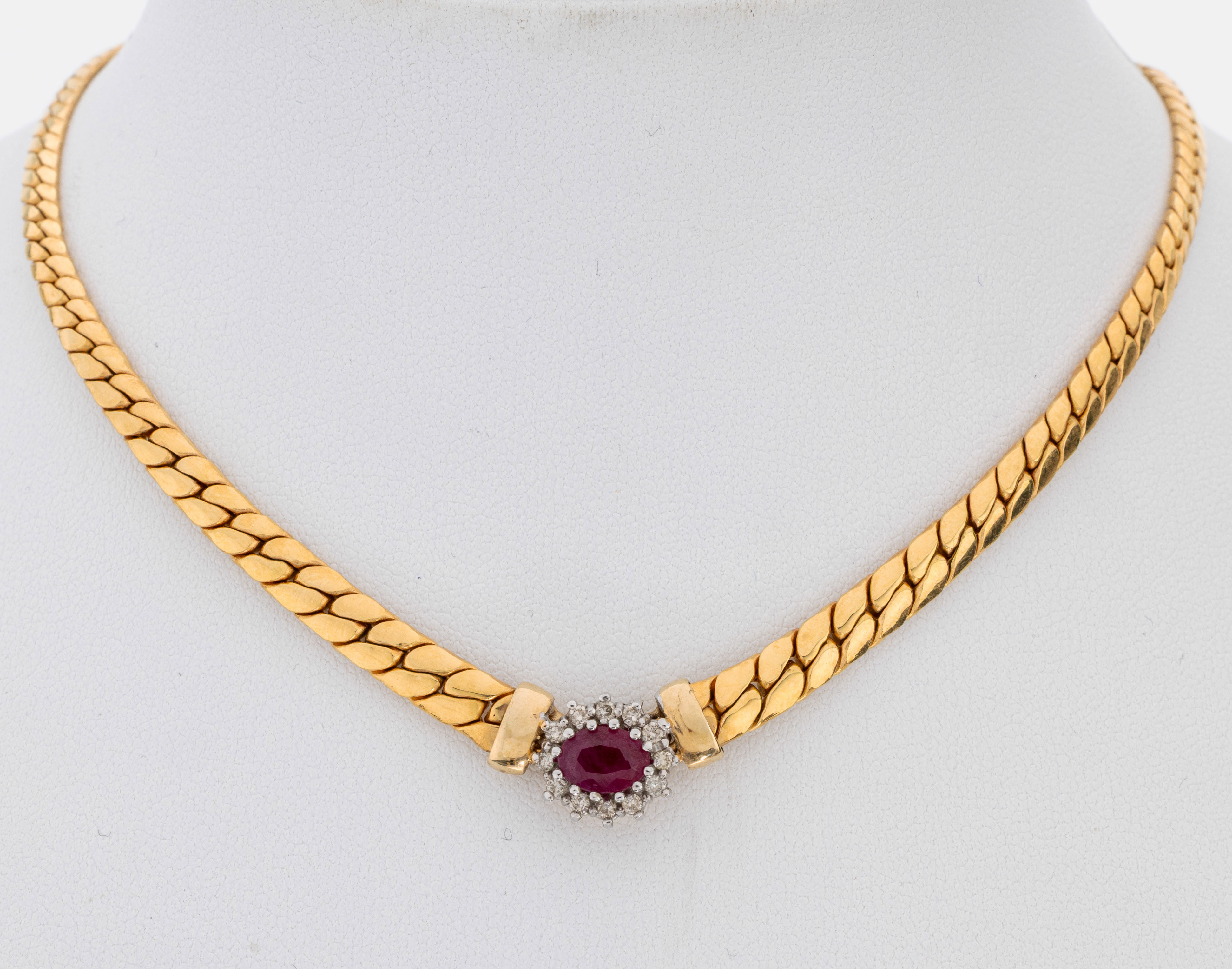 14 kt Collier Rubin-Brillant-Collier, GG 585/000, ovalfacett. Rubin ca. 1.10 ct,