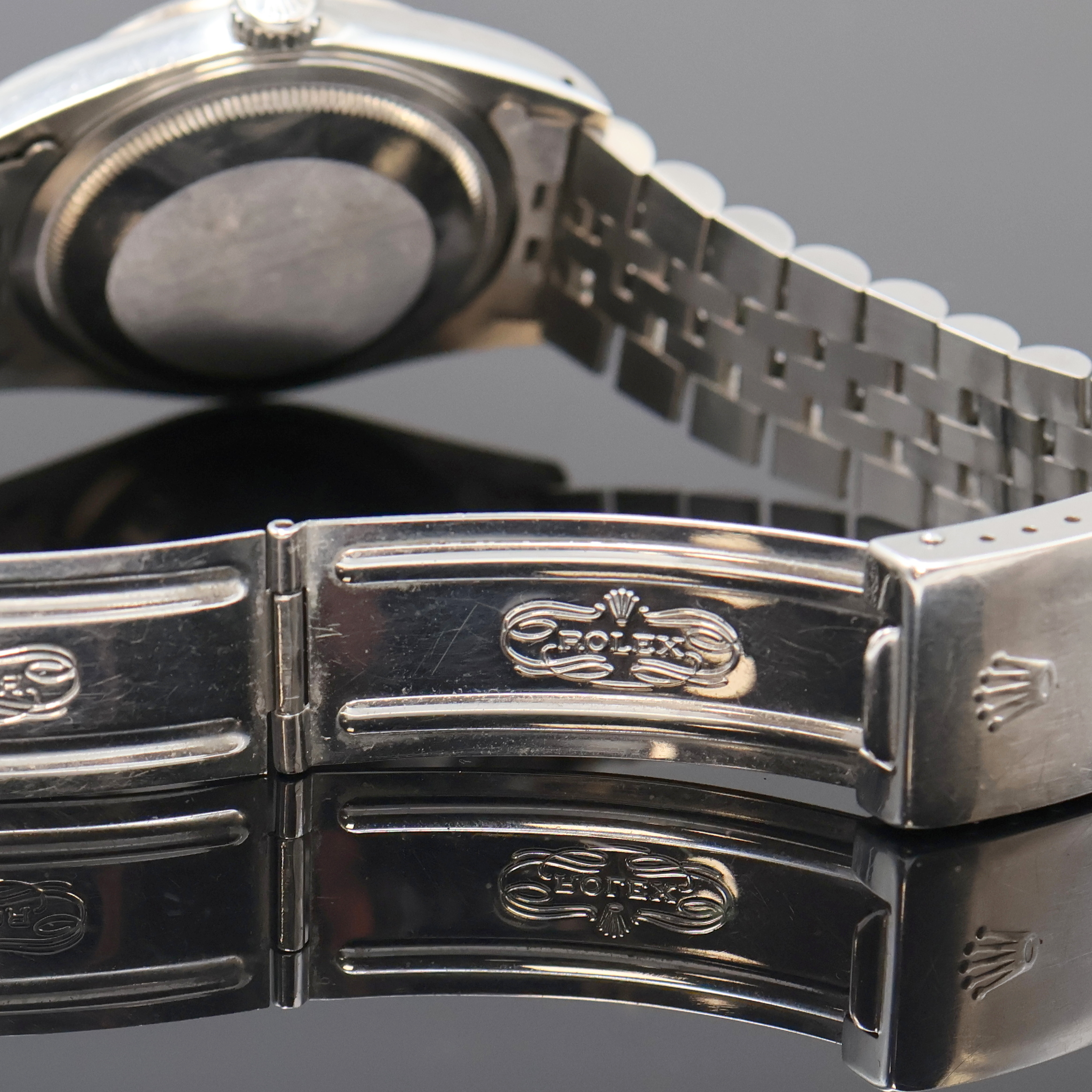 case including jubilee-bracelet with deployant clasp, screwed down case back and